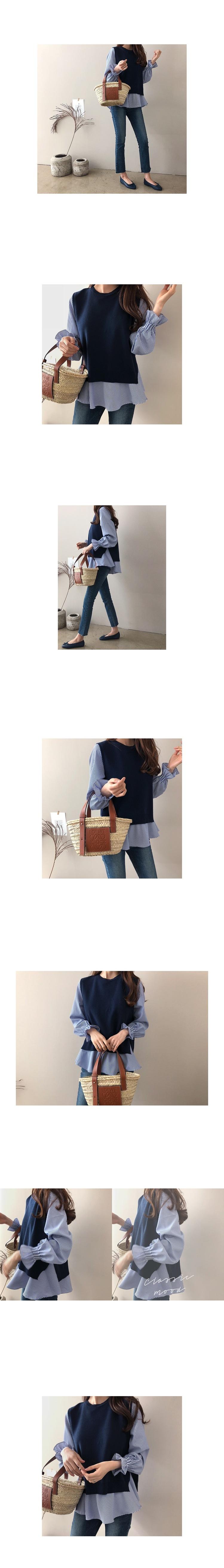 Black vest + white shirt, Blue waistcoat + striped shirt, Grey vest + white shirt