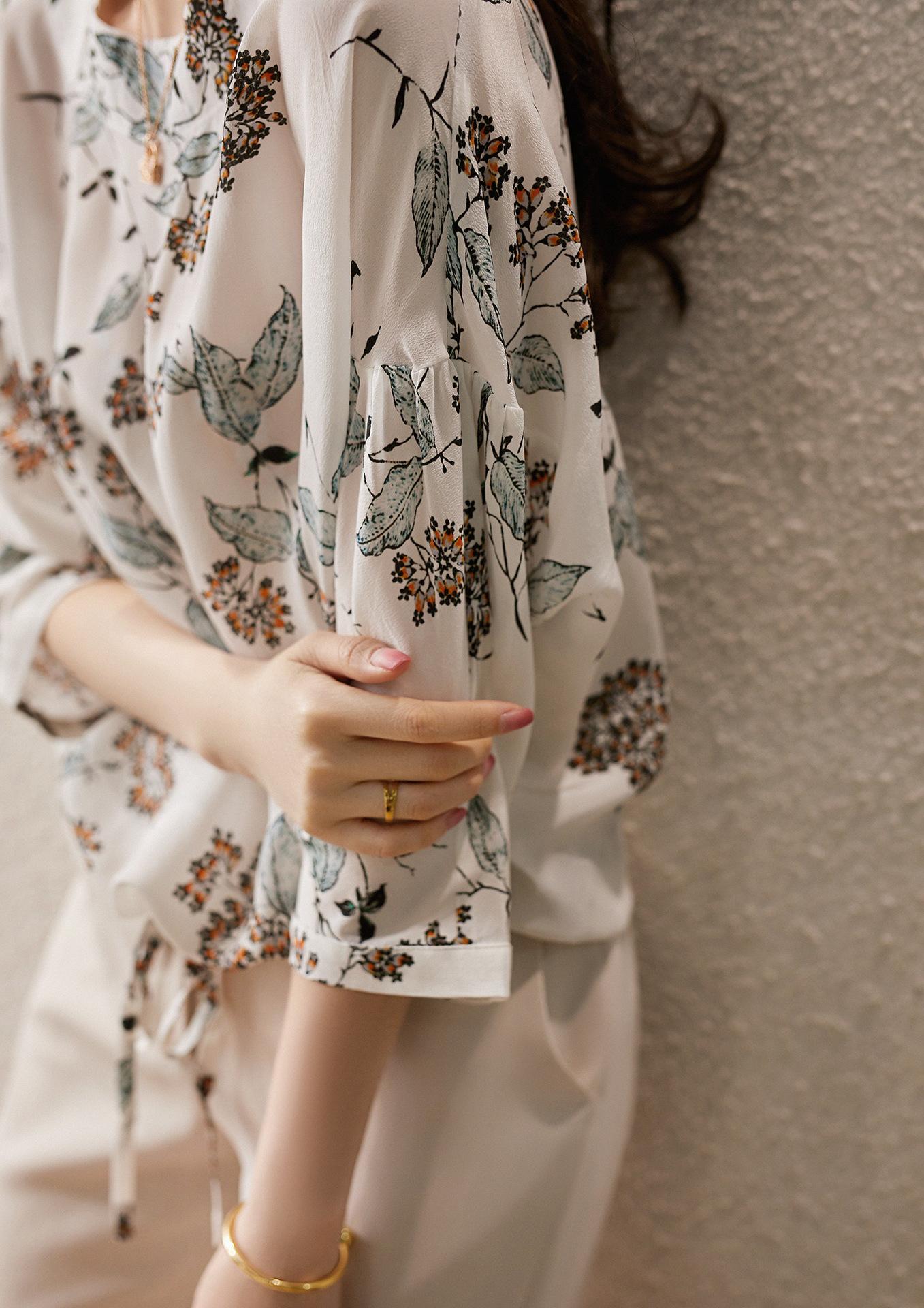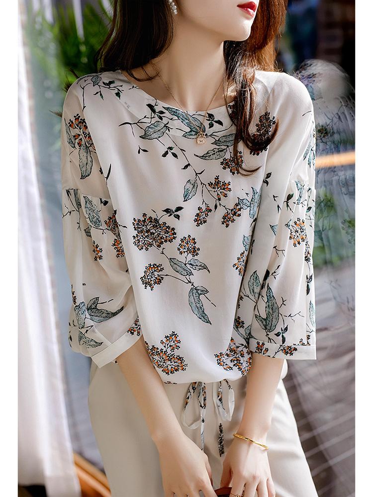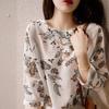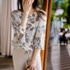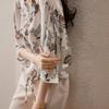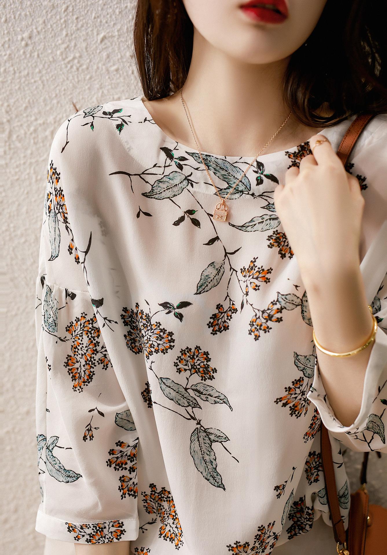 Producto Nuevo Primavera/Verano 2025: Blusa de Gasa de Seda Imitación con Estampado Artístico, Mangas Murciélago Adelgazantes, Top de Seda de Morera con Cuello Redondo