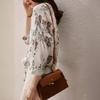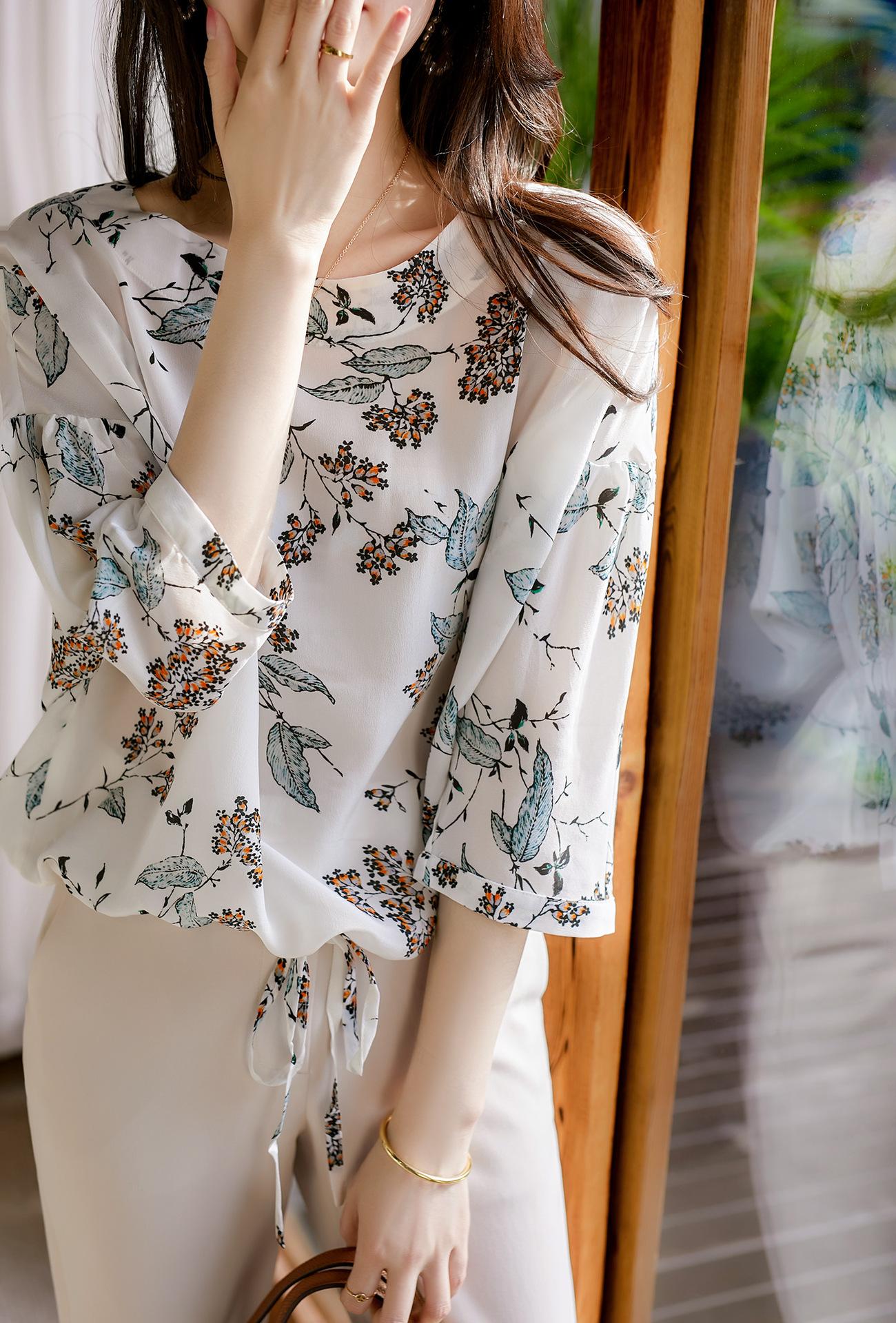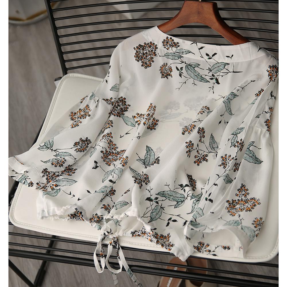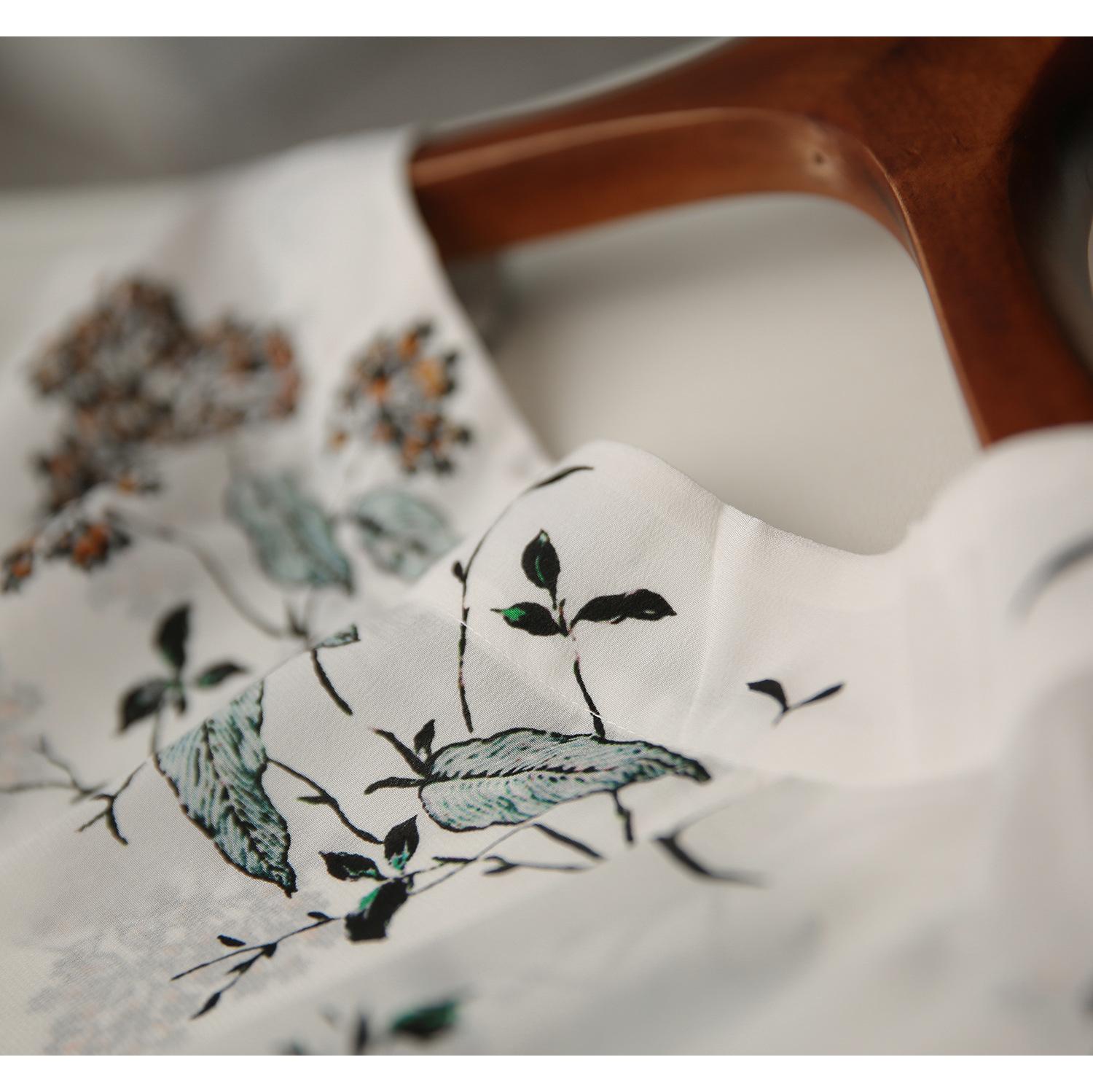 Producto Nuevo Primavera/Verano 2025: Blusa de Gasa de Seda Imitación con Estampado Artístico, Mangas Murciélago Adelgazantes, Top de Seda de Morera con Cuello Redondo