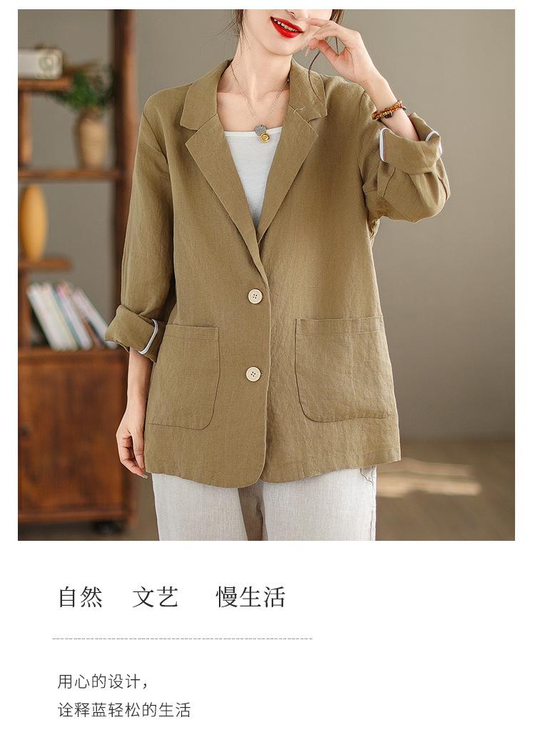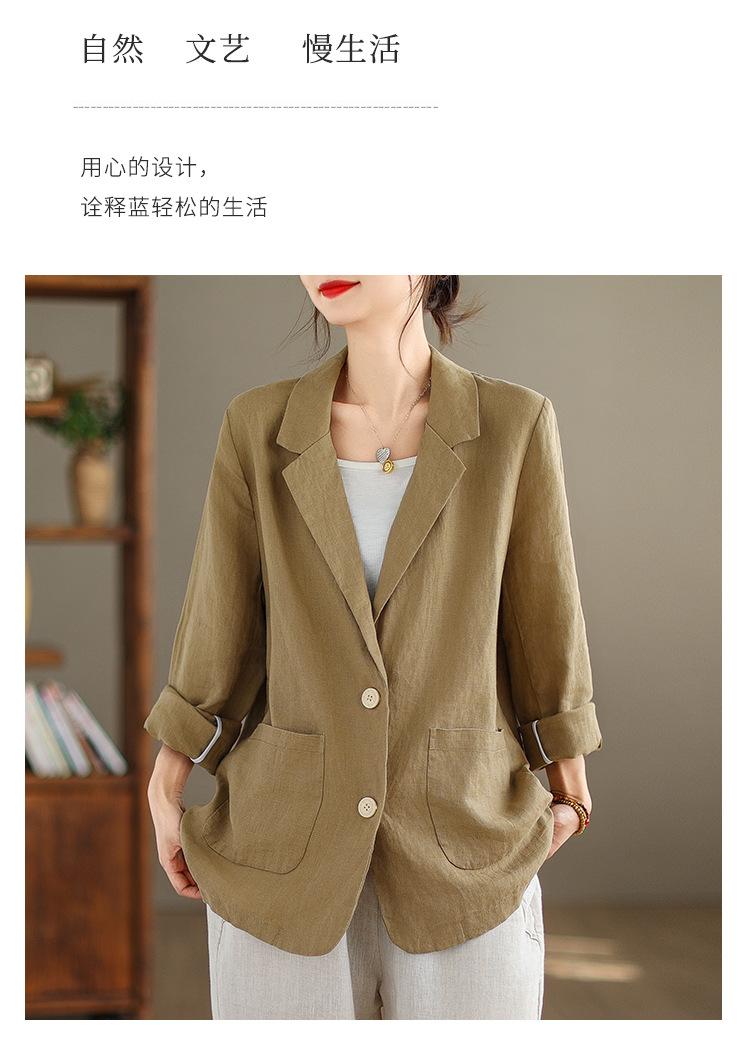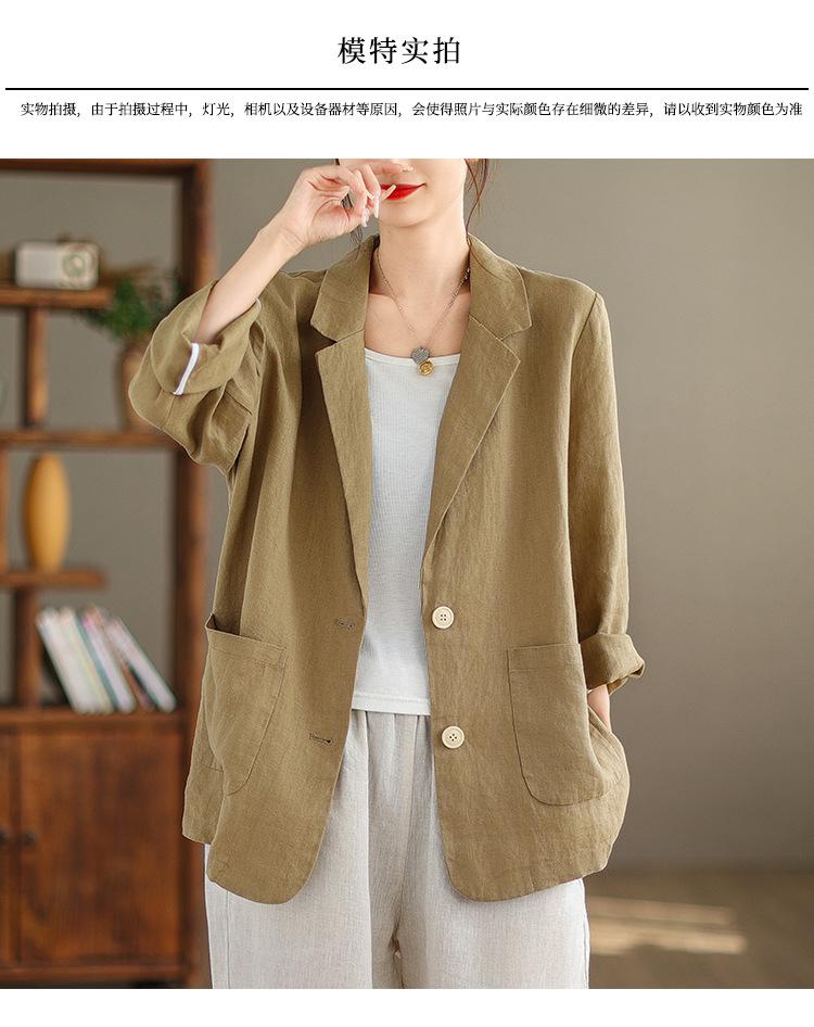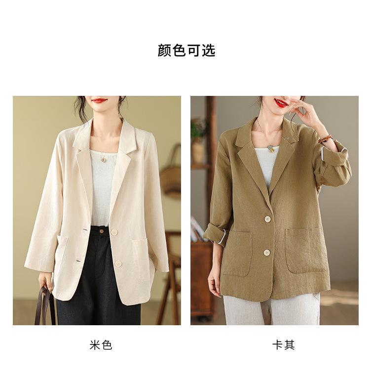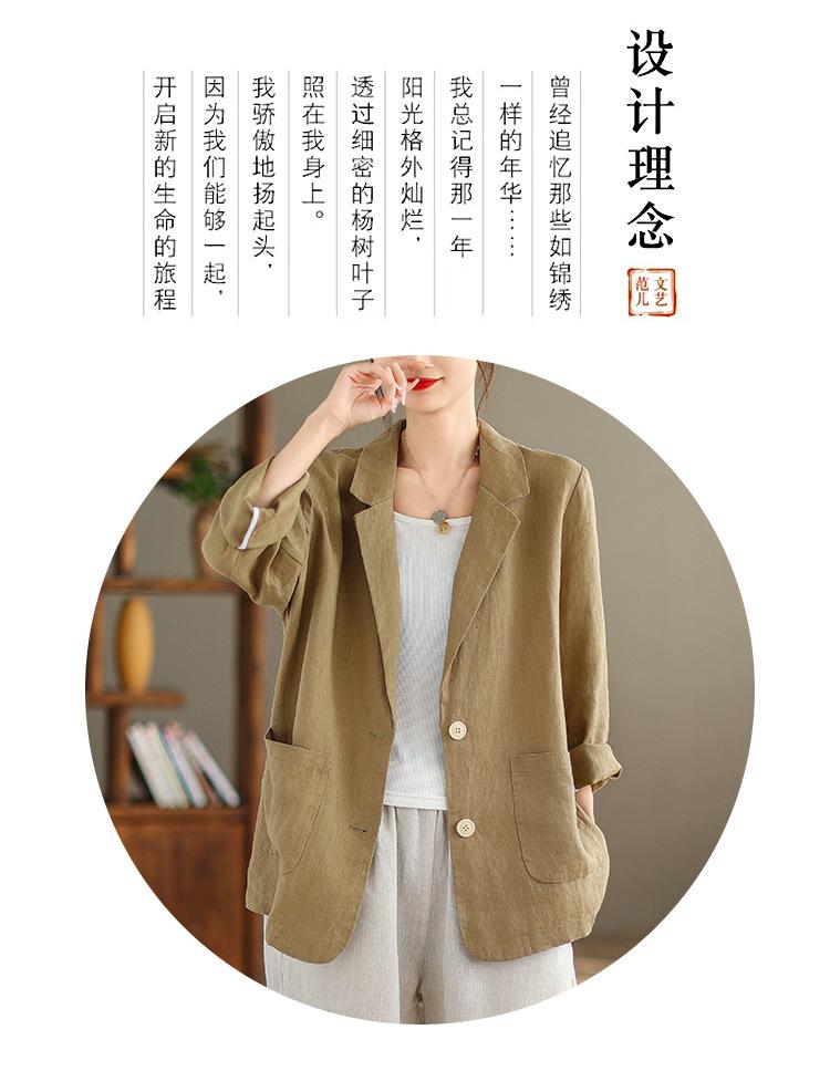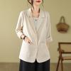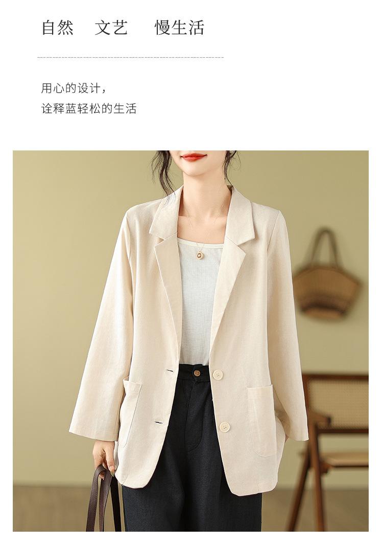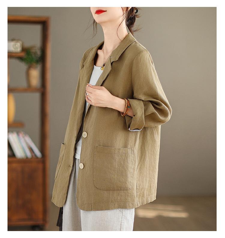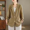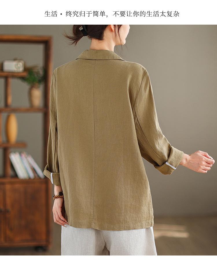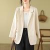 Blazer Casual de Algodón y Lino para Mujer, Nuevo Estilo Otoño 2025, Artístico Retro Color Sólido Suelto Versátil Top Blazer