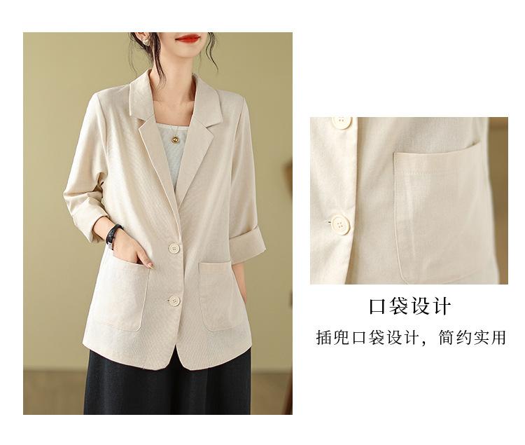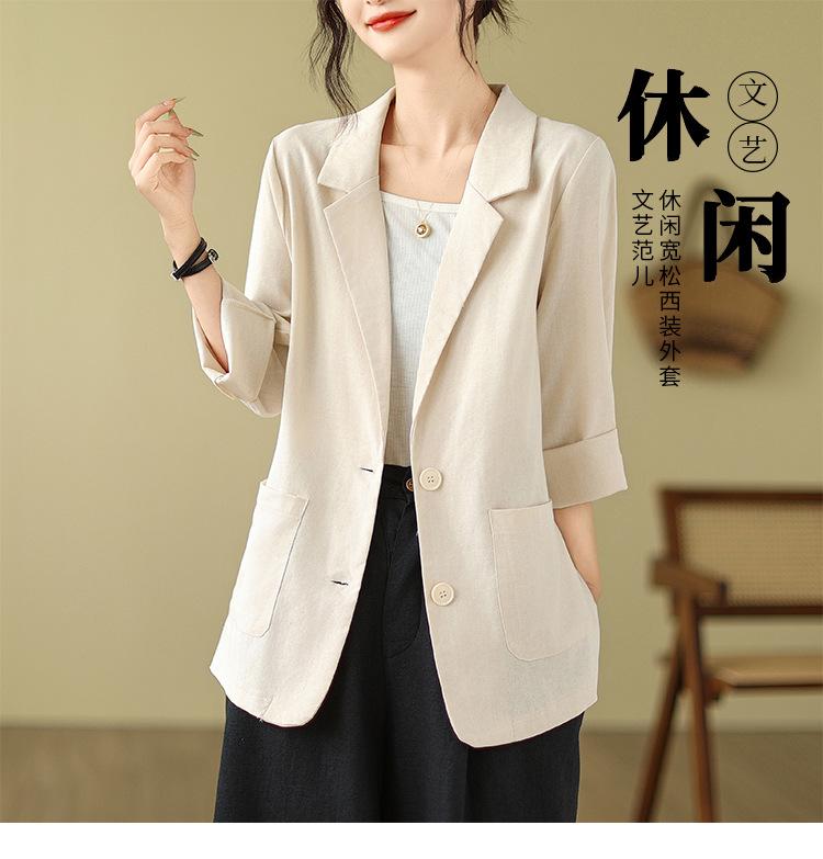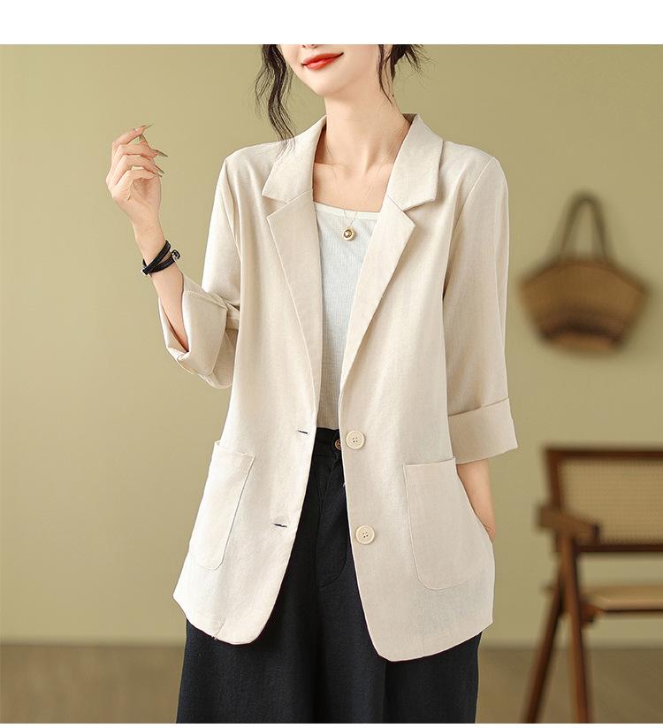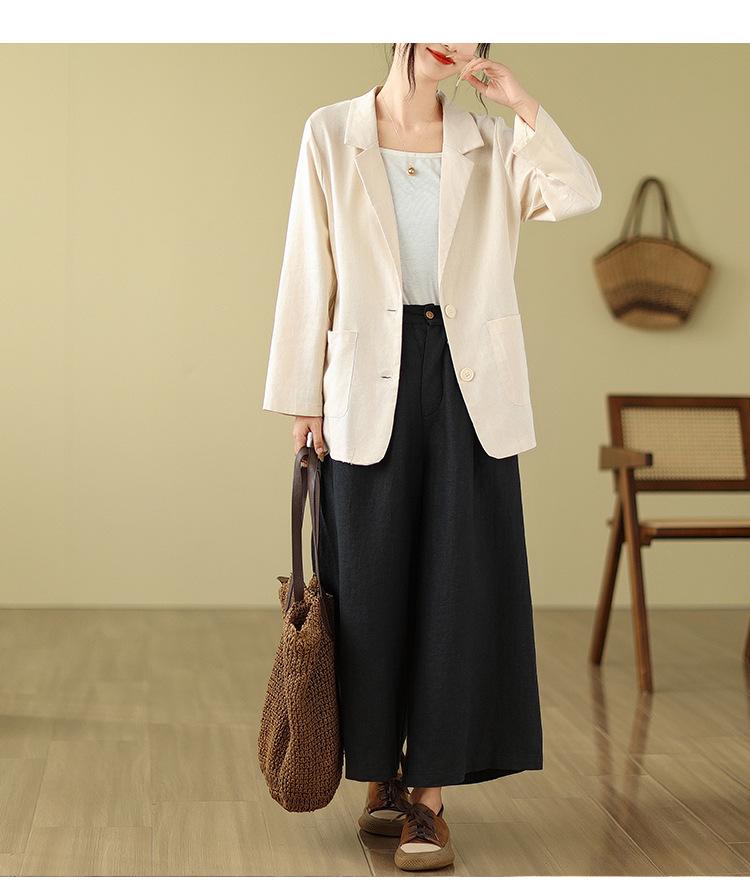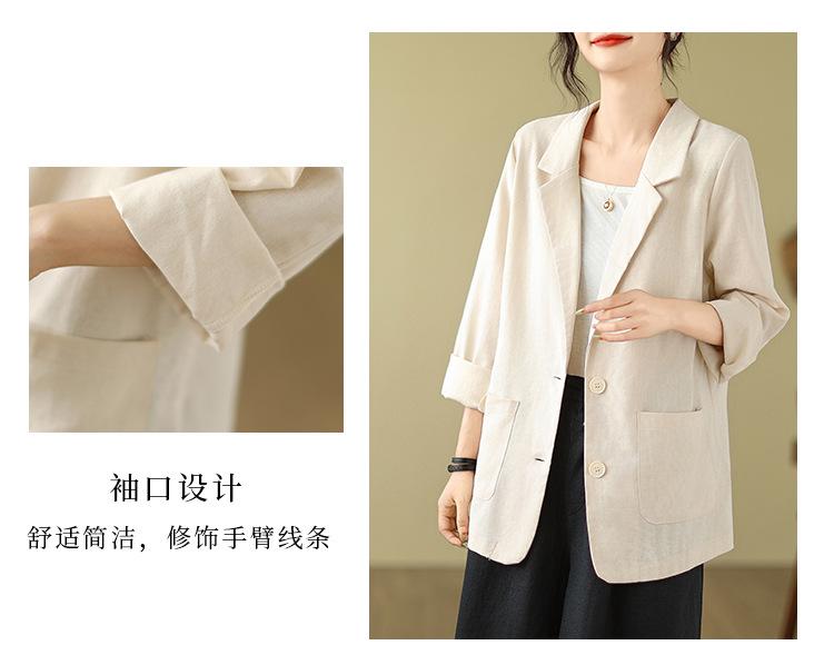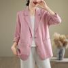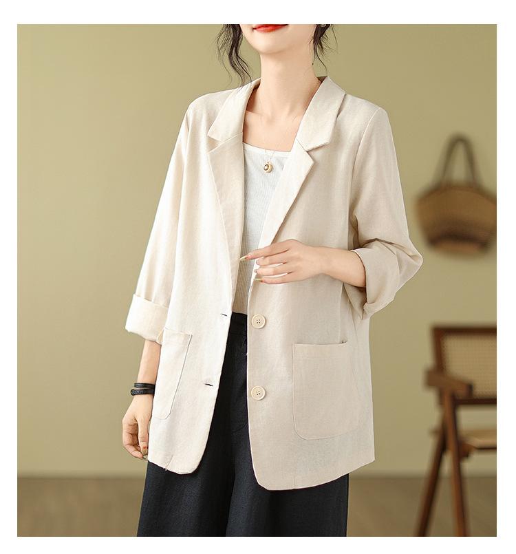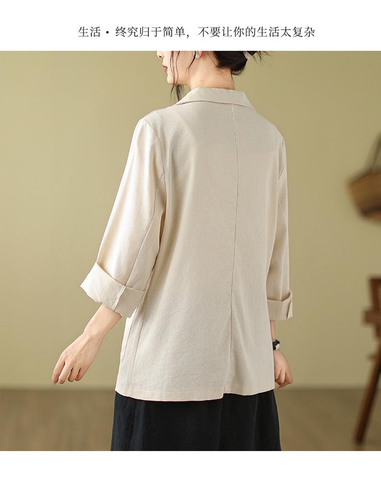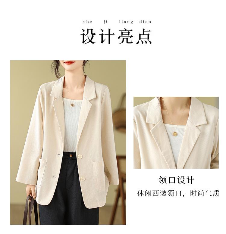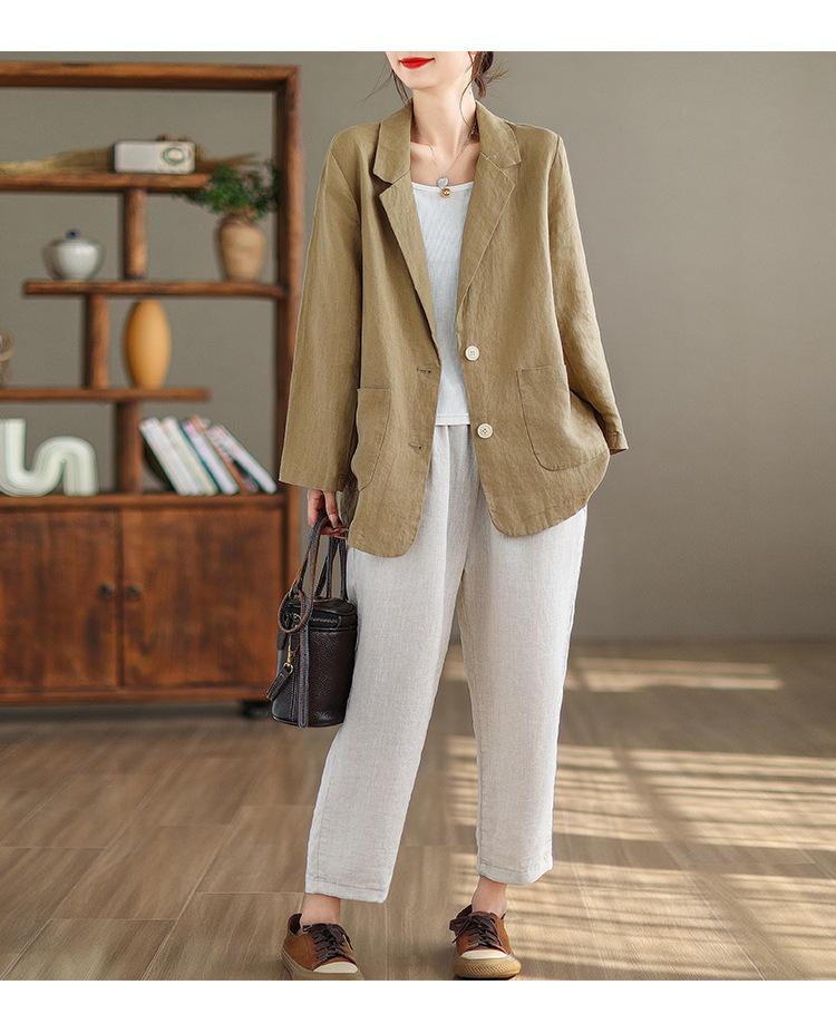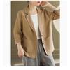 Blazer Casual de Algodón y Lino para Mujer, Nuevo Estilo Otoño 2025, Artístico Retro Color Sólido Suelto Versátil Top Blazer