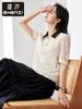 Zhen Xi - Camisa de manga corta con solapa y encaje para mujer, estilo informal, estilo jacquard, recta, a la moda, SP079