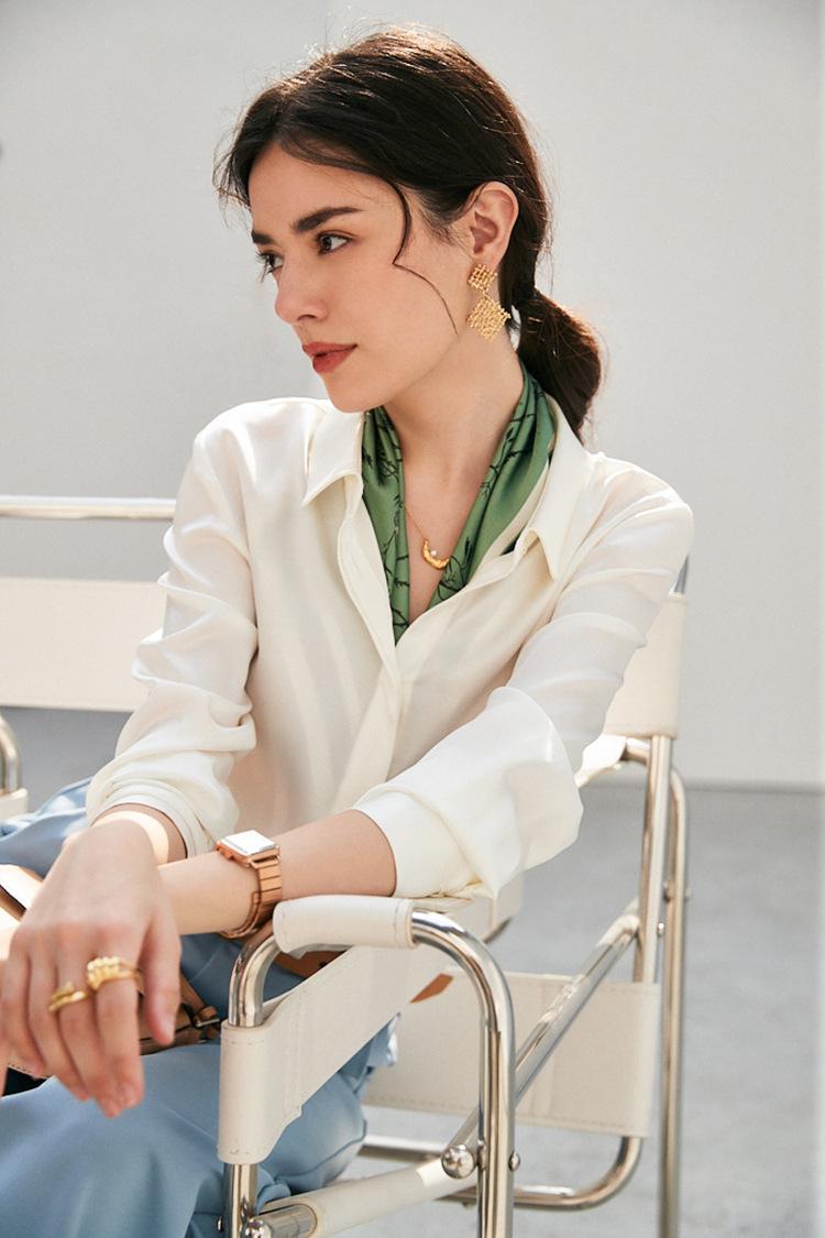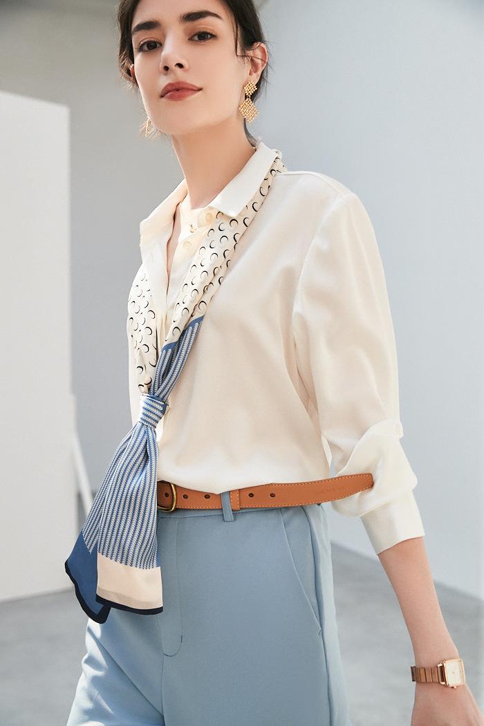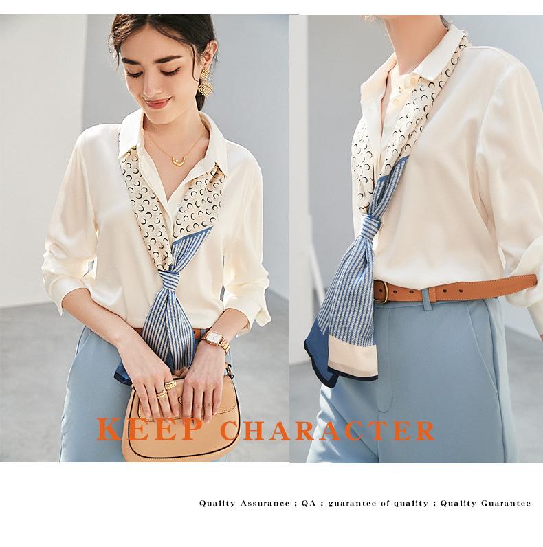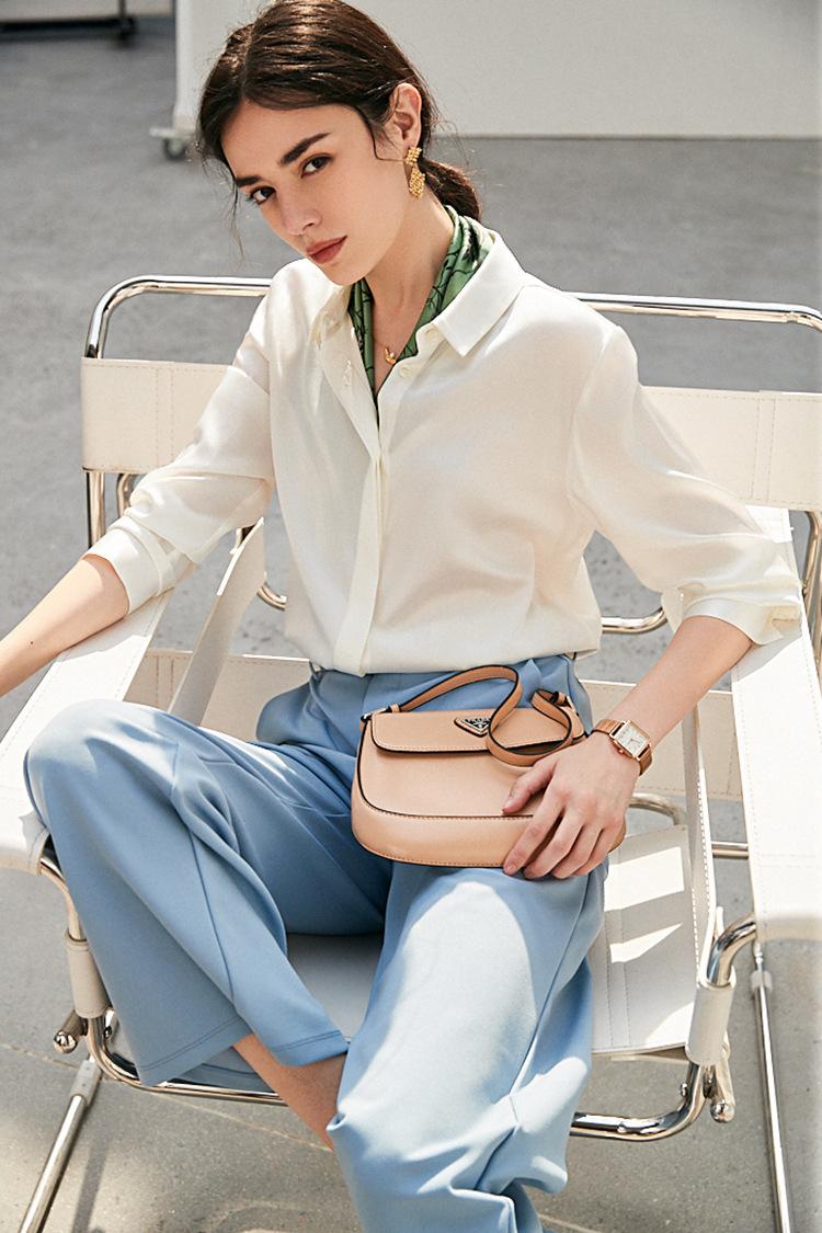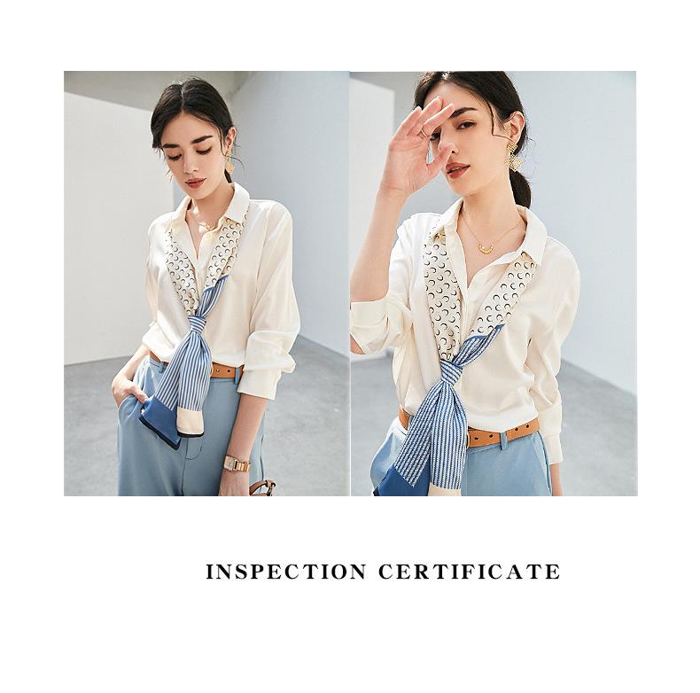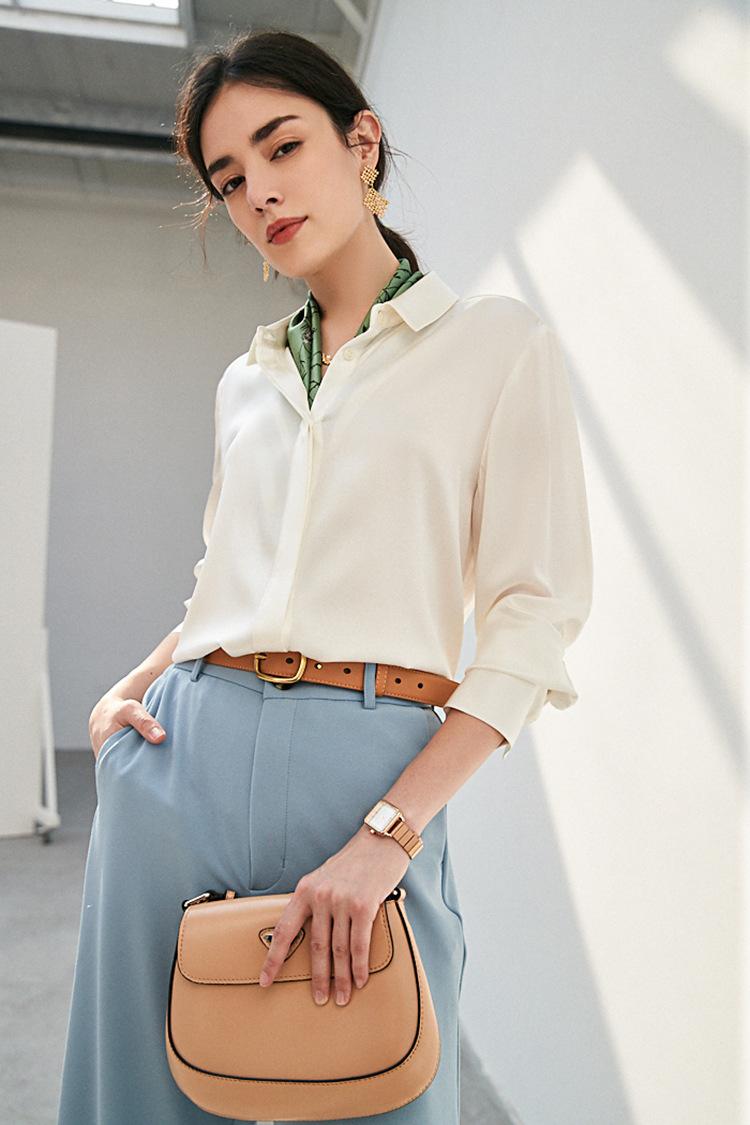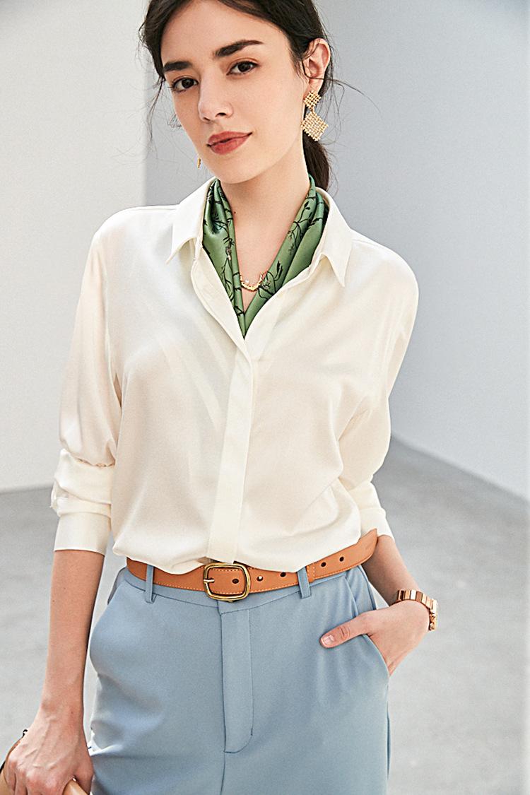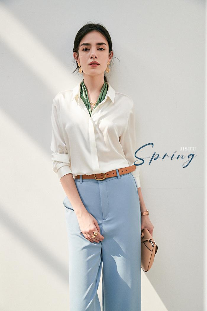 Camisa Blanca Top de Seda para Mujer Moda Exterior 2025 Nuevo Primavera y Verano Delgada Seda de Morera Solapa Camisa de Manga Larga