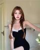 Vestido Francés Retro de Encaje con Tirantes Primavera y Verano Chicas Hot Cintura Ceñida Adelgazante Bolso Didi Brazo Falda Corta Ropa de Mujer