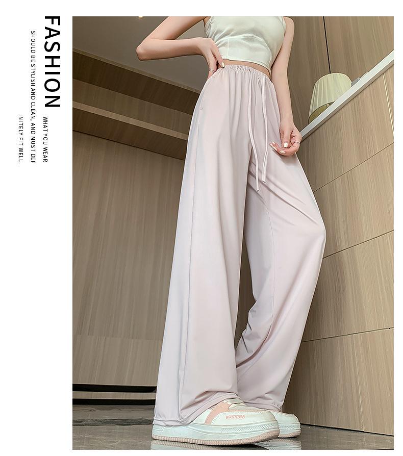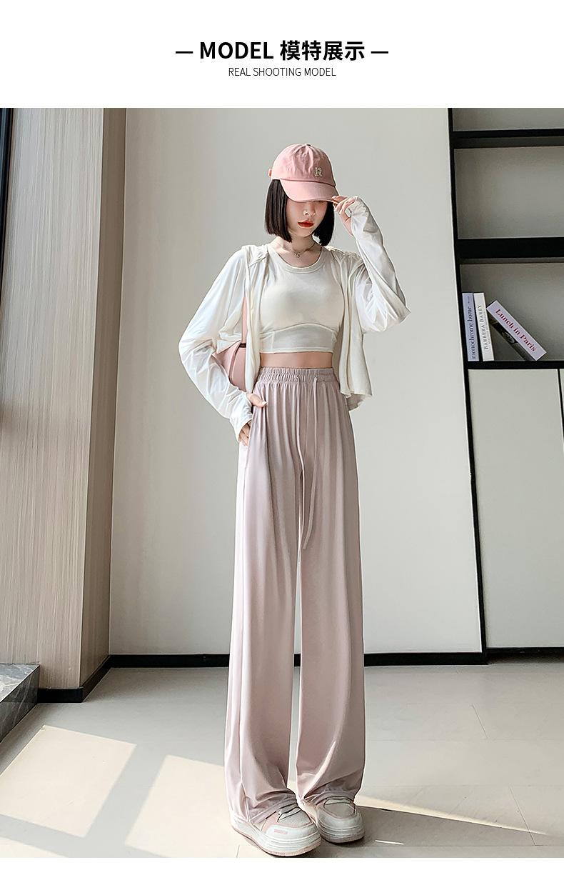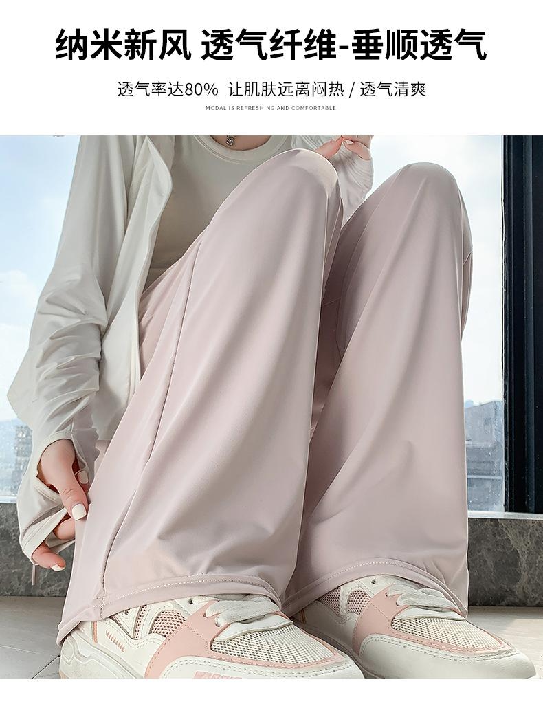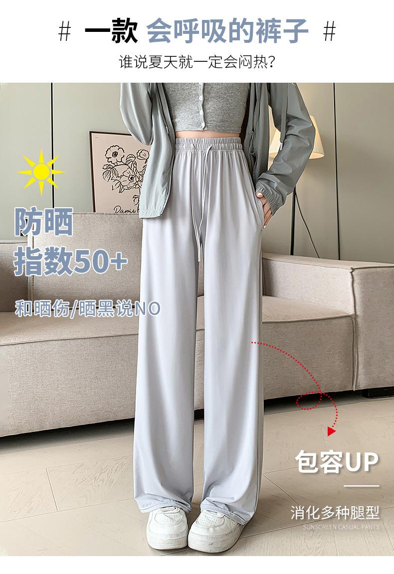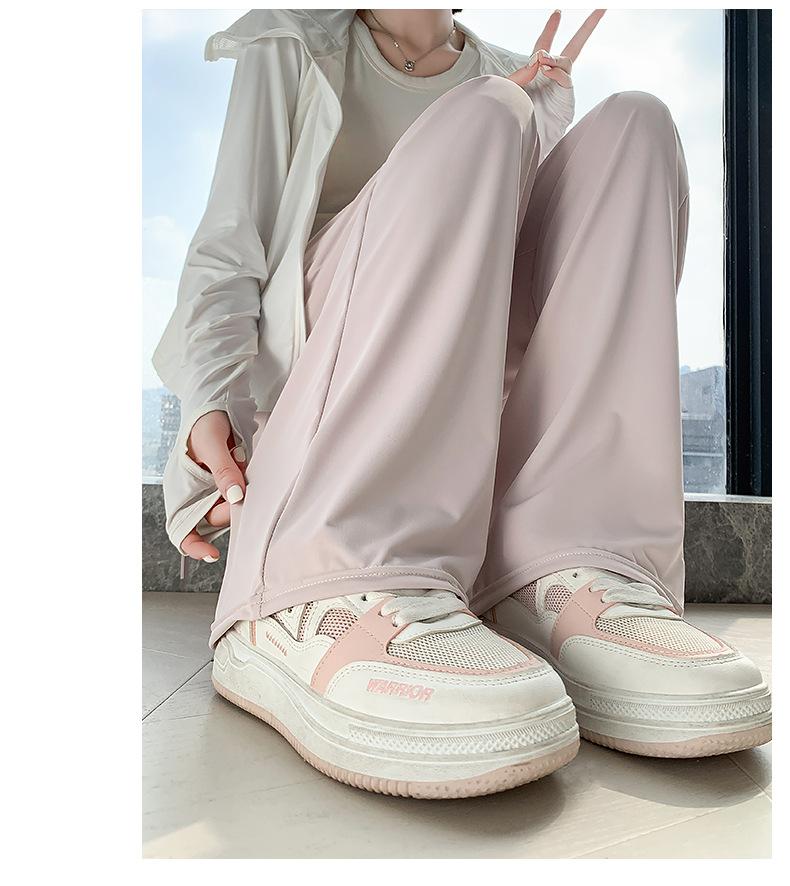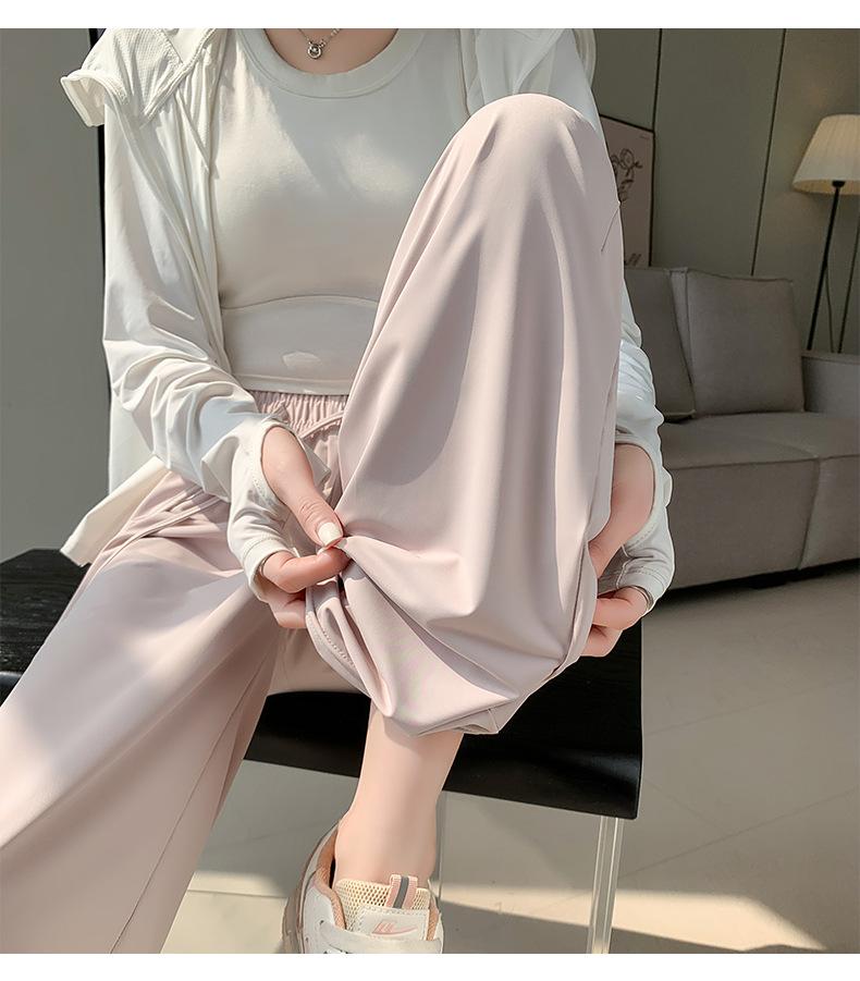 Pantalones de protección solar rosas para mujer, de verano, finos, de cintura alta, drapeados, sueltos, rectos, casuales, de pierna ancha, pantalones deportivos frescos de seda de hielo