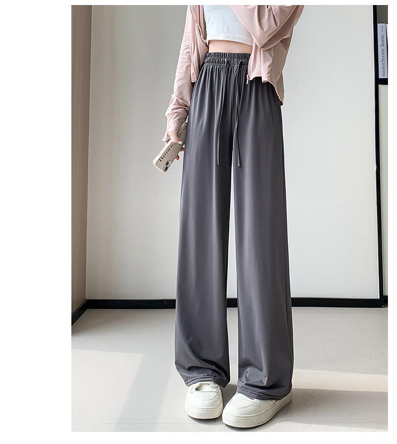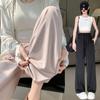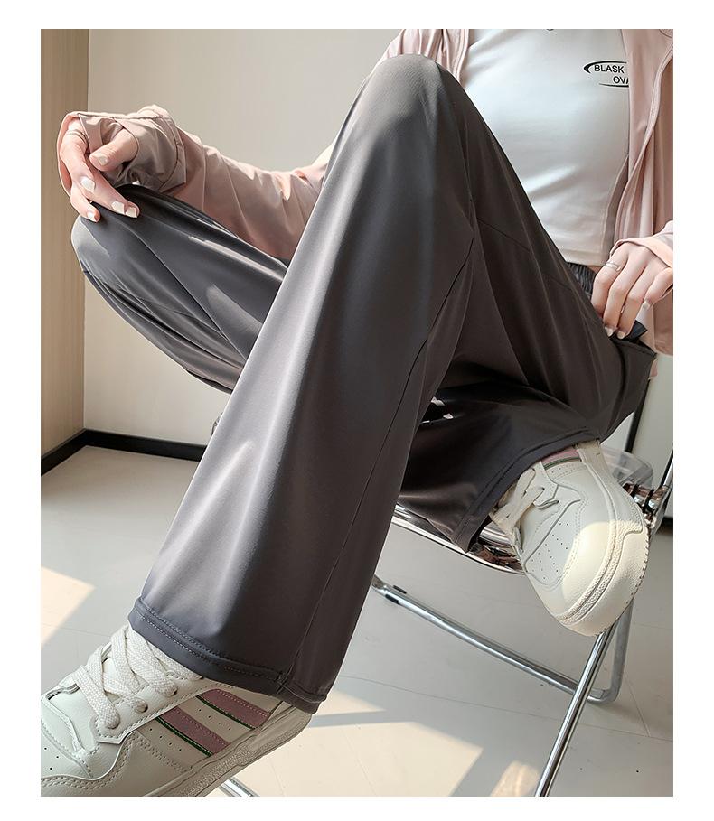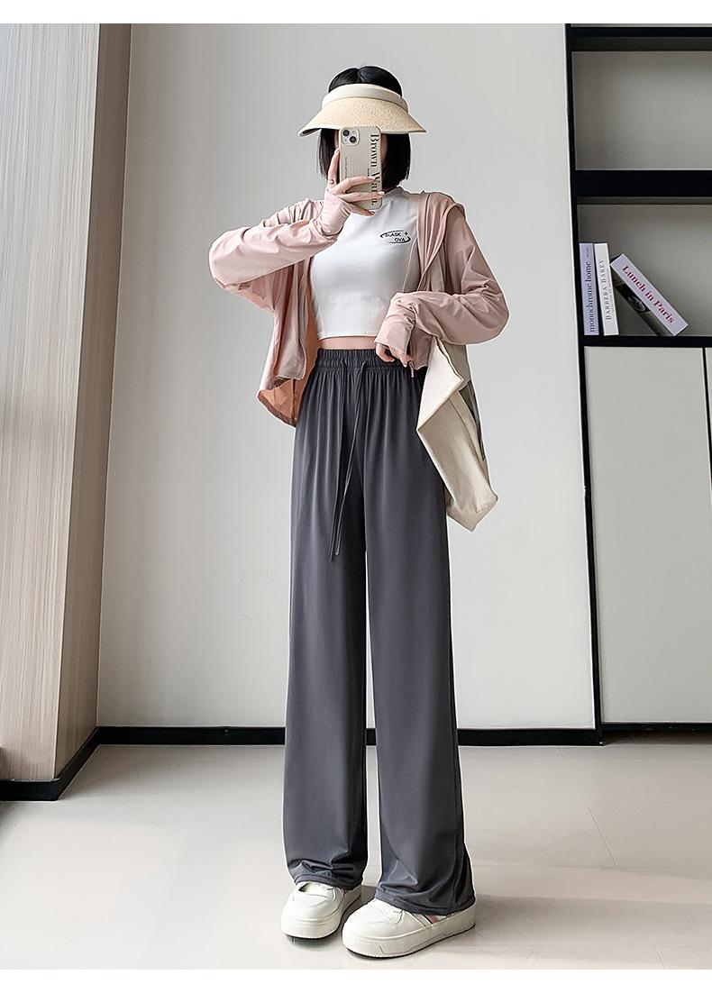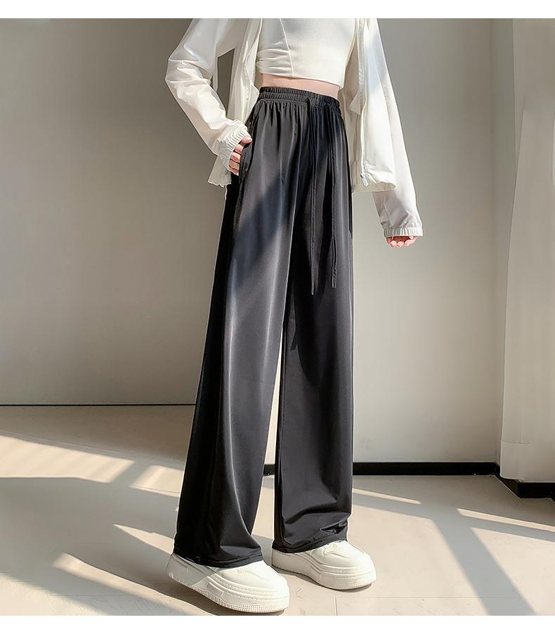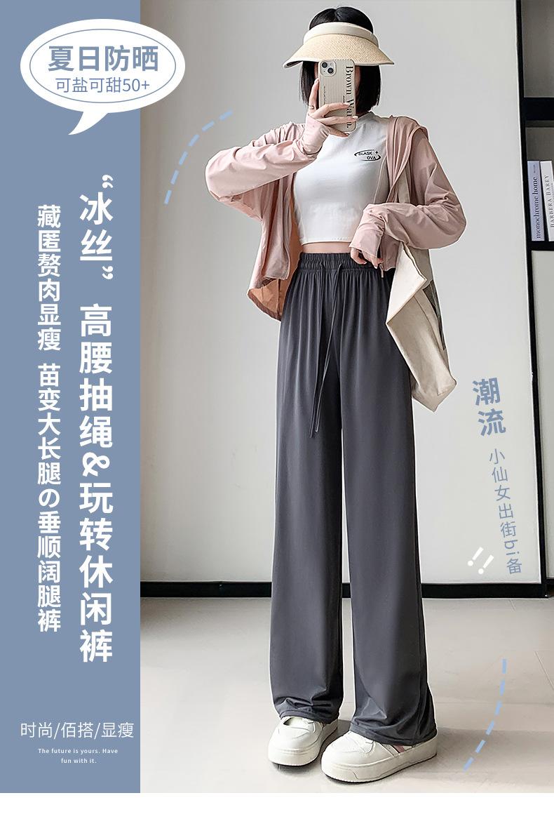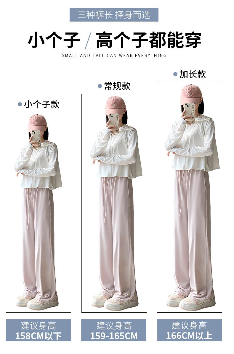 Pantalones de protección solar rosas para mujer, de verano, finos, de cintura alta, drapeados, sueltos, rectos, casuales, de pierna ancha, pantalones deportivos frescos de seda de hielo