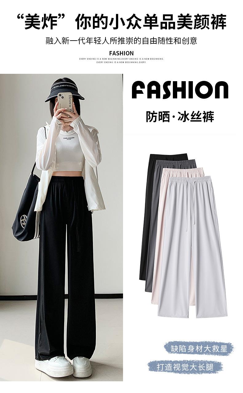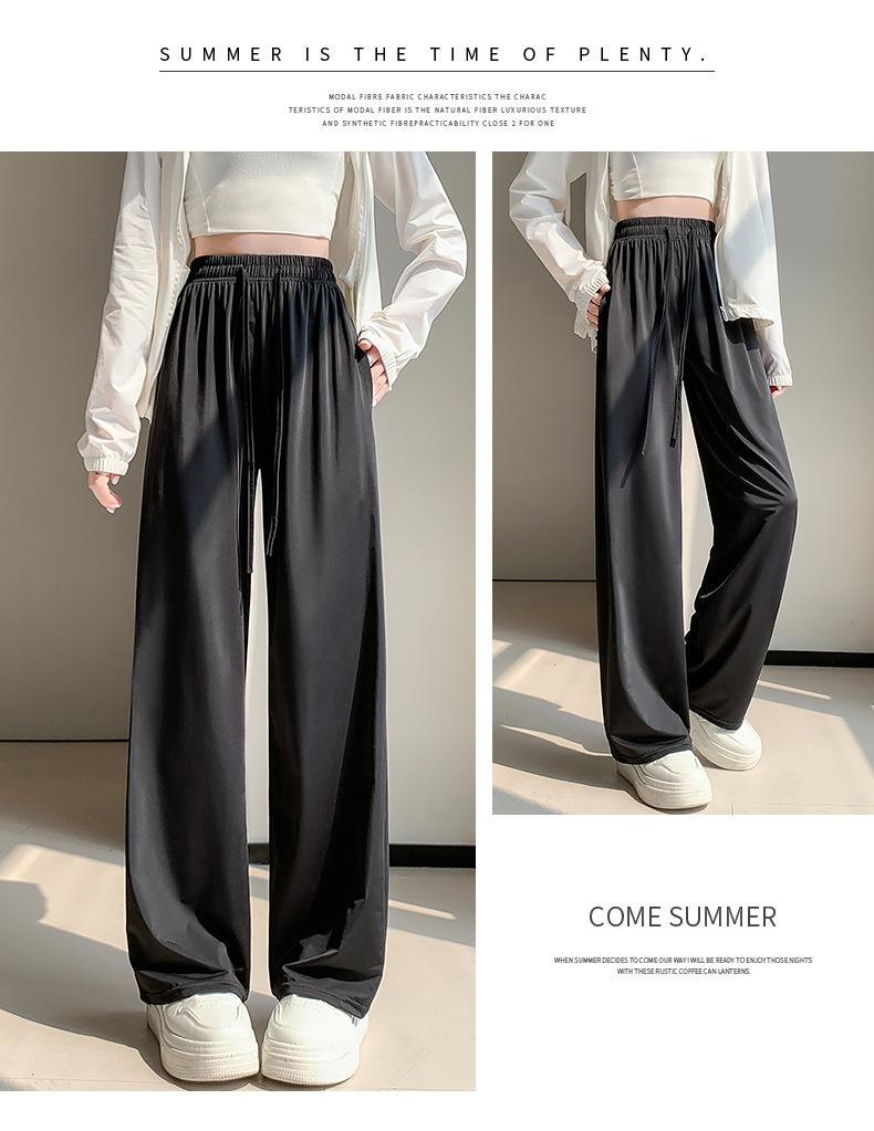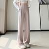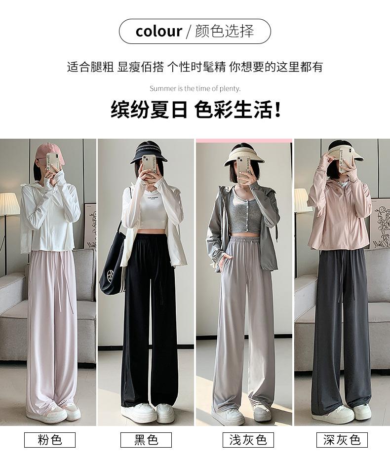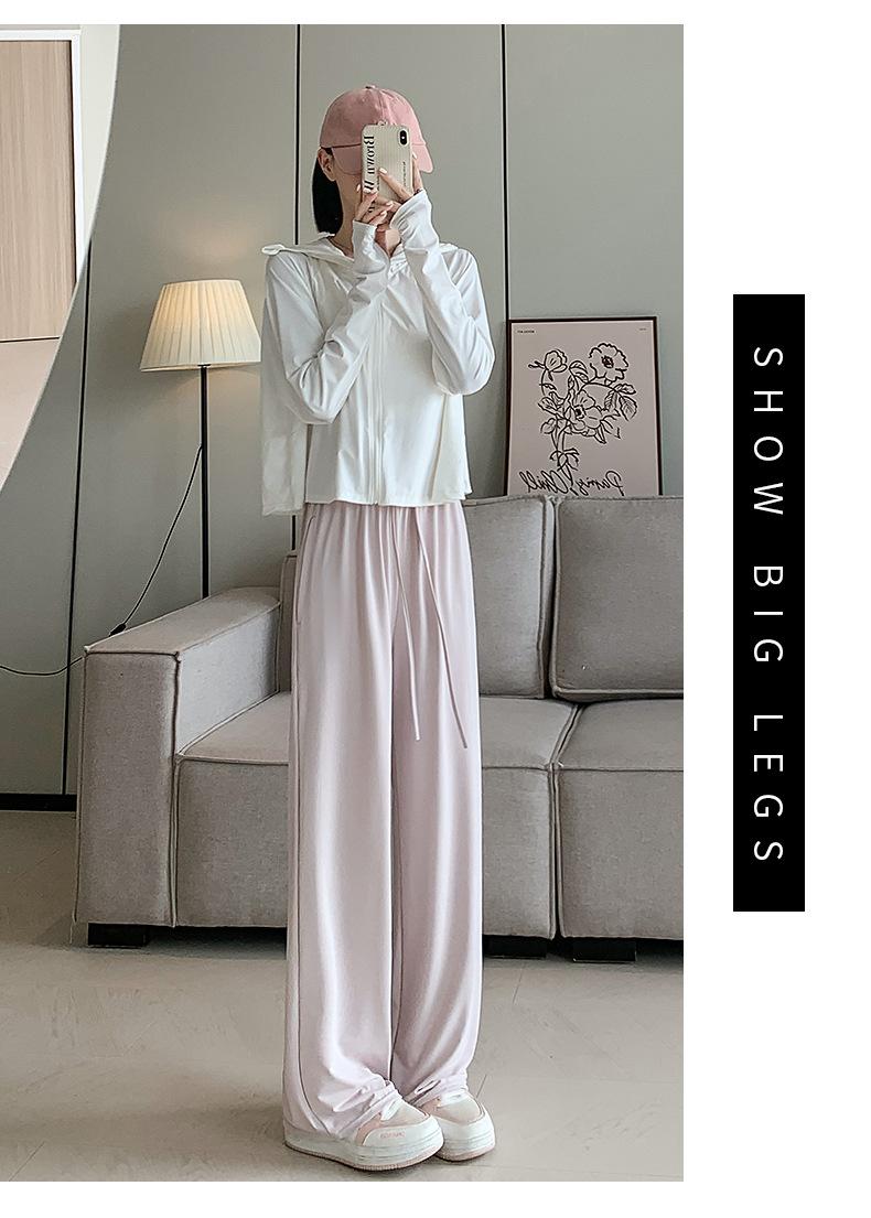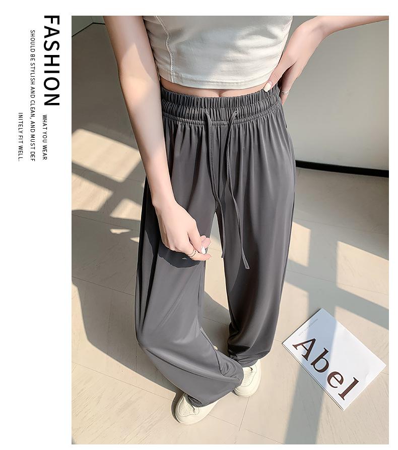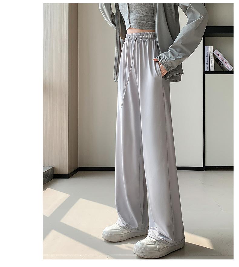 Pantalones de protección solar rosas para mujer, de verano, finos, de cintura alta, drapeados, sueltos, rectos, casuales, de pierna ancha, pantalones deportivos frescos de seda de hielo