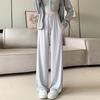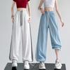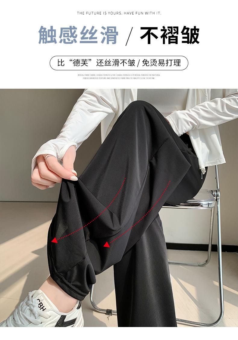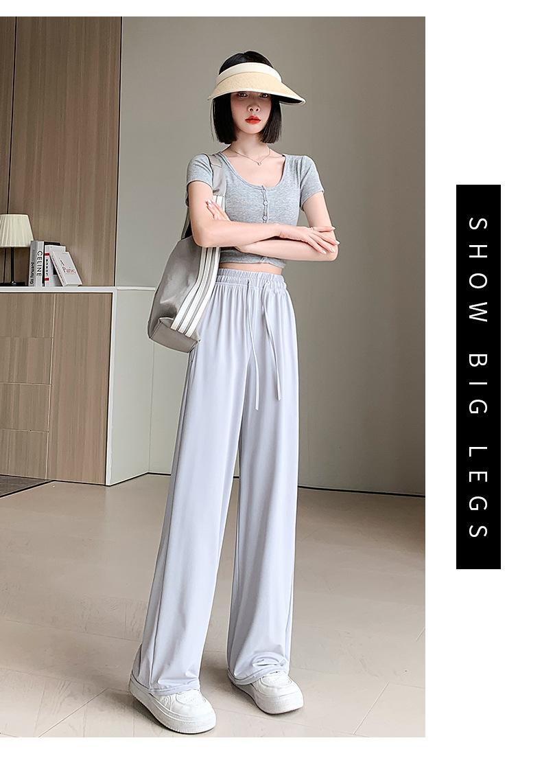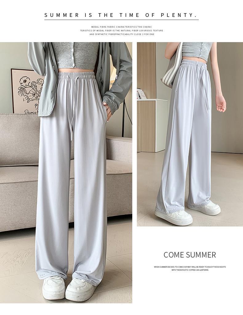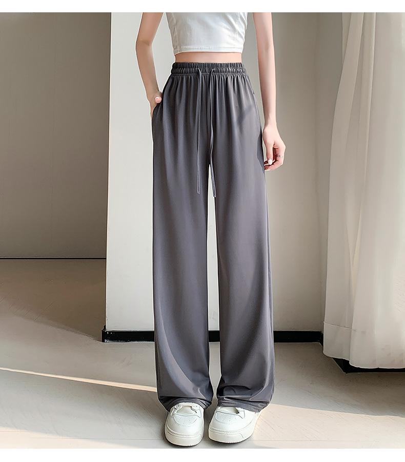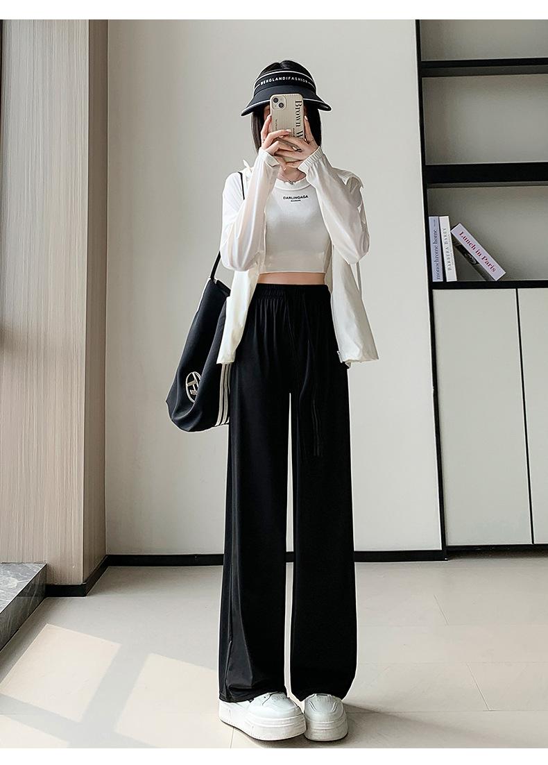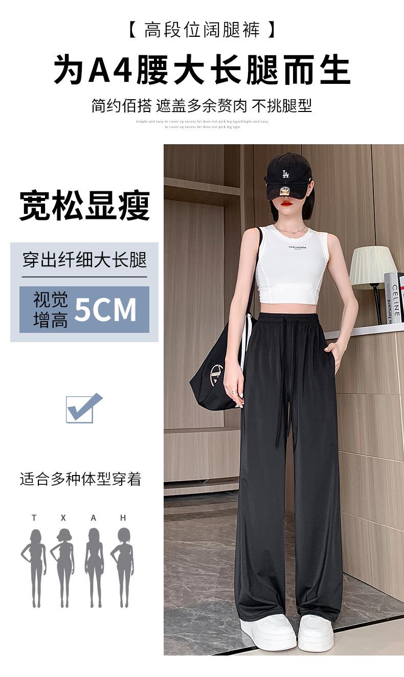 Pantalones de protección solar rosas para mujer, de verano, finos, de cintura alta, drapeados, sueltos, rectos, casuales, de pierna ancha, pantalones deportivos frescos de seda de hielo