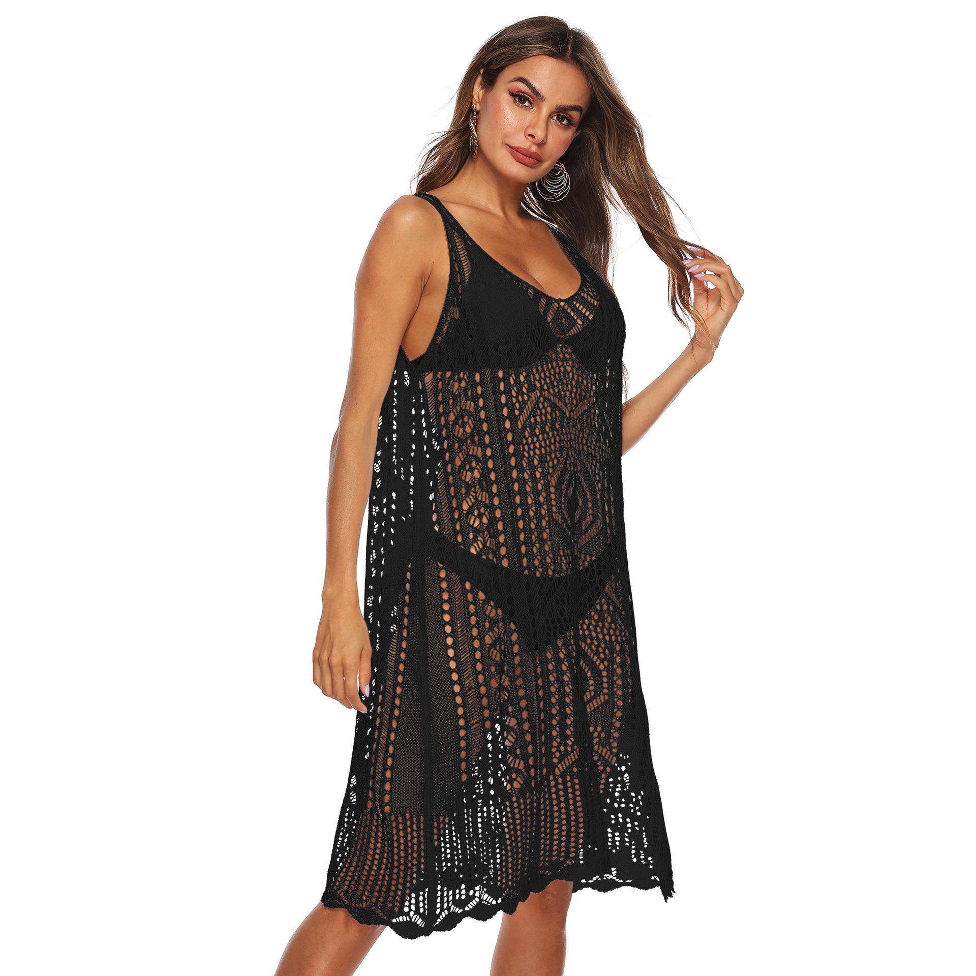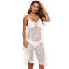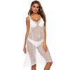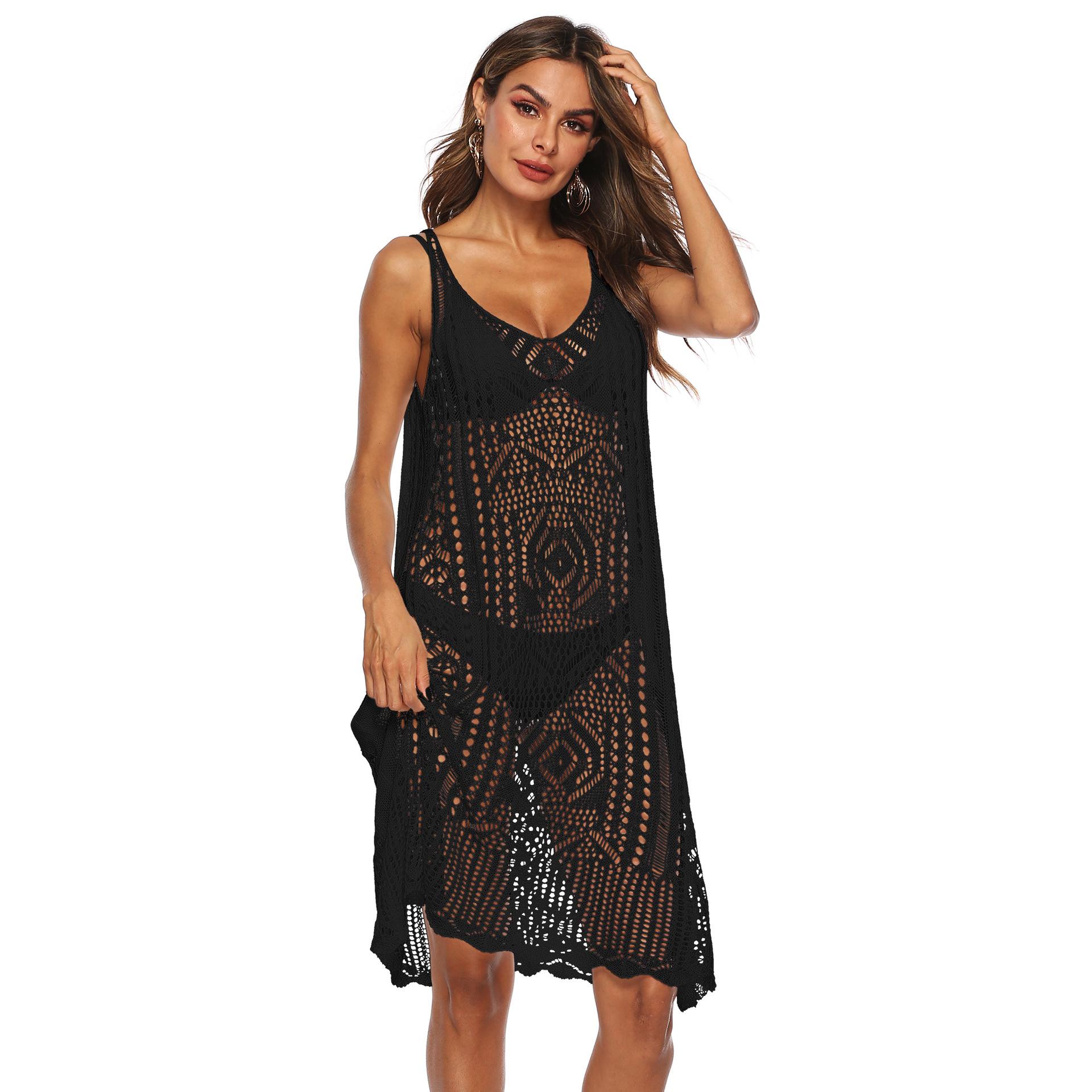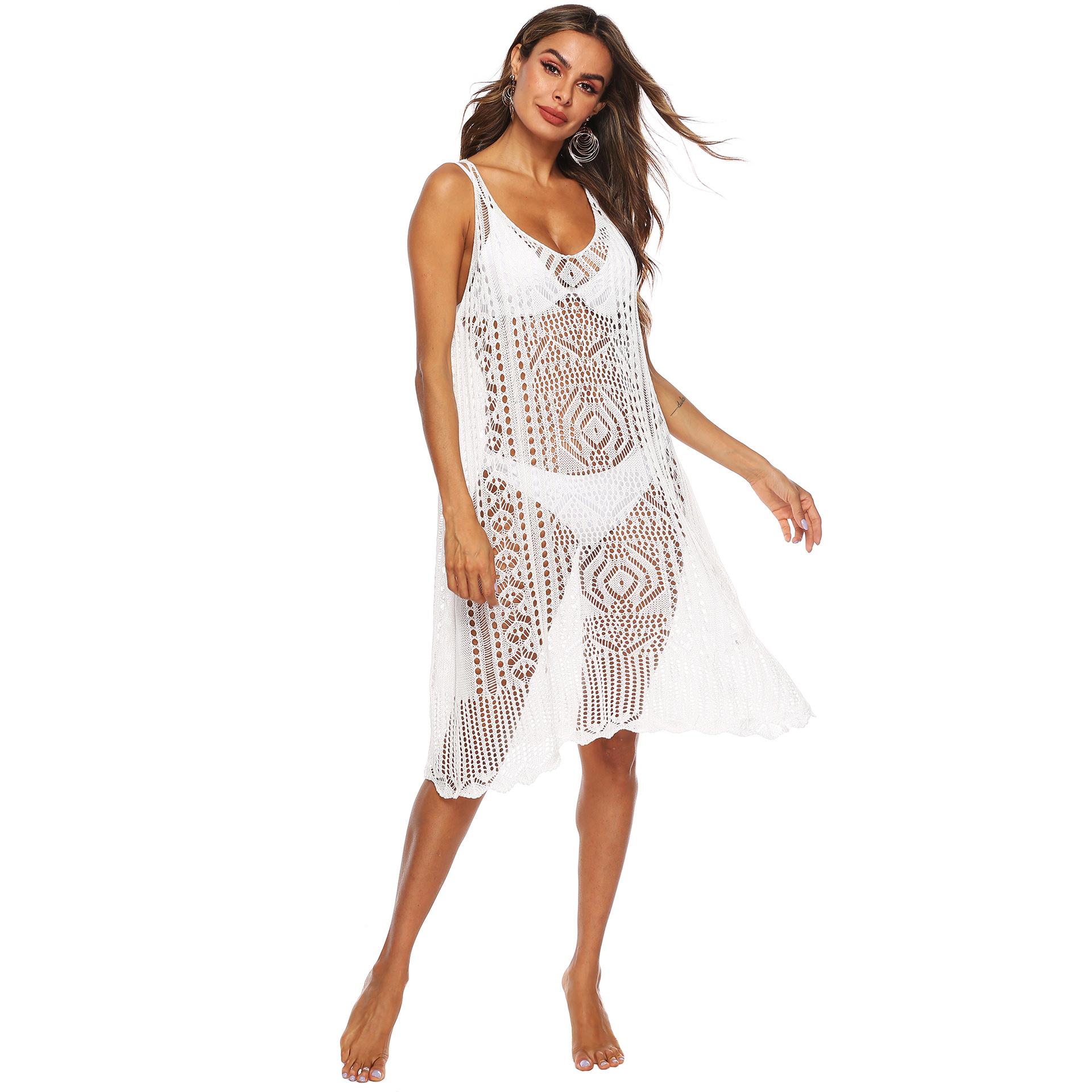 Vestido tipo blusa de bikini playera con falda tipo chaleco, holgado, de tejido calado, sexy, de color liso, para mujer, A19153