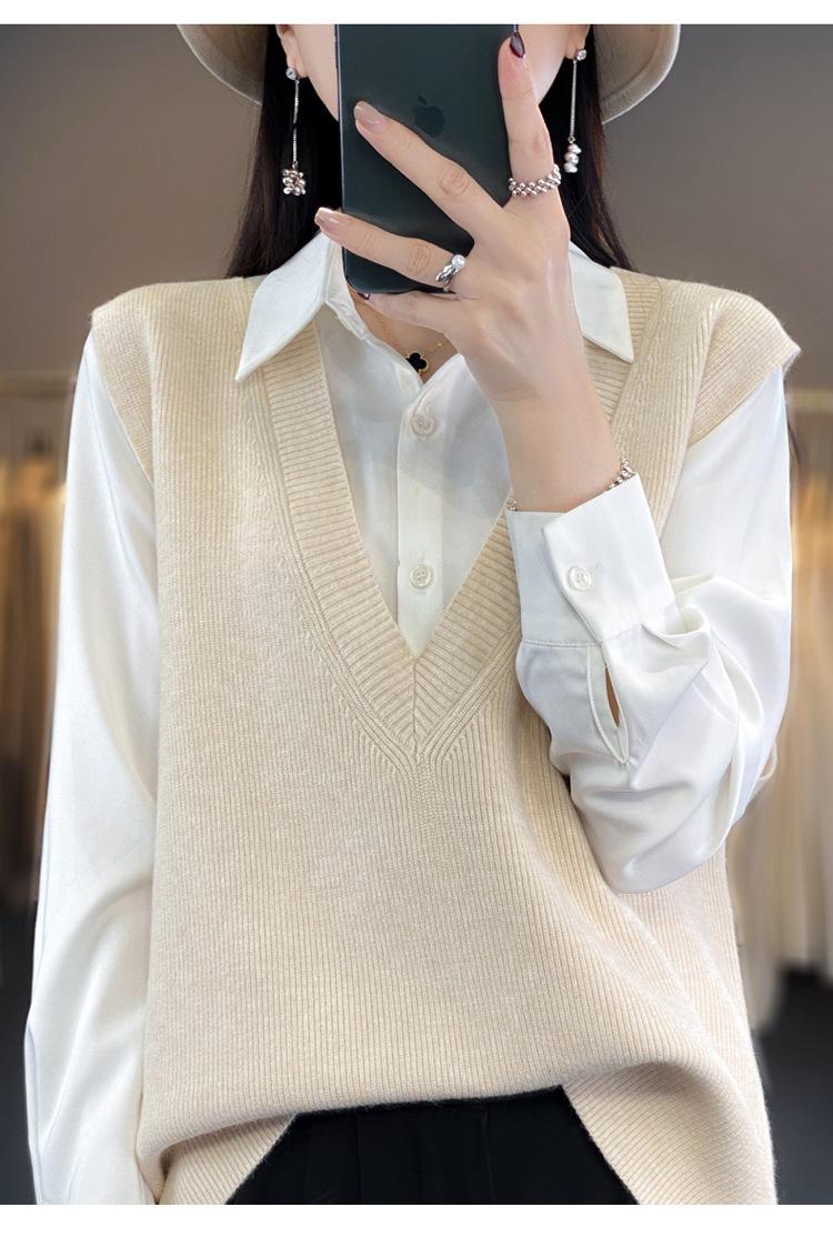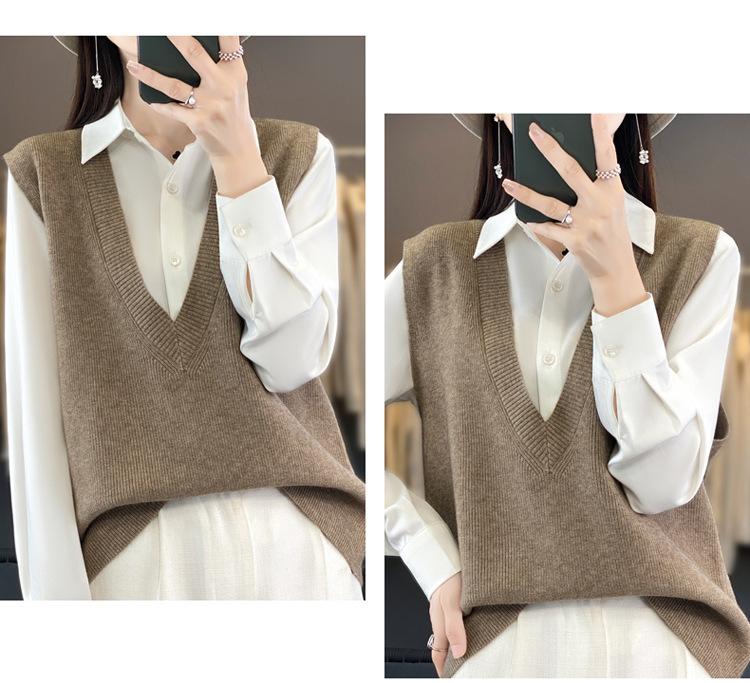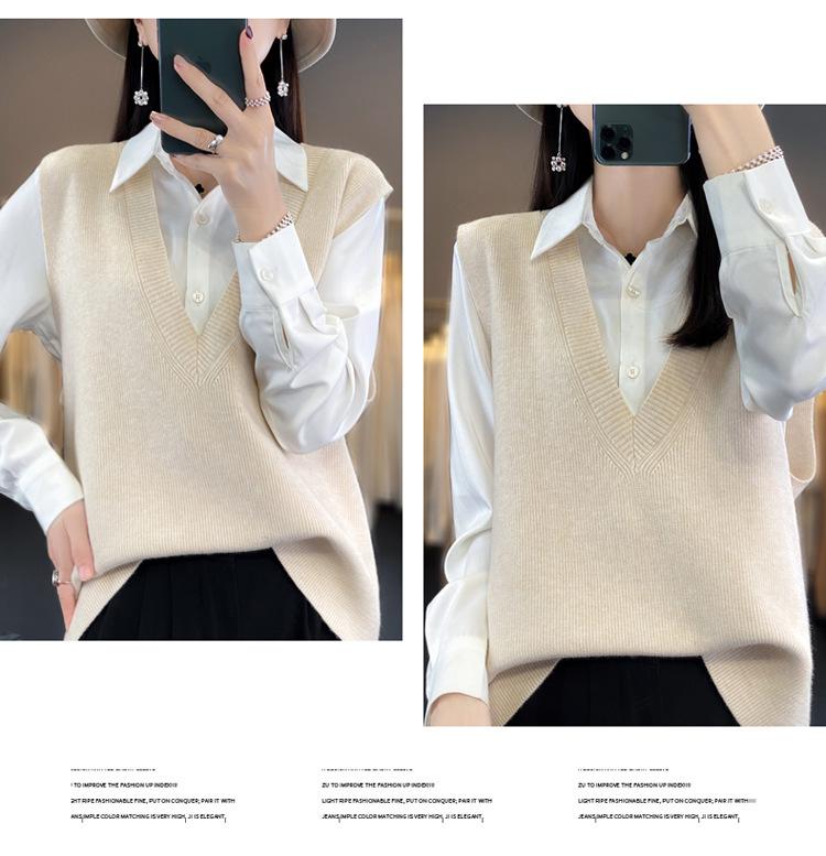 | Suéter de lana 100% pura sin costuras para mujer, estilo Pure Desire, cuello en V, camisa de punto suelta, nuevo suéter de color sólido | Camisa de punto ajustada con cuello alto de lana nueva de otoño e invierno 2023, suéter ajustado de color sólido que combina con todo para mujer, venta al por mayor | Pantalones anchos de punto de lana de cintura alta para mujer, otoño e invierno 2023, nuevos pantalones casuales drapeados para mujer para uso exterior, pantalones rectos suaves y glutinosos | Chaleco sin mangas de punto de lana con cuello en V grande y suelto de principios de otoño, estilo coreano, color sólido, chaleco informal antiedad para mujer | |||