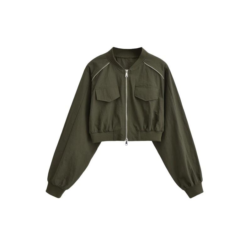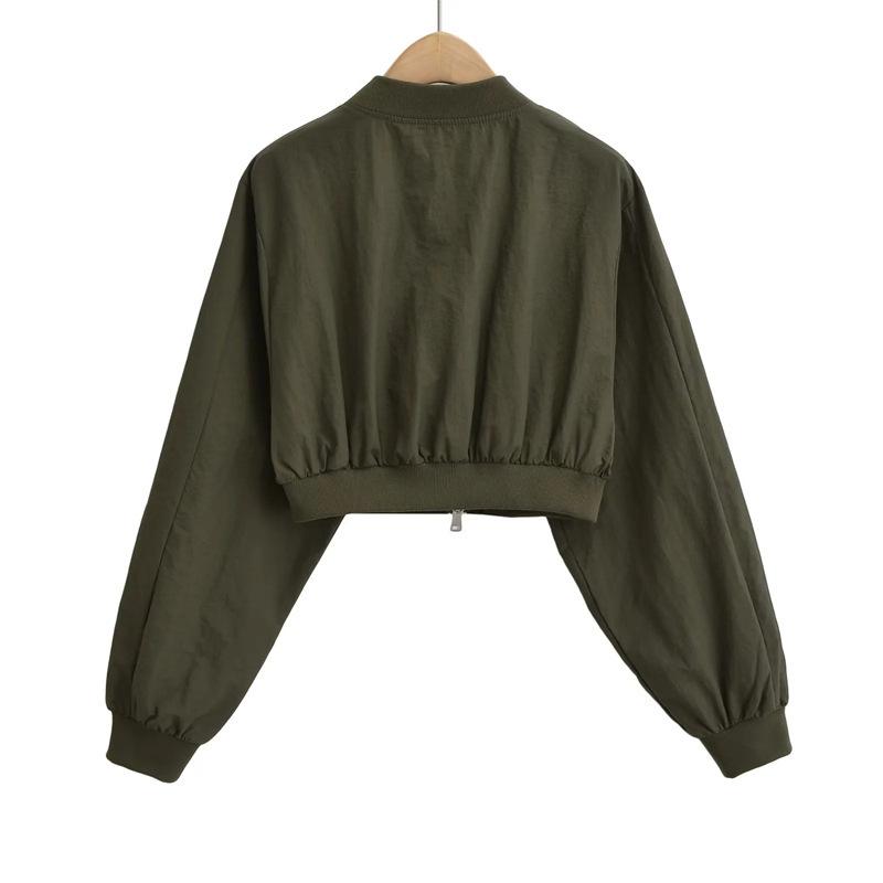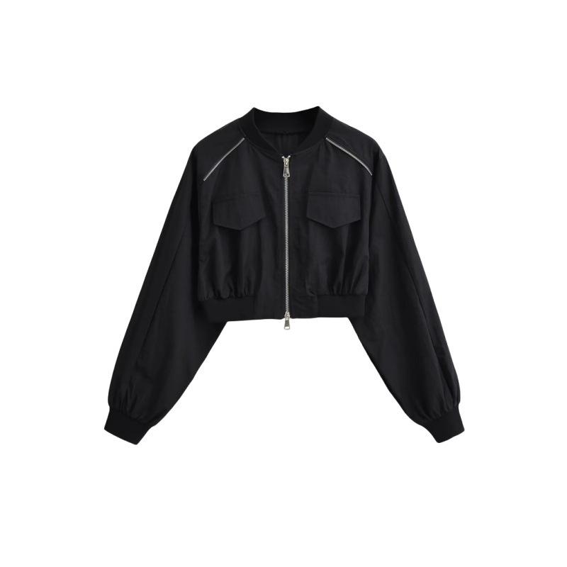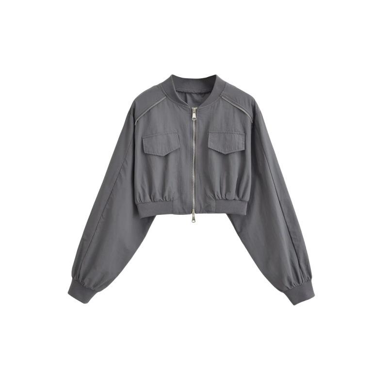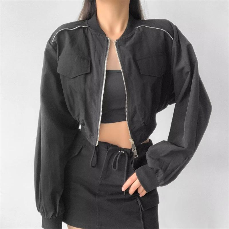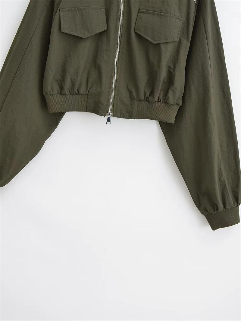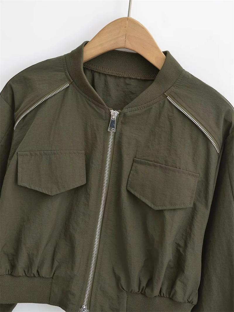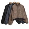 Chaqueta tipo cárdigan con cuello alto y cremallera estilo retro americano para mujer, abrigo de otoño con bolsillo falso, top corto de trabajo para chica atractiva