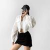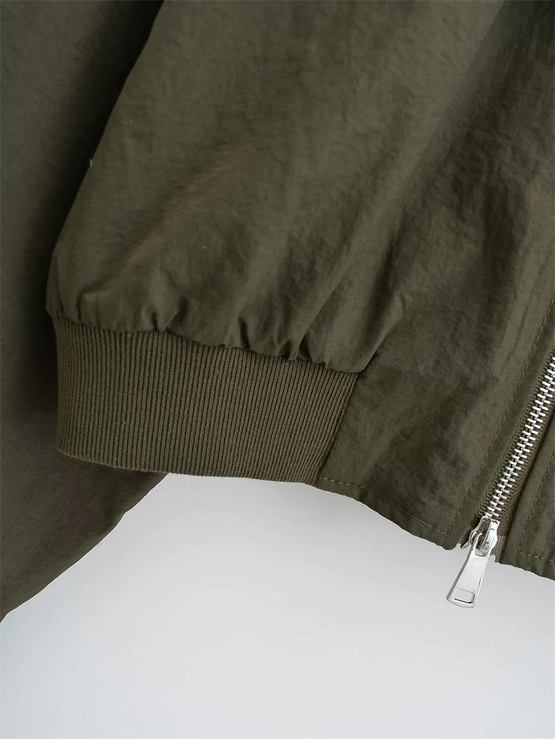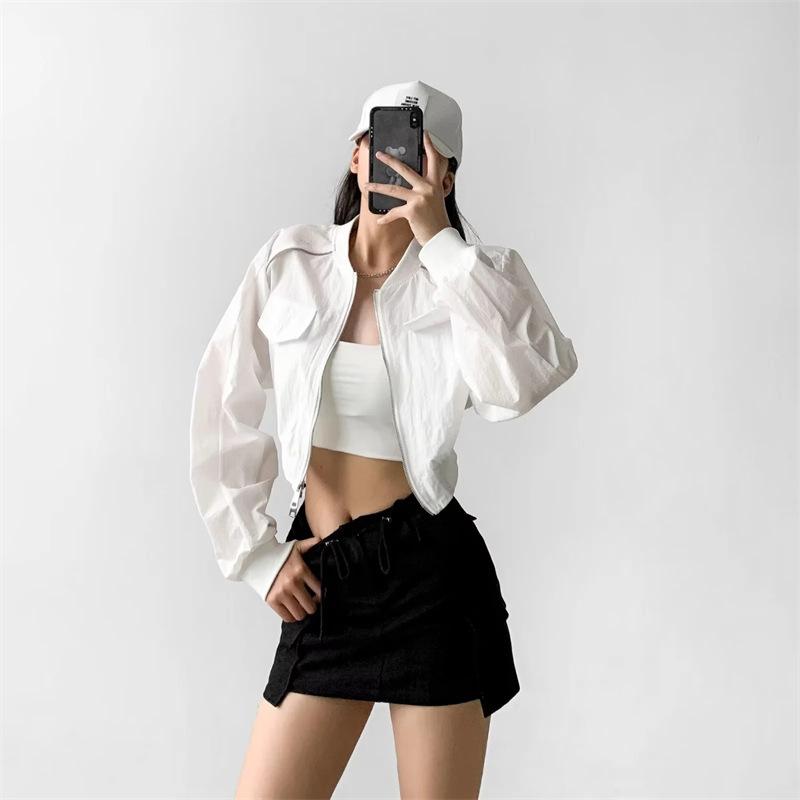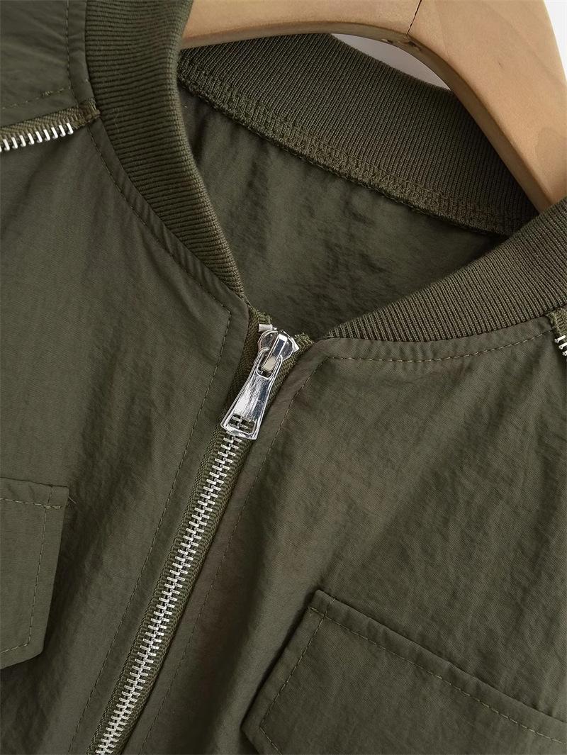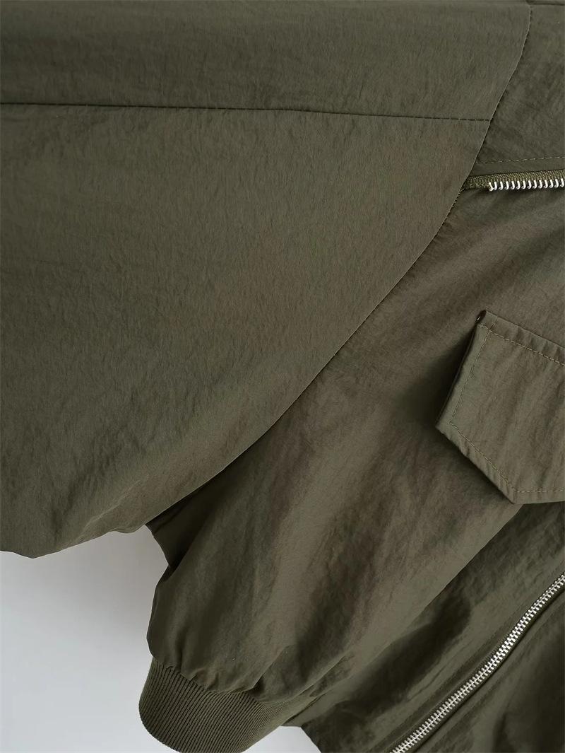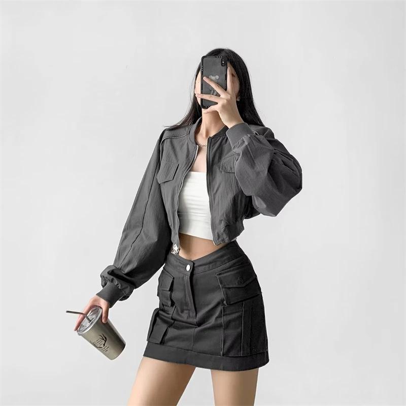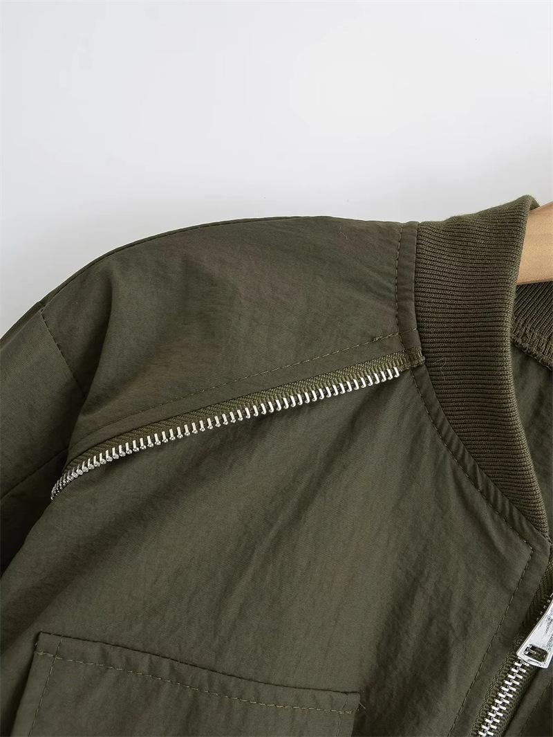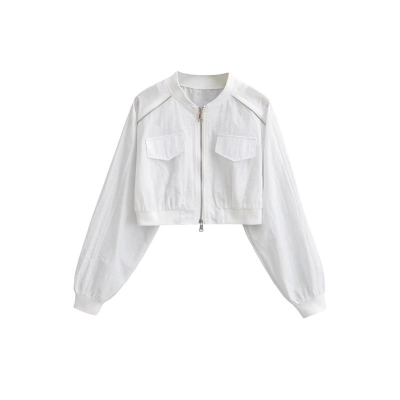 Chaqueta tipo cárdigan con cuello alto y cremallera estilo retro americano para mujer, abrigo de otoño con bolsillo falso, top corto de trabajo para chica atractiva