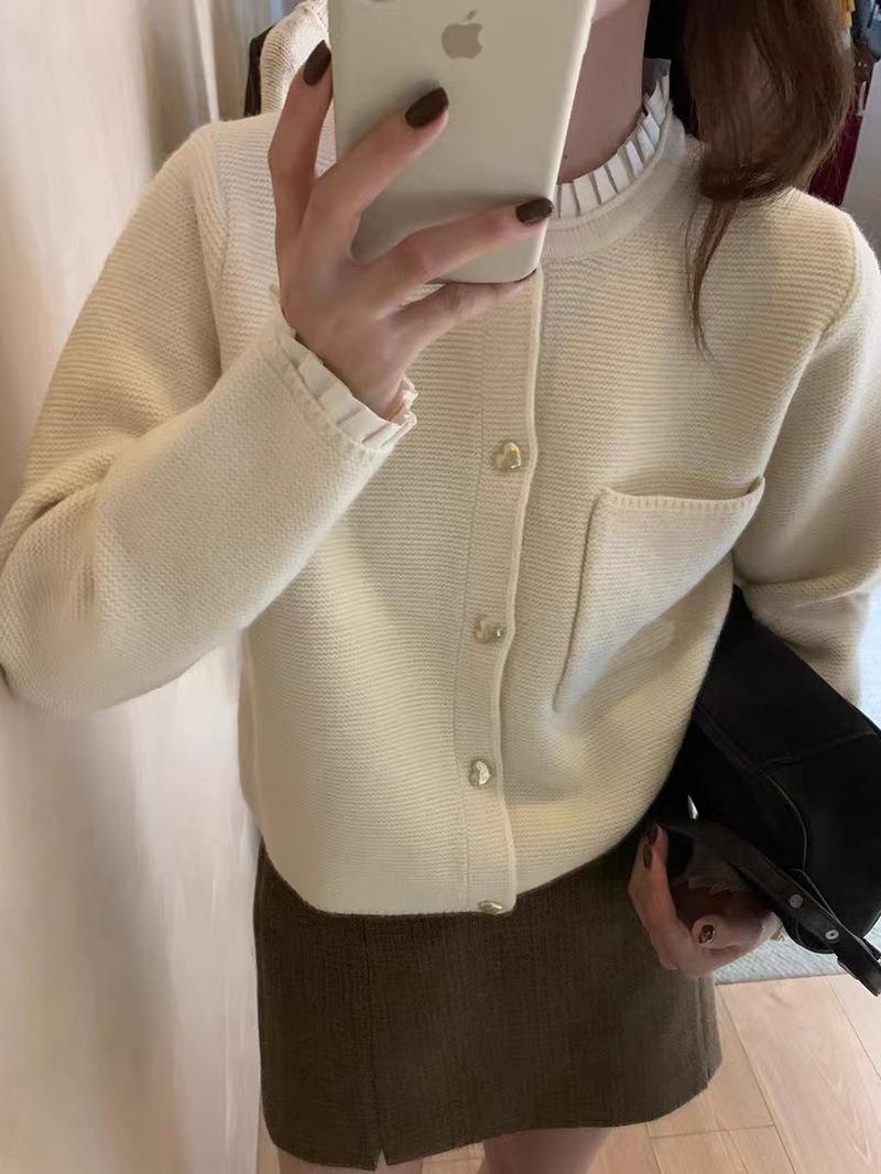 Suéter de Punto de Cuello Redondo Estilo Coreano Nuevo Otoño 2025 Moda Femenina Estilo Suave Nicho Chaqueta Cárdigan de Punto para Mujer