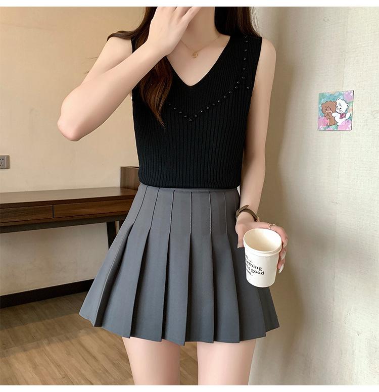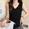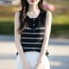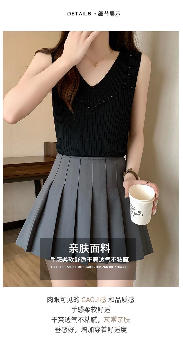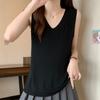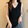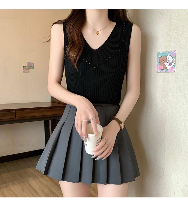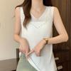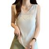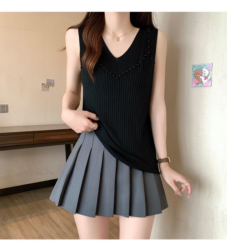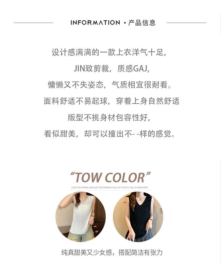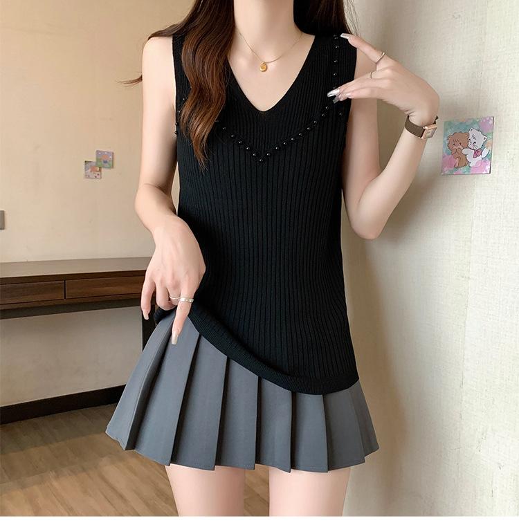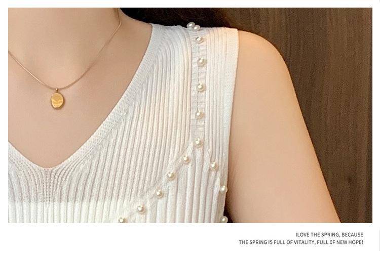 Camisola de punto sin mangas de seda de hielo para mujer, verano 2025, nueva, cuello en V, abalorios pesados, camiseta interior y exterior