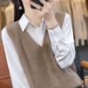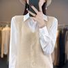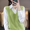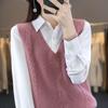 Mezcla de Lana 2025 Primavera Nuevo Jersey Corto de Mujer con Cuello en V Tejido Chaleco Suelto Trenzado Sin Mangas