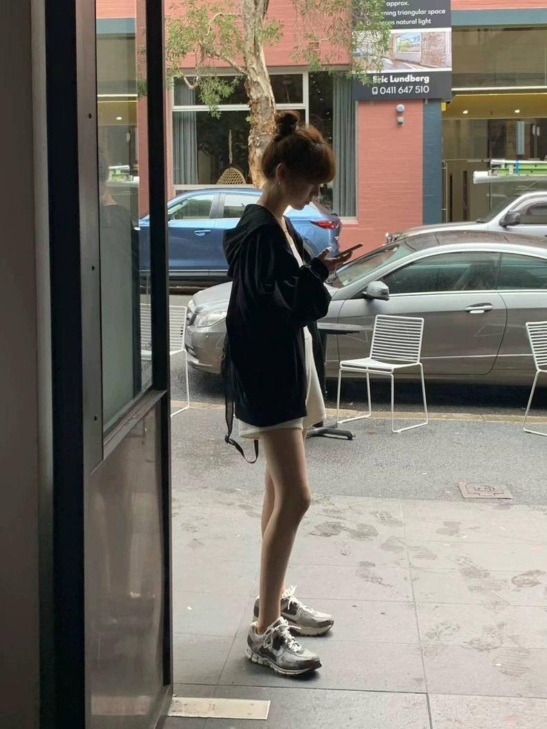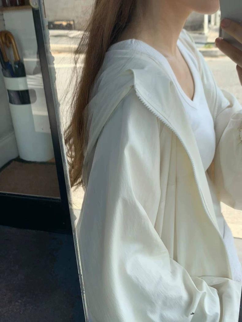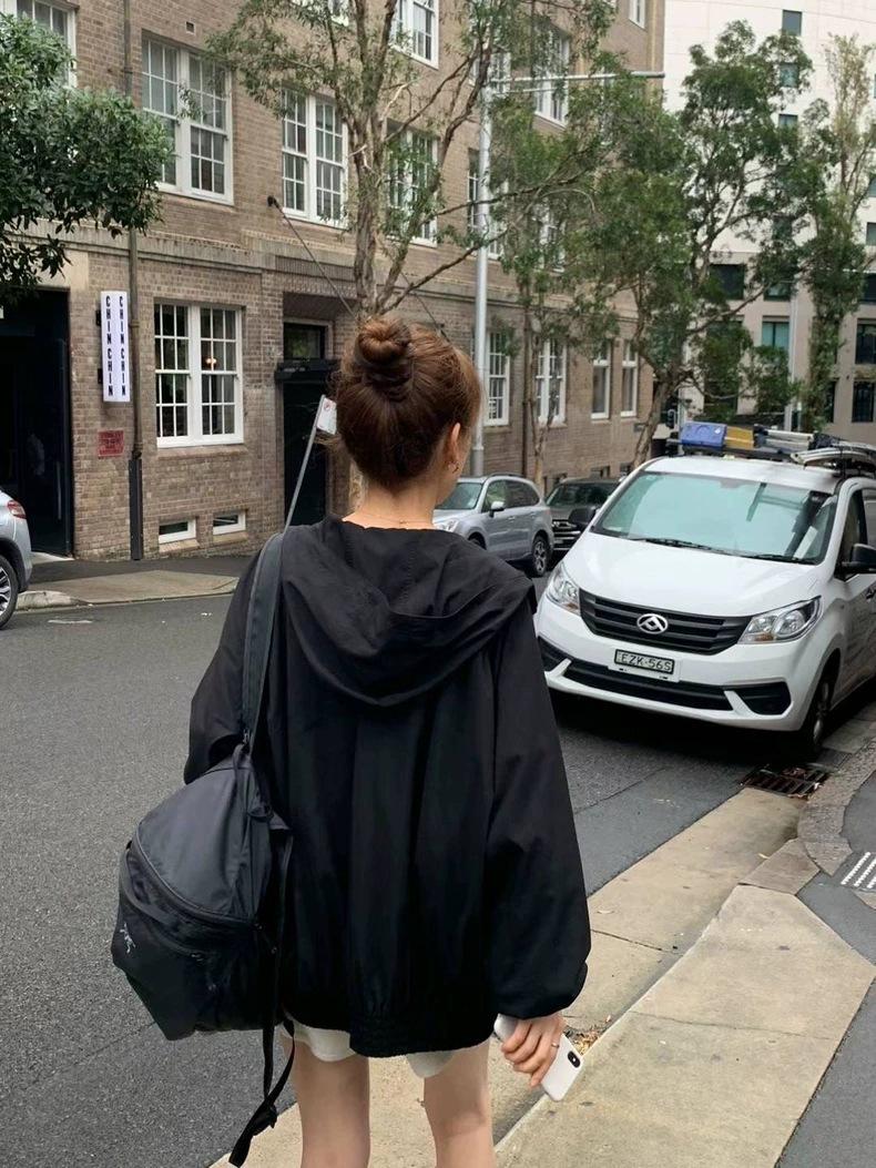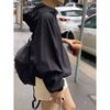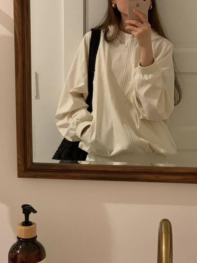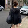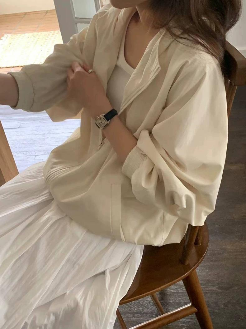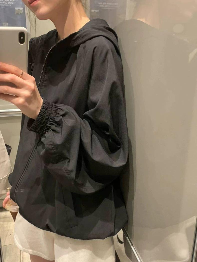 En stock Chaqueta ligera con capucha y cremallera suelta de primavera para mujer, diseñador coreano, color sólido, top que combina con todo oun * e
