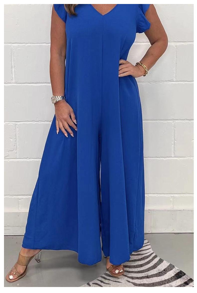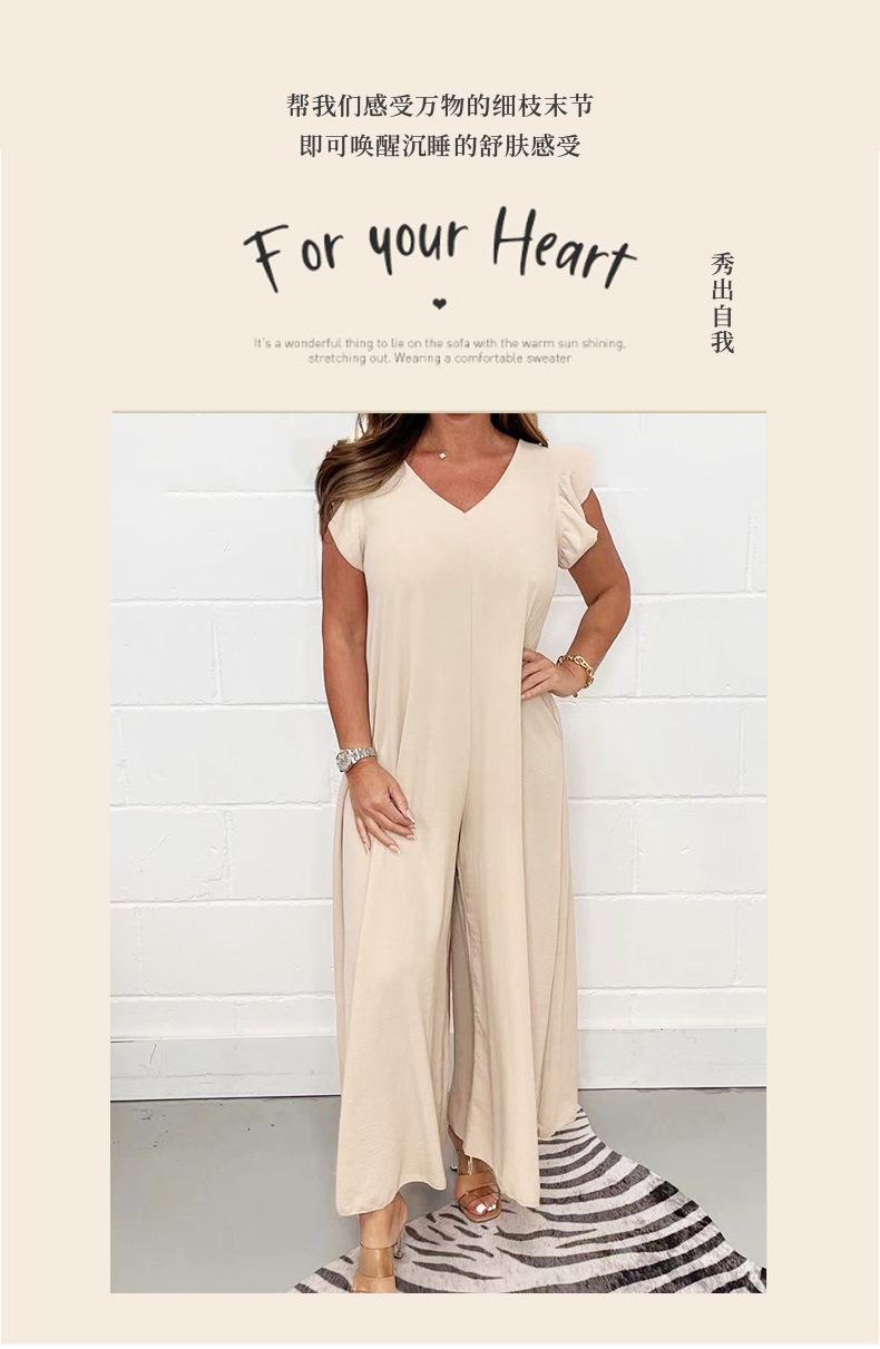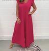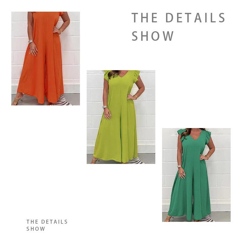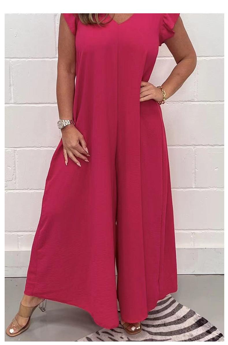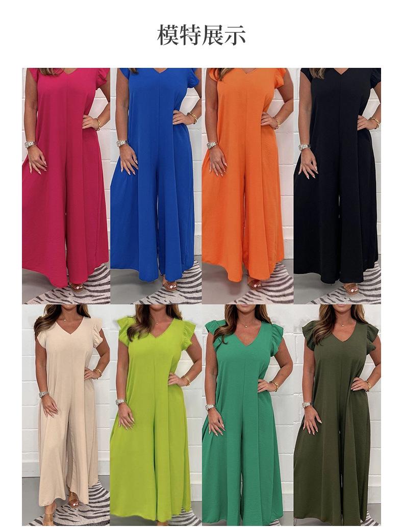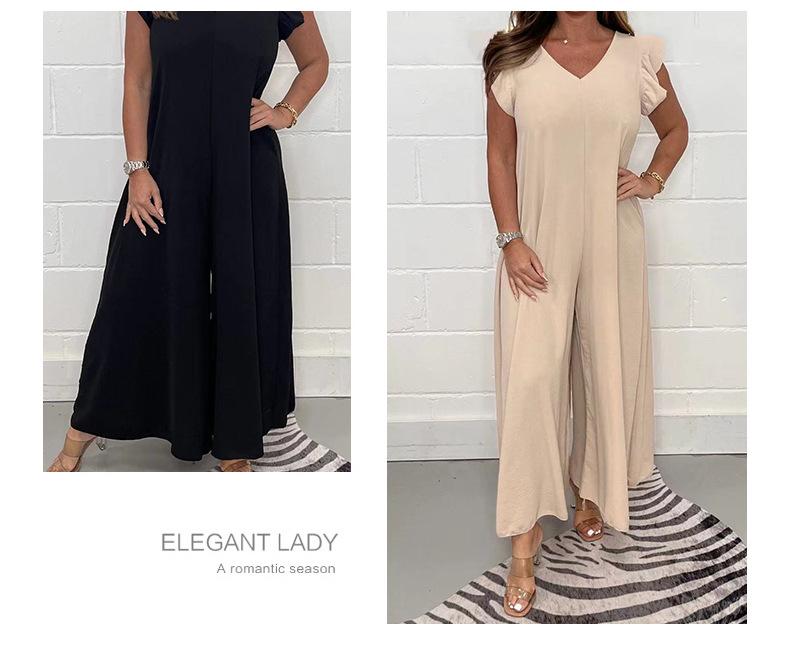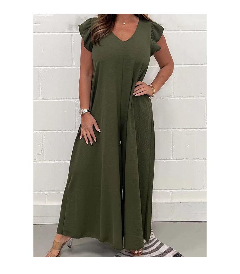2024 Verano Nuevo Amazon Europeo y Americano para Mujer Pantalones Holgados para Mujer con Volantes Color Sólido Mono de Pierna Ancha