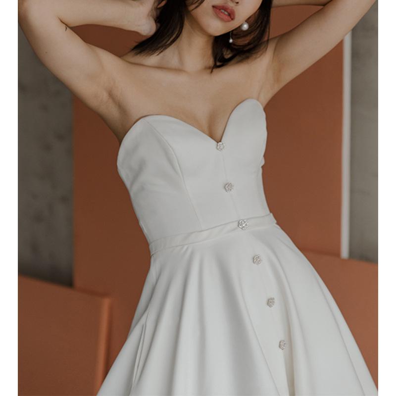 Vestido de Boda Ligero Super Hada Hepburn Novia Vestido de Cola de Boda 2025 Nuevo Sencillo Tubo Top Salida Gasa Una Pieza Envío Directo