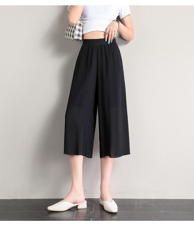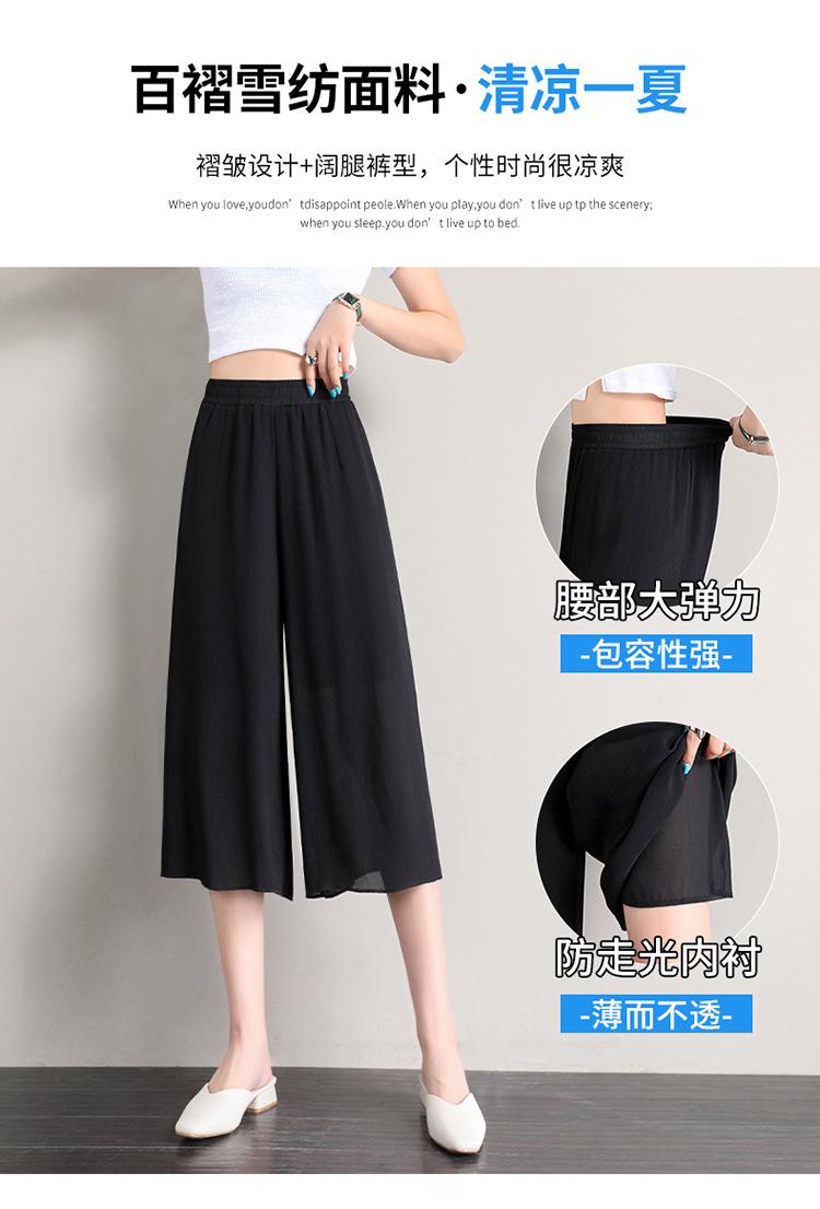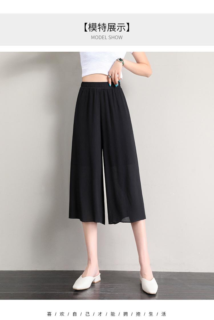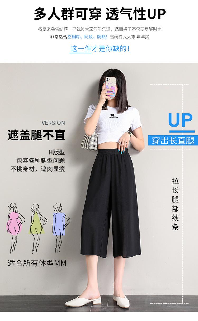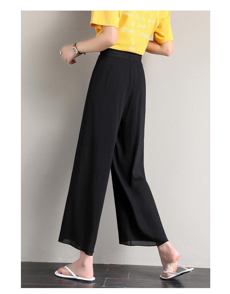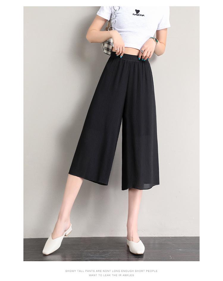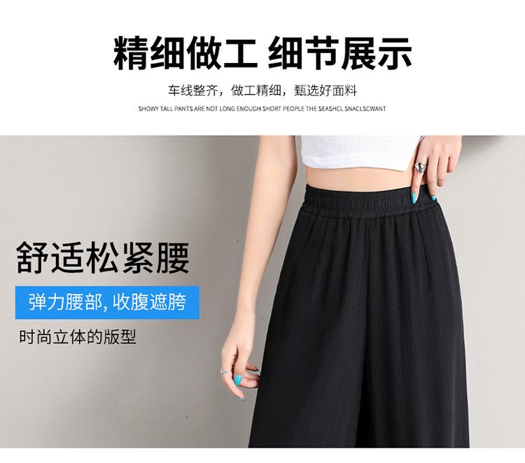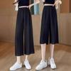 Pantalones de gasa de pierna ancha para mujer en verano, delgados, de cintura alta, casuales, tipo falda drapeada, sueltos, de seda helada, pantalones rectos casuales de tres puntos