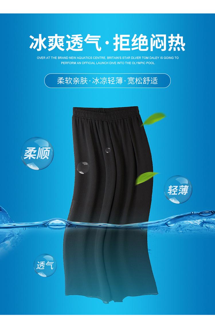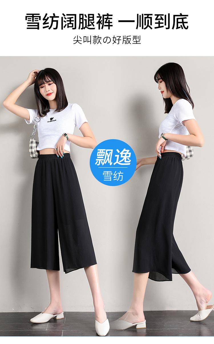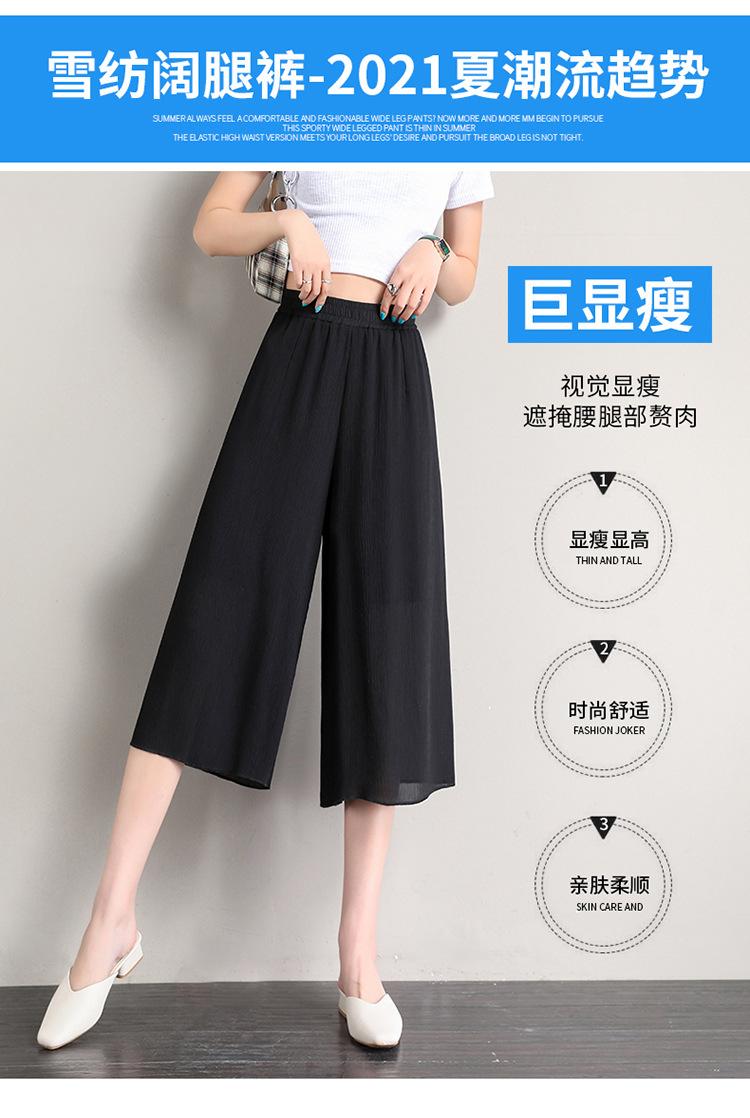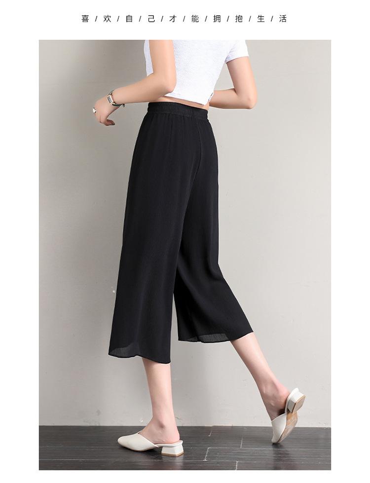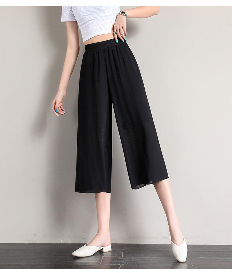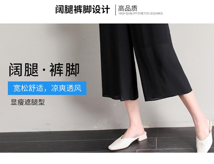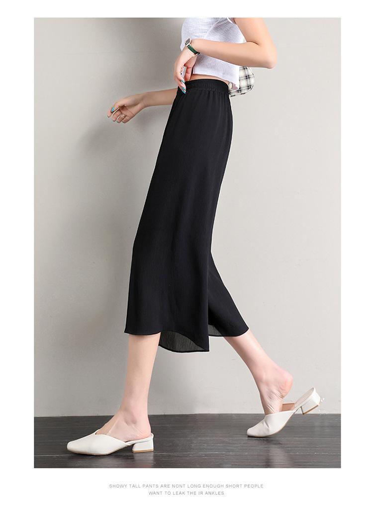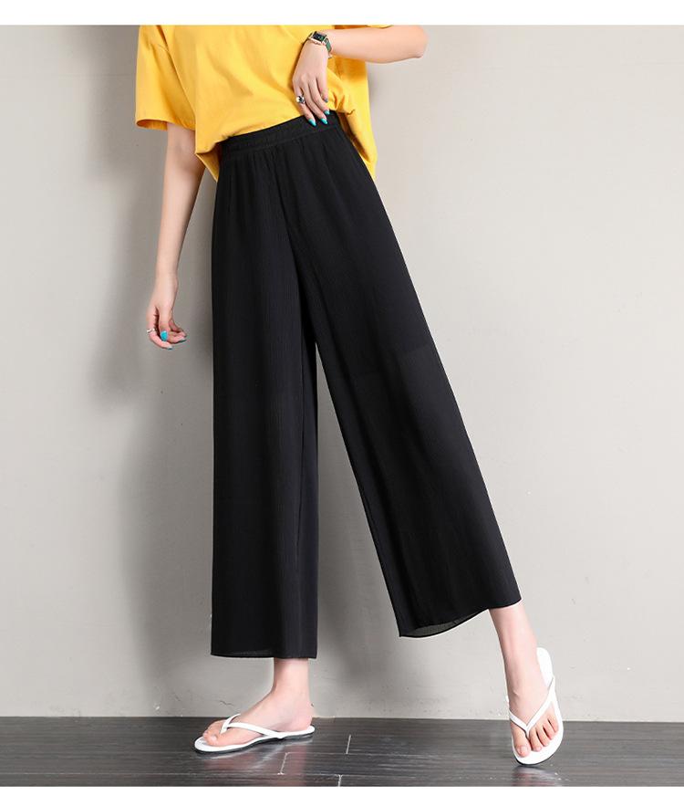Pantalones de gasa de pierna ancha para mujer en verano, delgados, de cintura alta, casuales, tipo falda drapeada, sueltos, de seda helada, pantalones rectos casuales de tres puntos