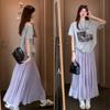 2025 Primavera y Verano Nuevo Falda Plisada Color Puro Falda Plisada Largo Medio Cintura Alta Falda Paraguas