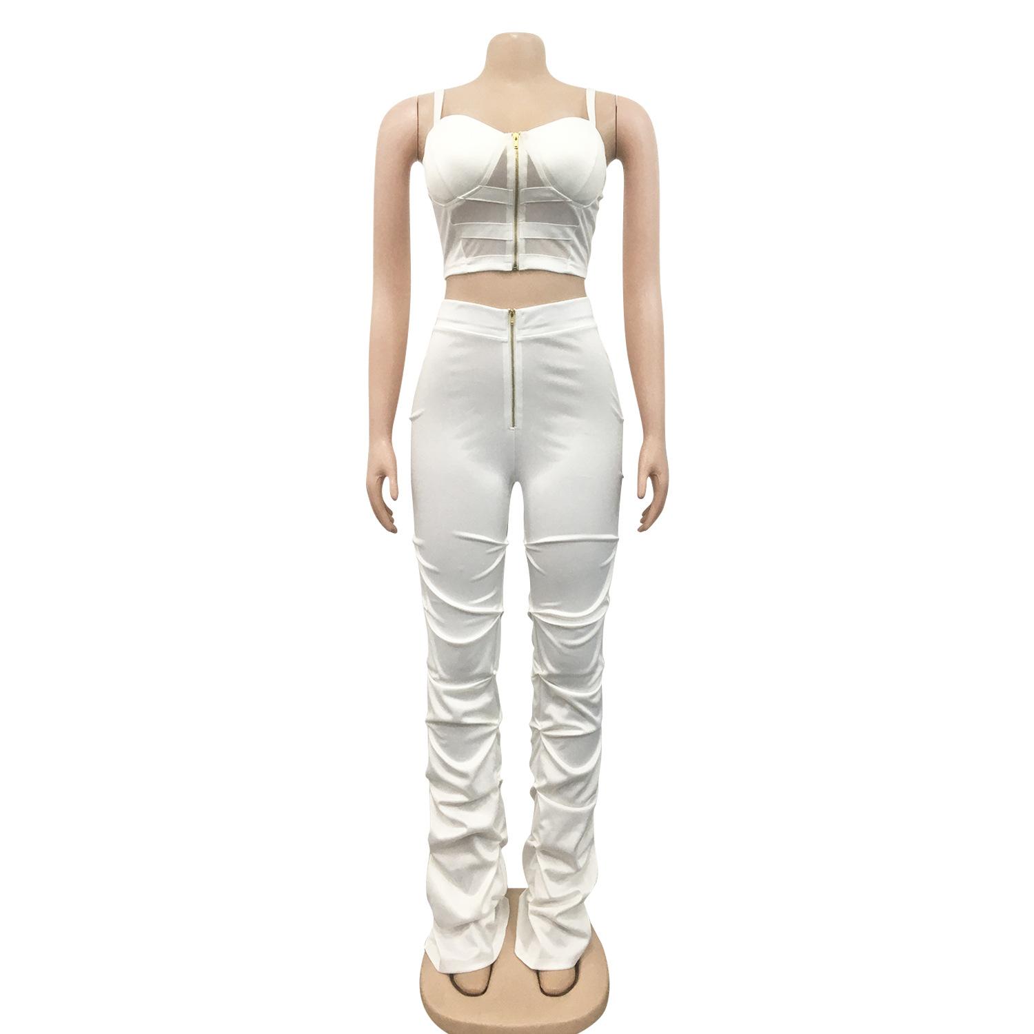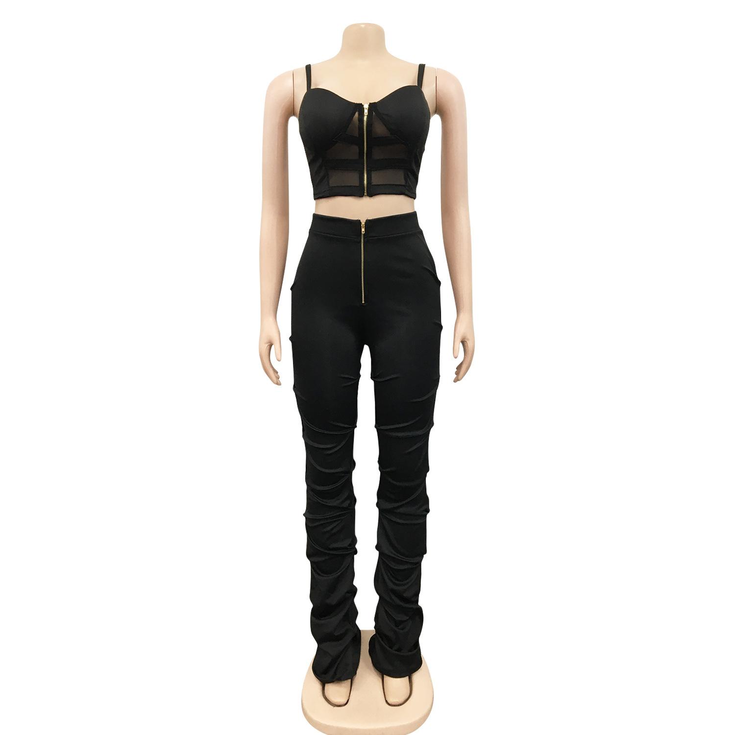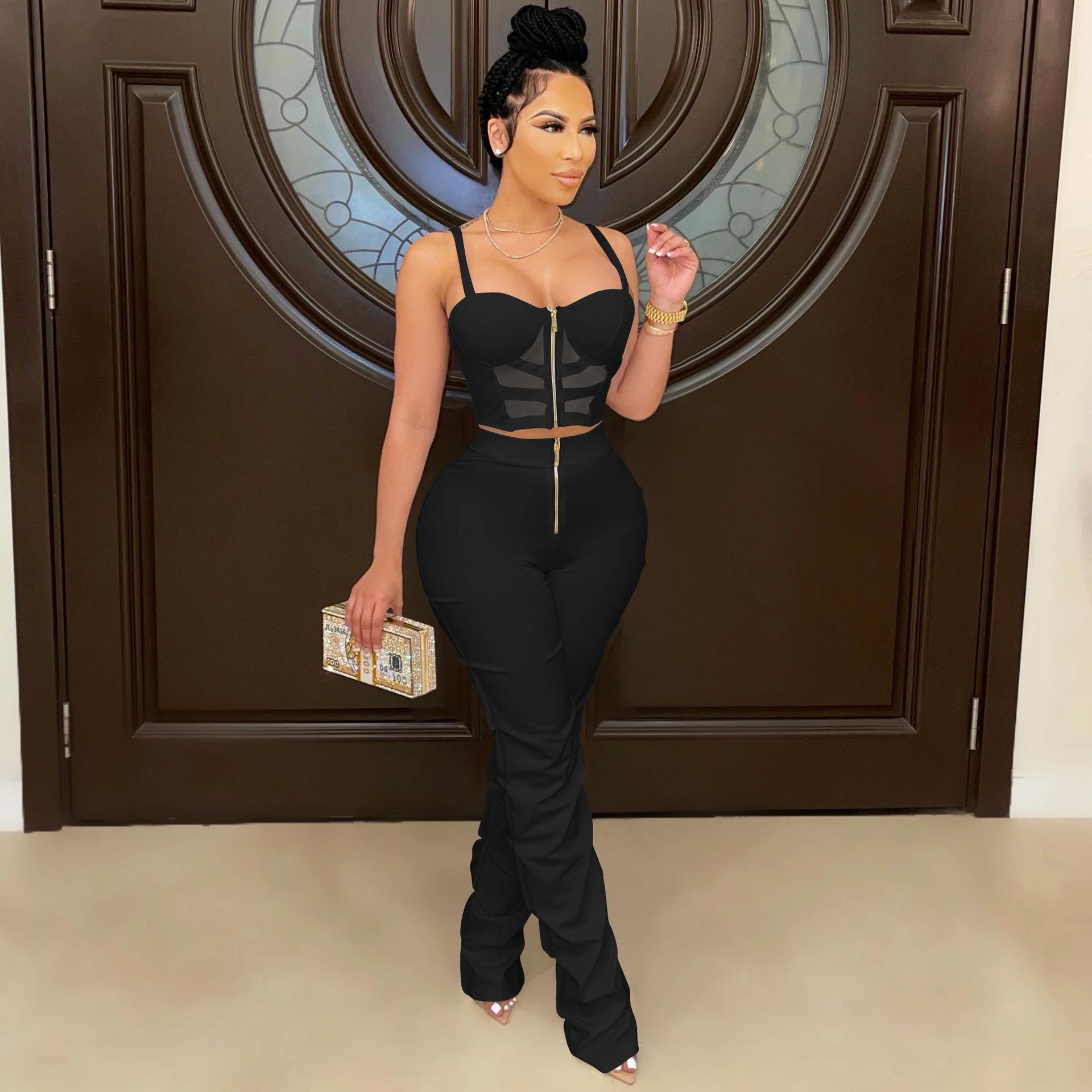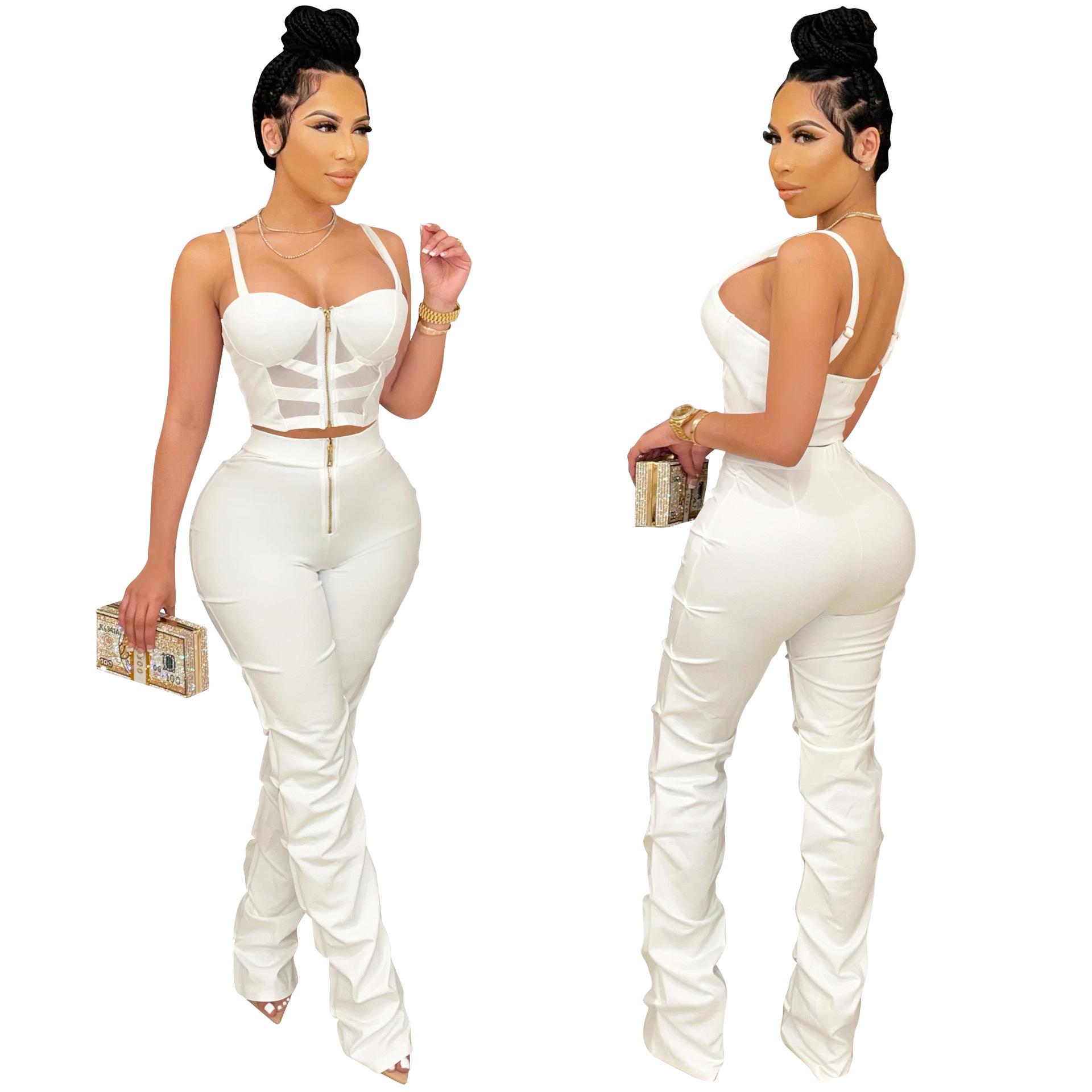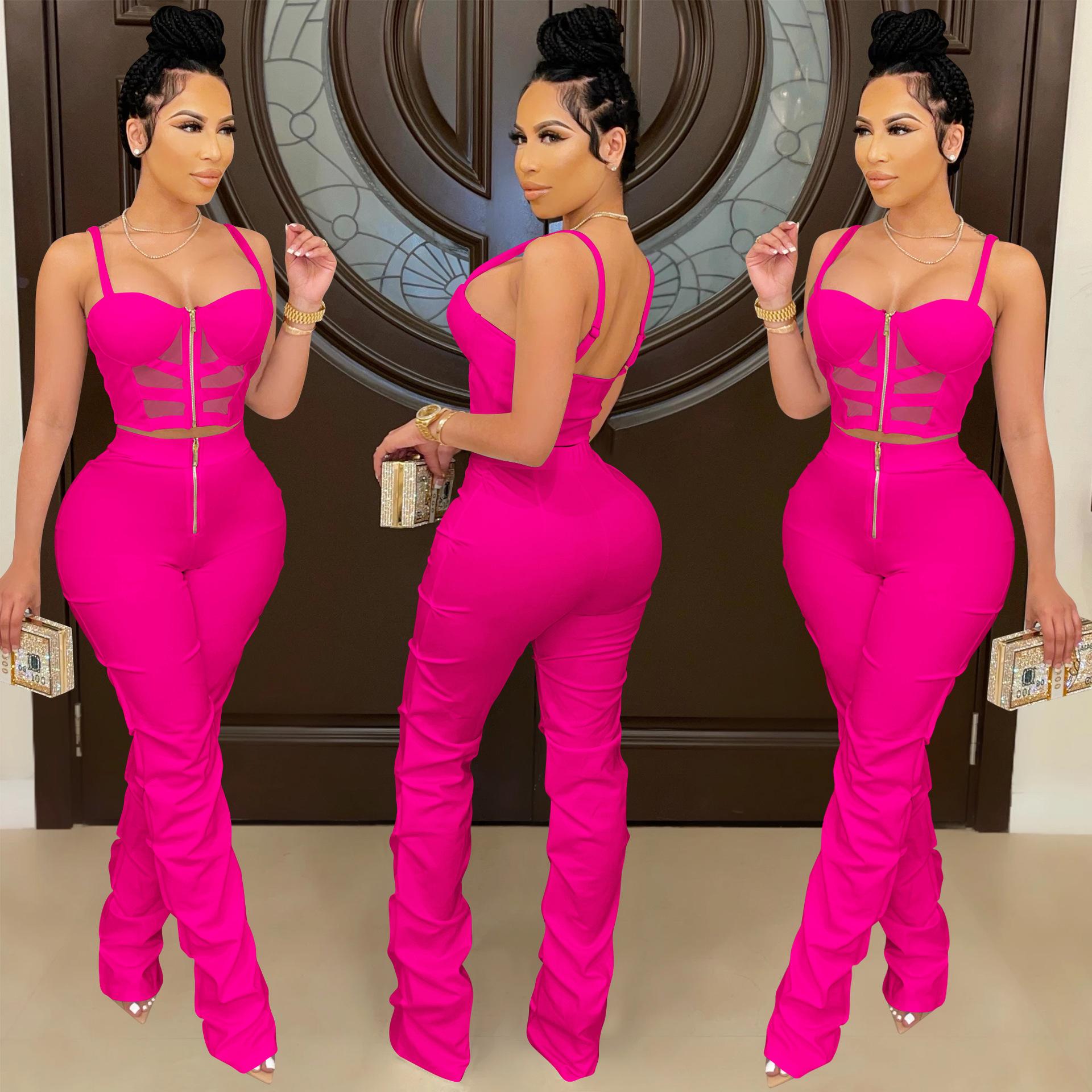 X5215 AliExpress Amazon Ebay Color Sólido Sexy para Mujer Sling Envoltura Pecho Cremallera Chaleco Pantalones Conjunto de Dos Piezas
