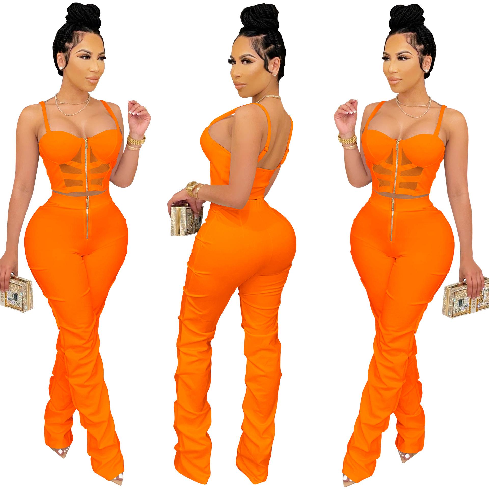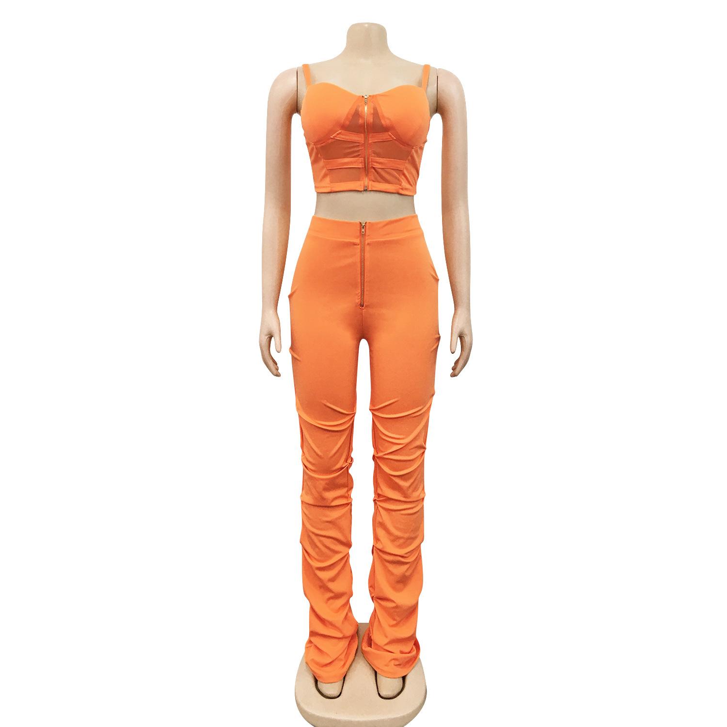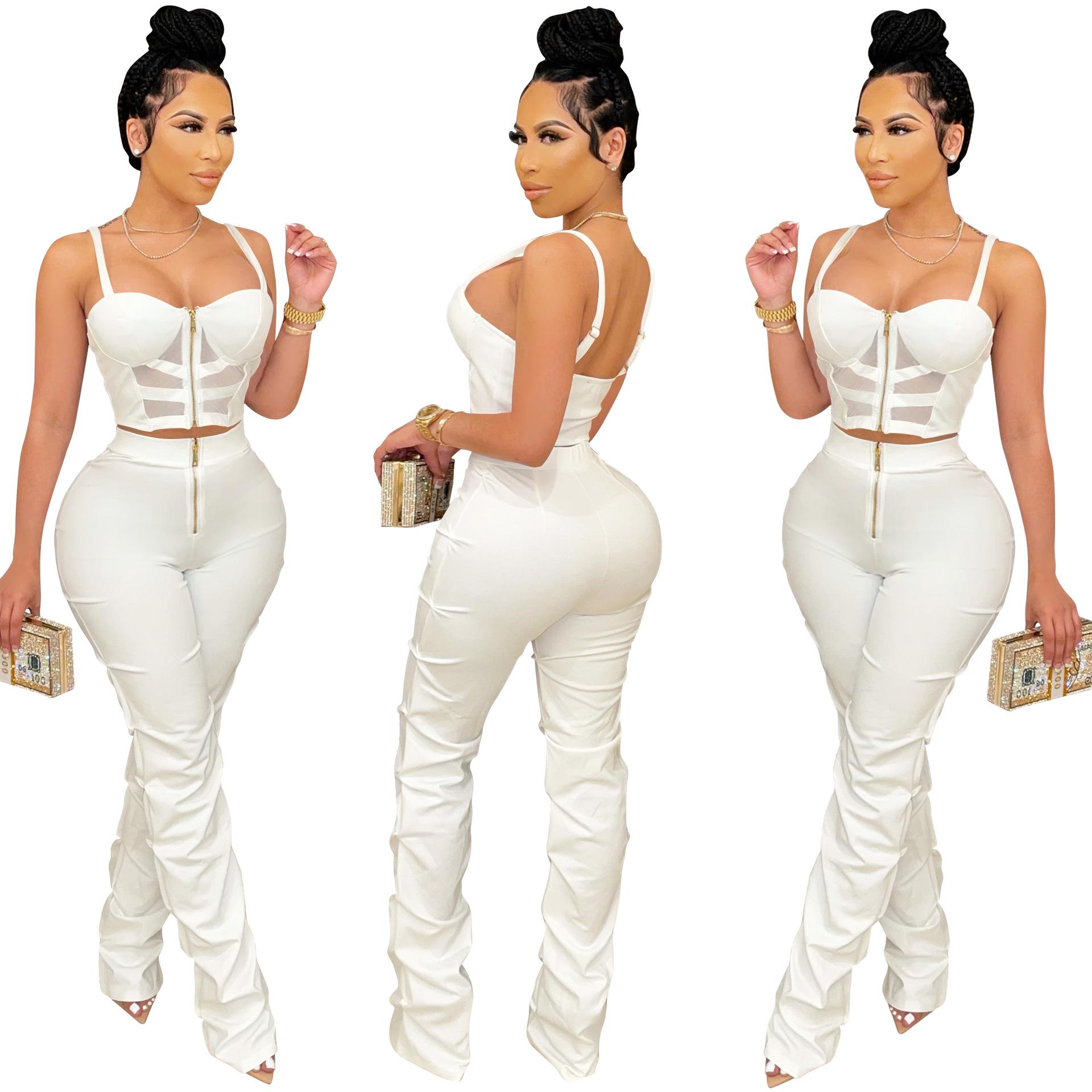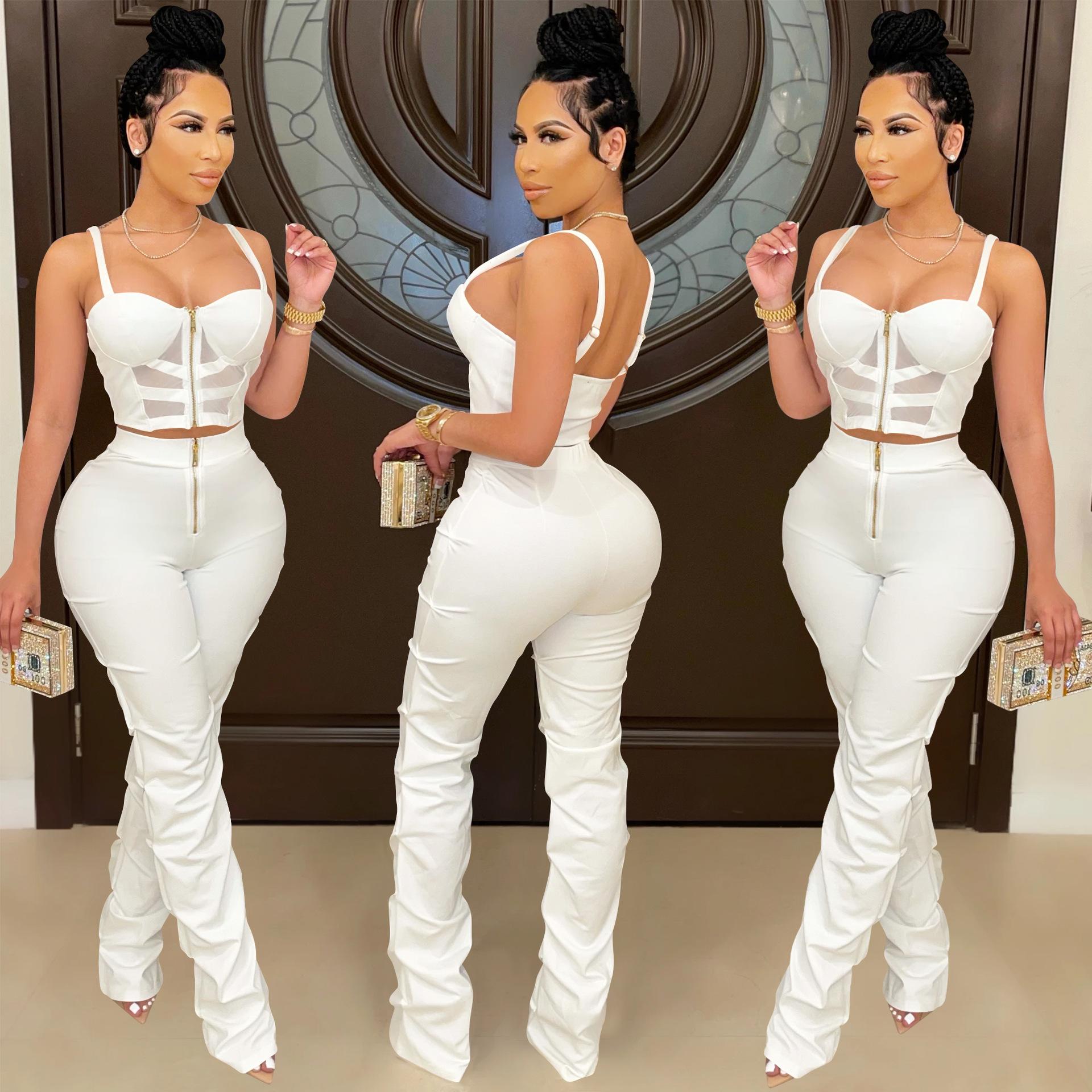 X5215 AliExpress Amazon Ebay Color Sólido Sexy para Mujer Sling Envoltura Pecho Cremallera Chaleco Pantalones Conjunto de Dos Piezas