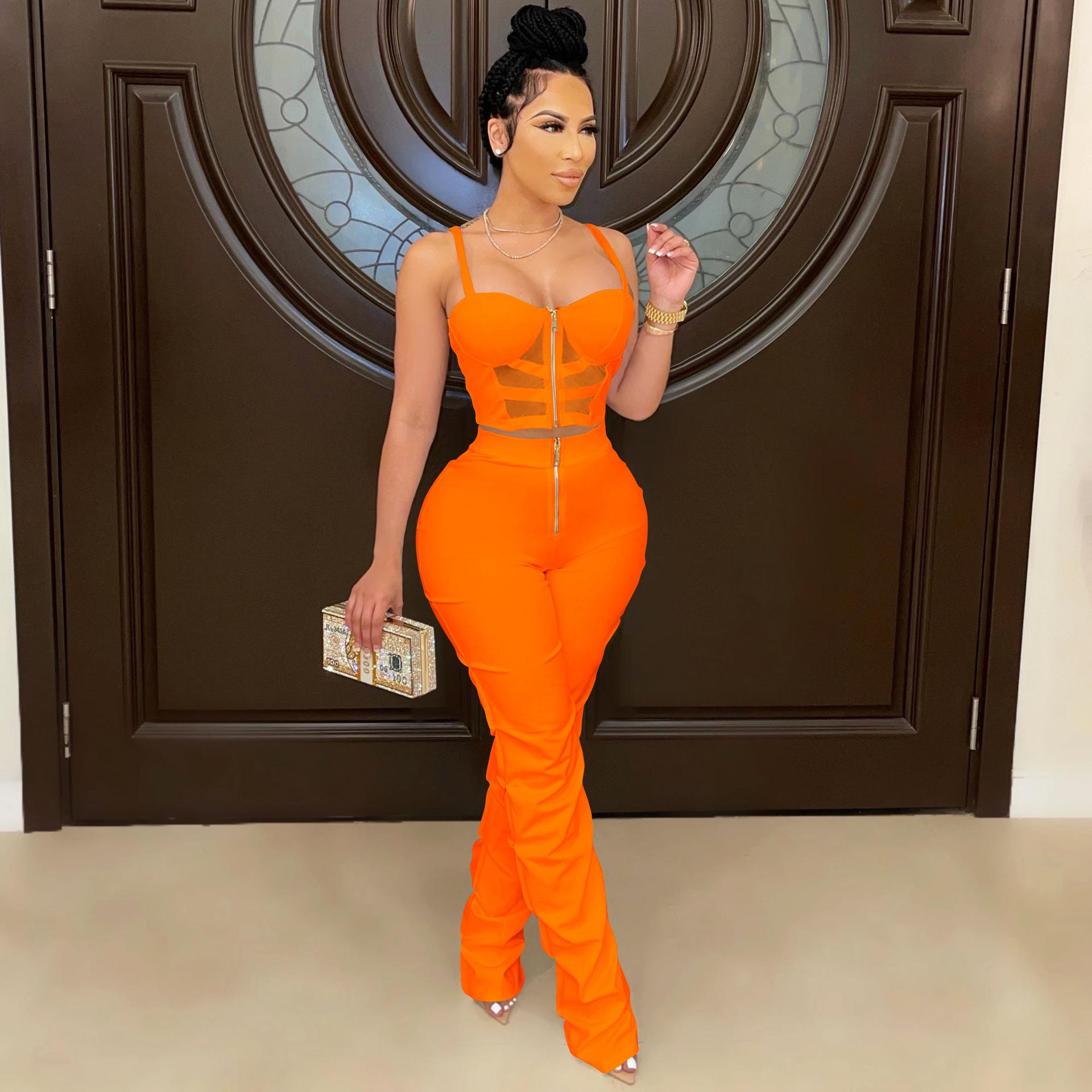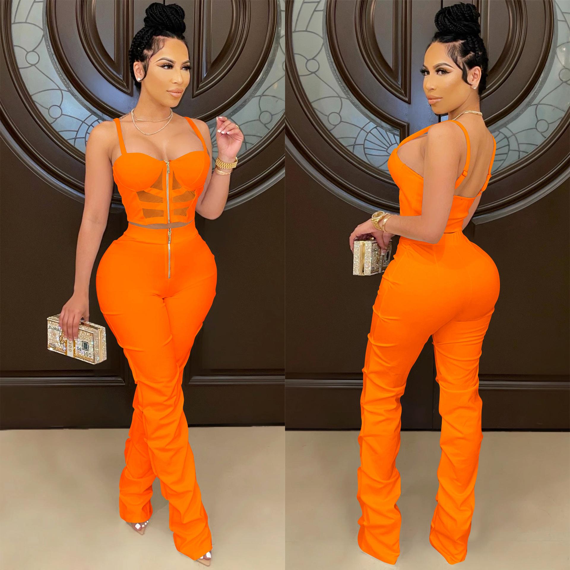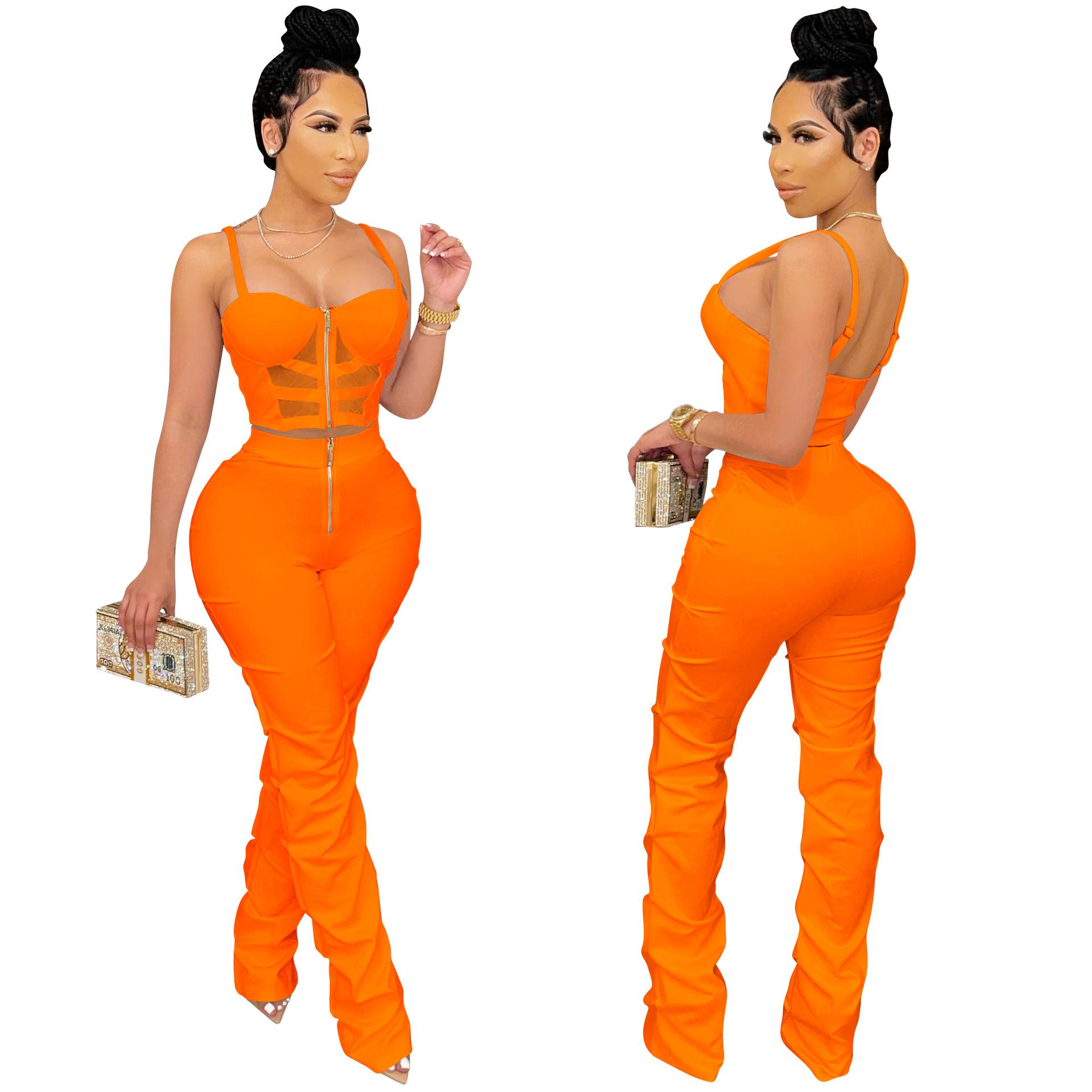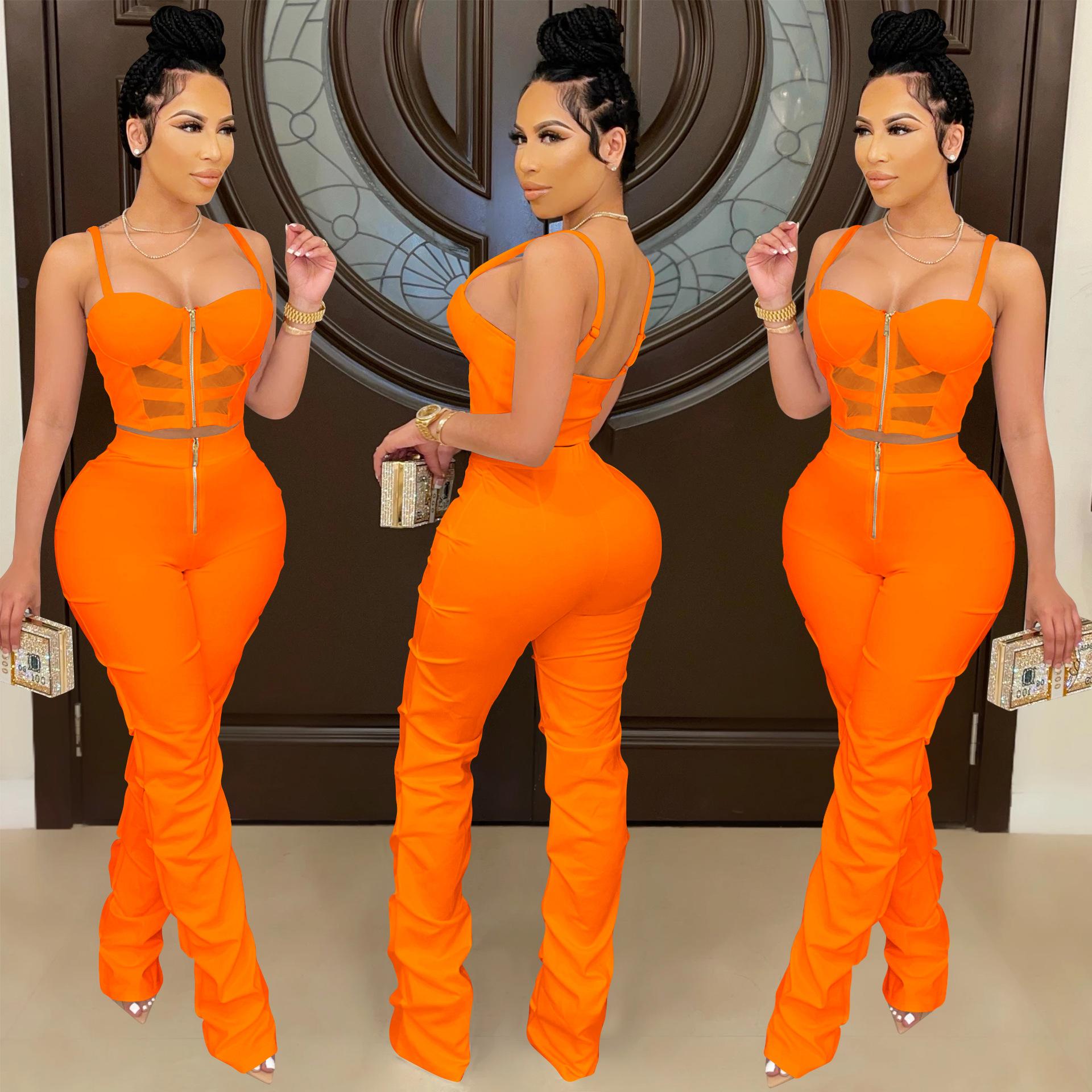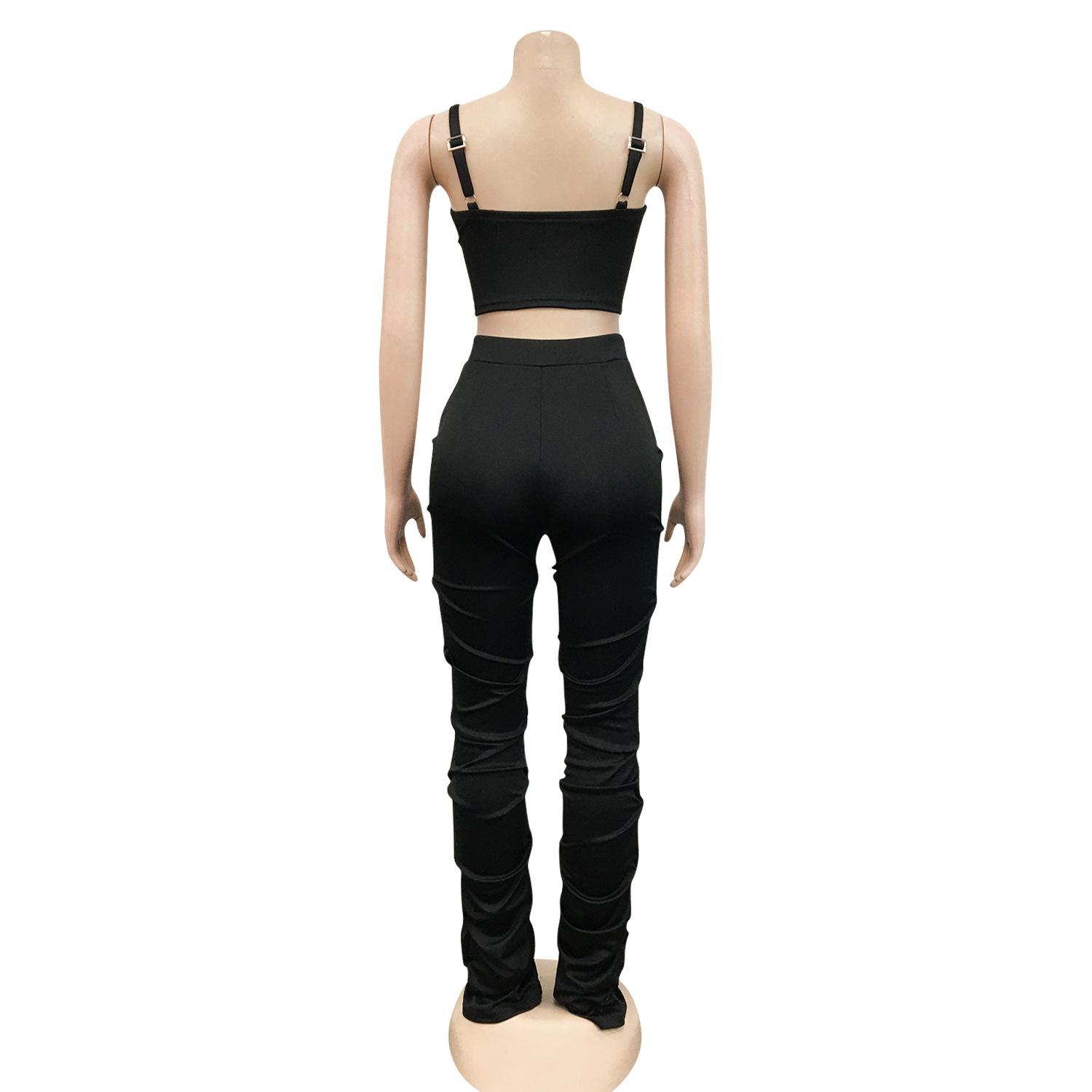 X5215 AliExpress Amazon Ebay Color Sólido Sexy para Mujer Sling Envoltura Pecho Cremallera Chaleco Pantalones Conjunto de Dos Piezas