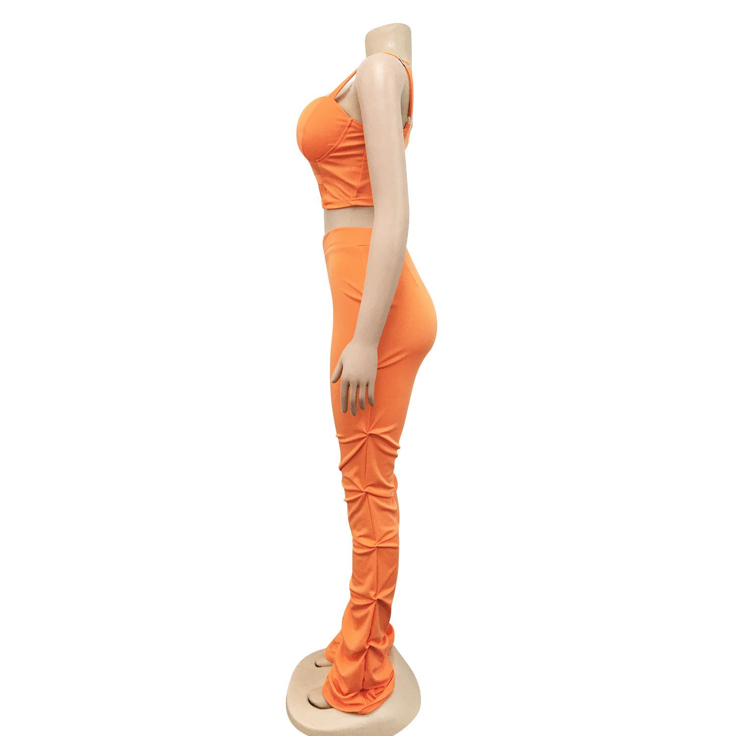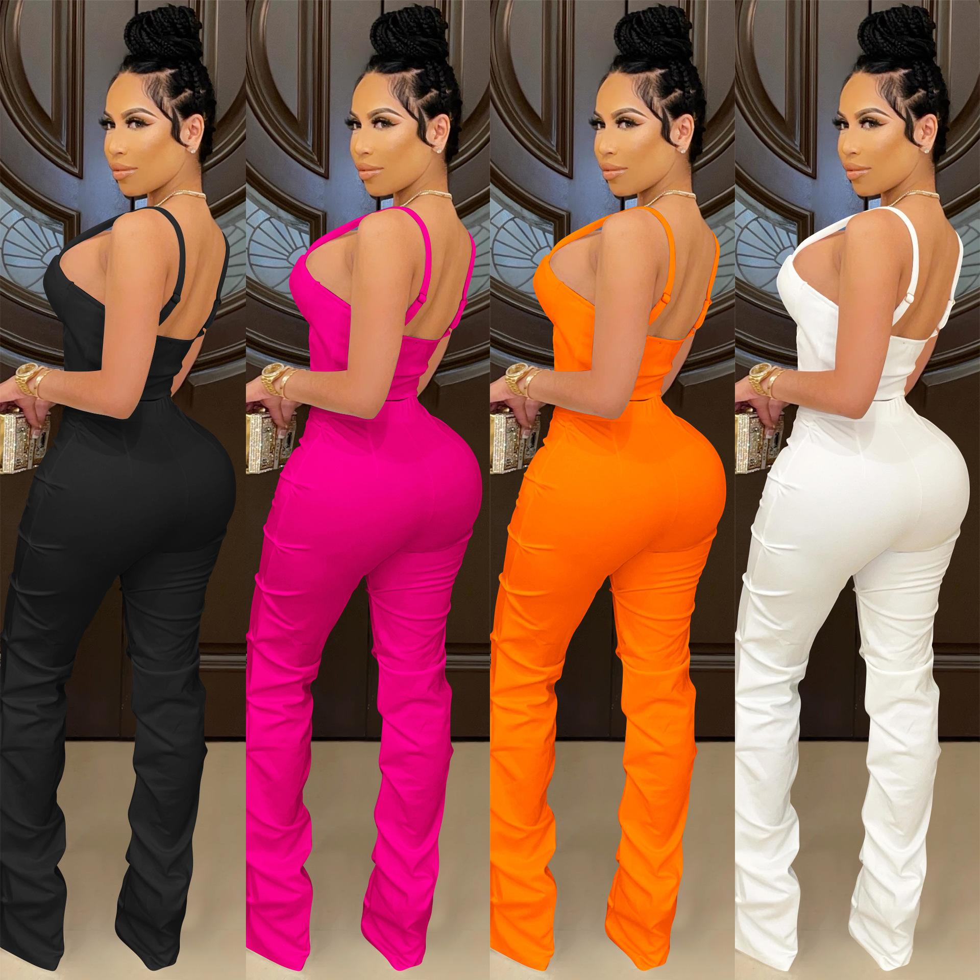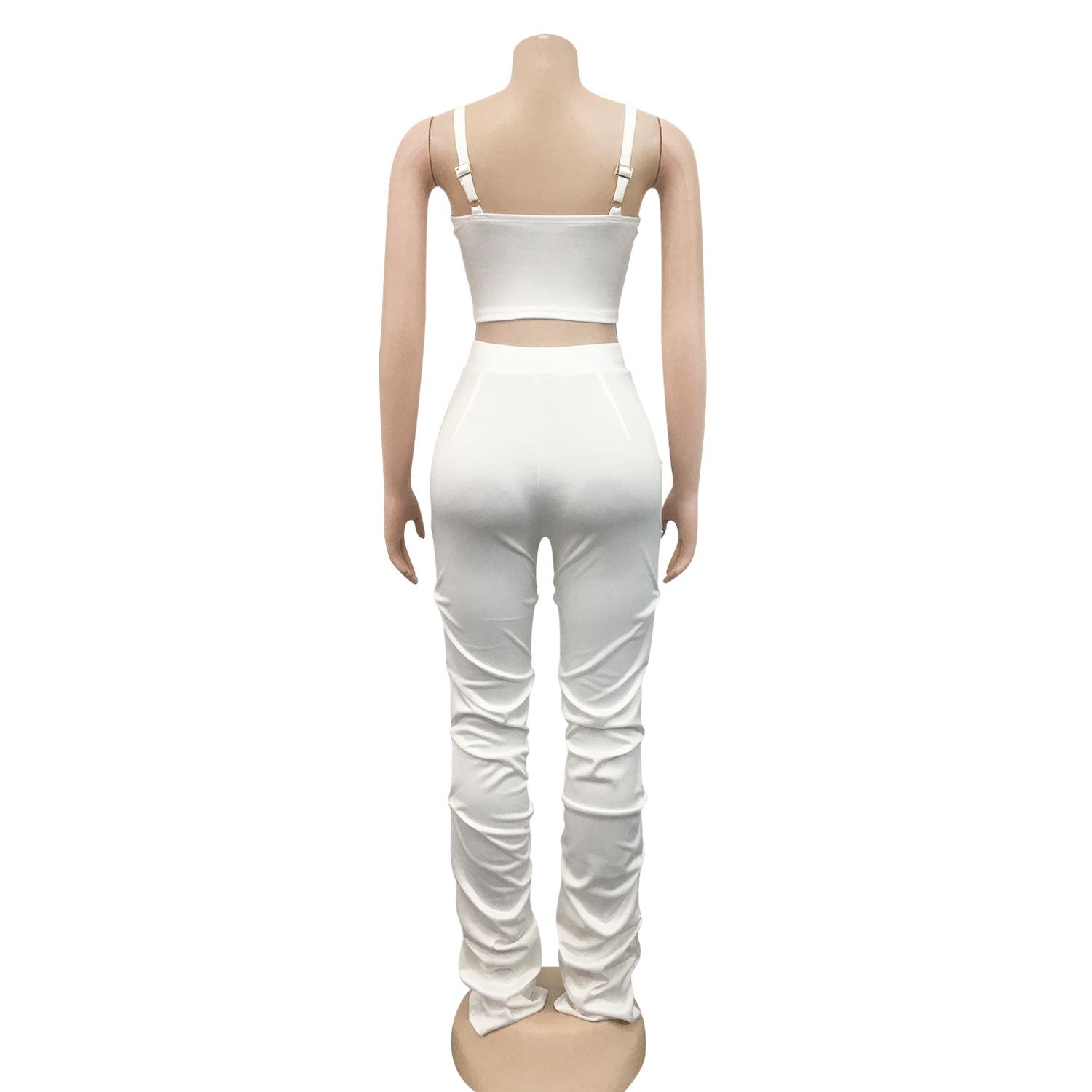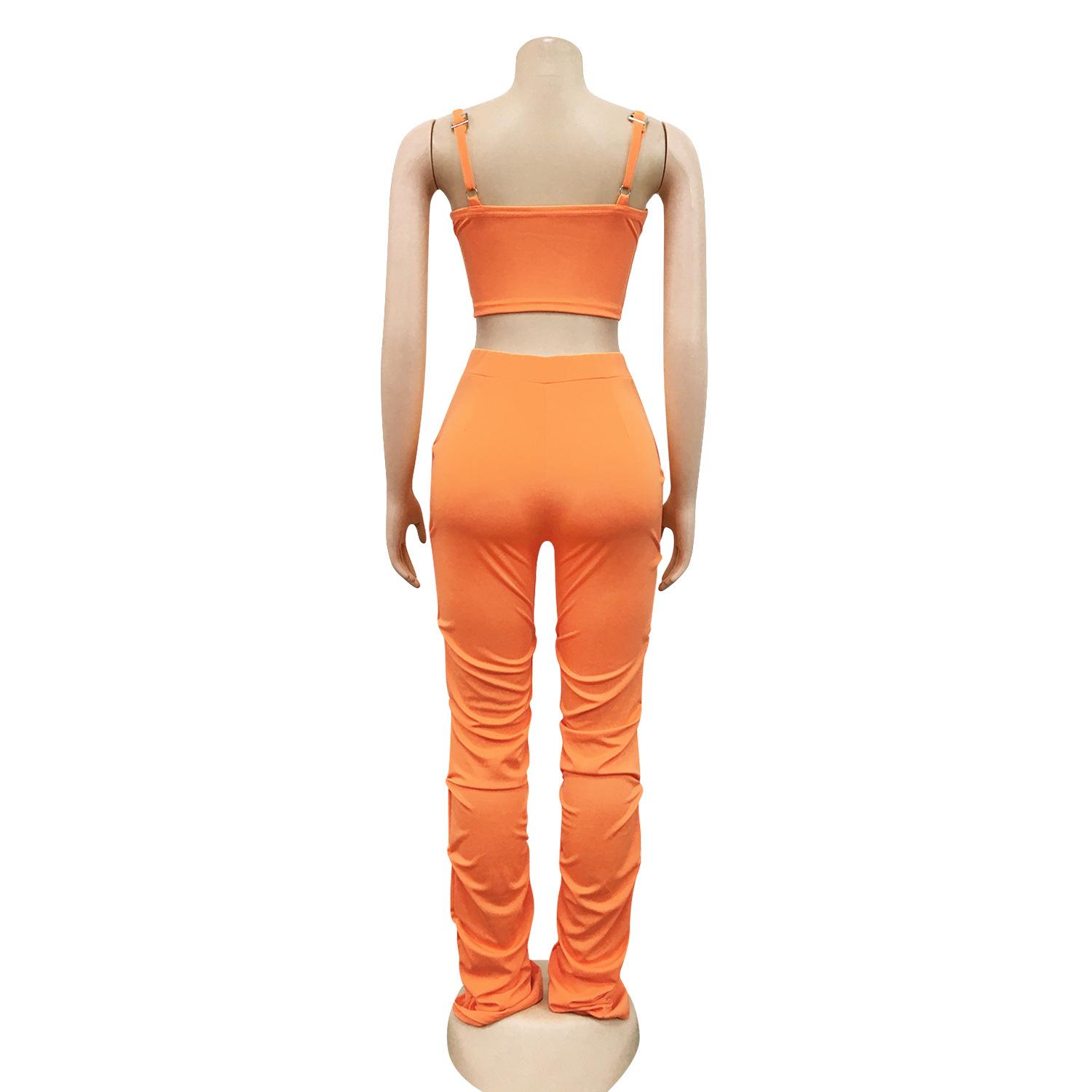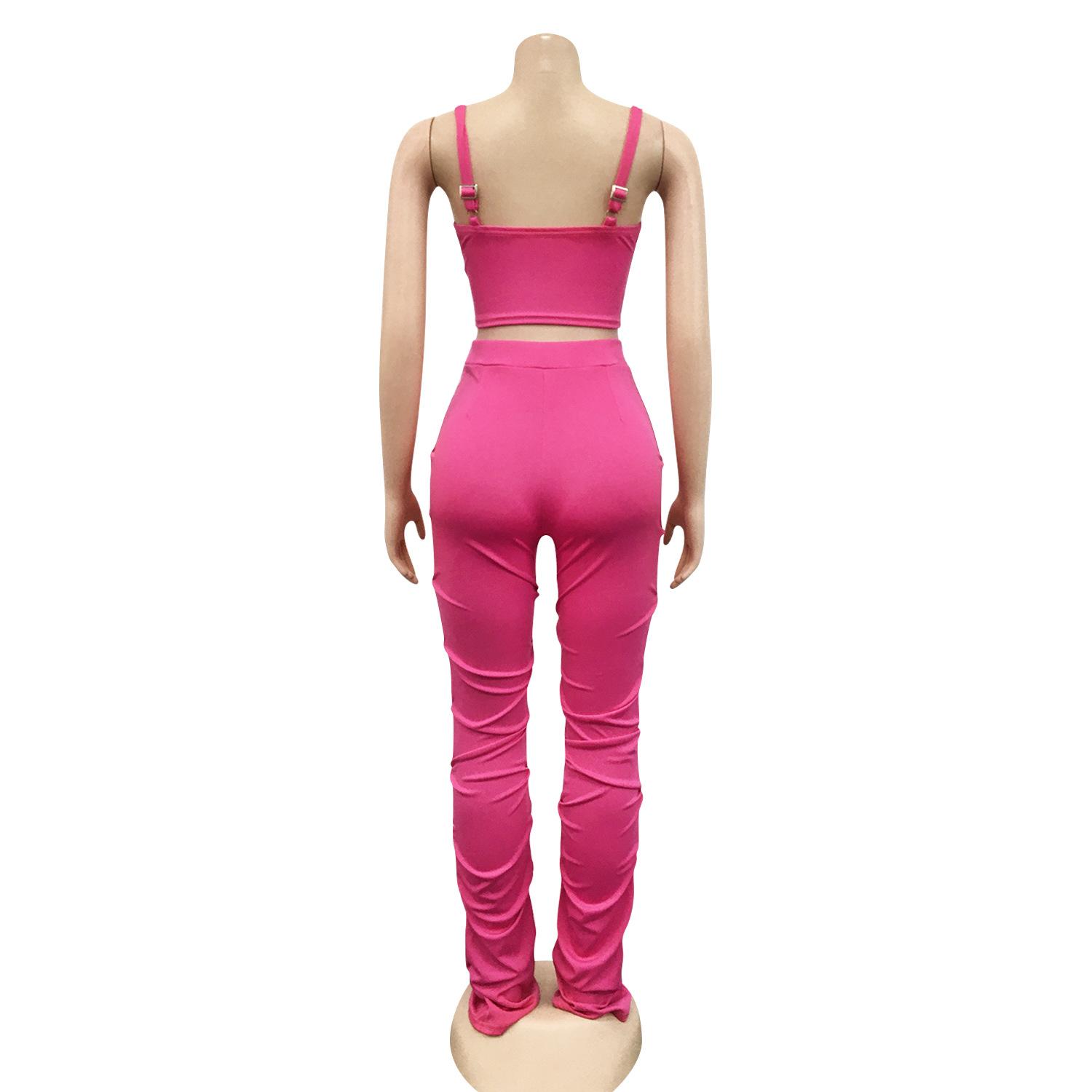 X5215 AliExpress Amazon Ebay Color Sólido Sexy para Mujer Sling Envoltura Pecho Cremallera Chaleco Pantalones Conjunto de Dos Piezas