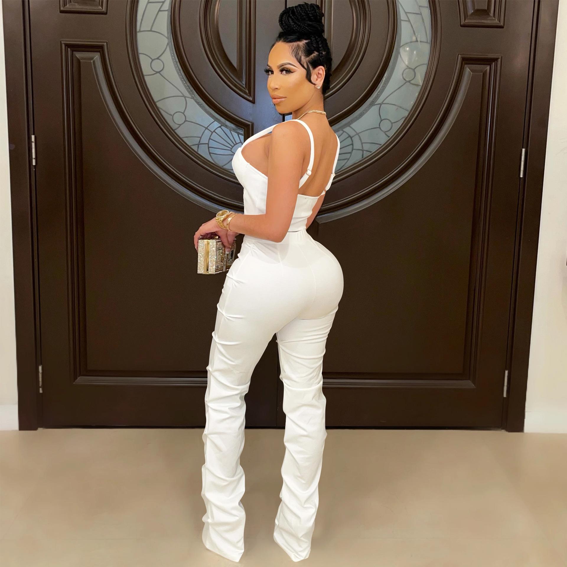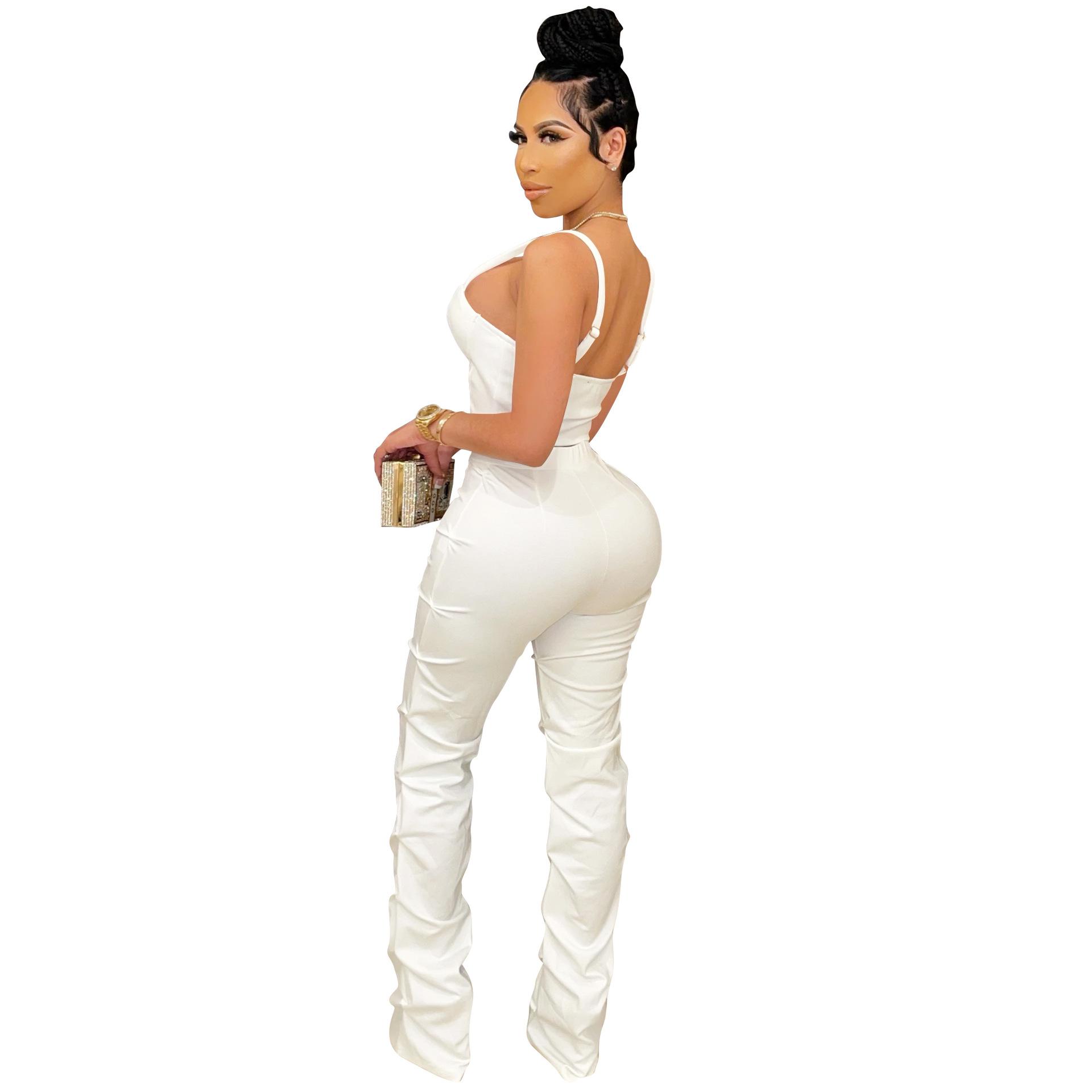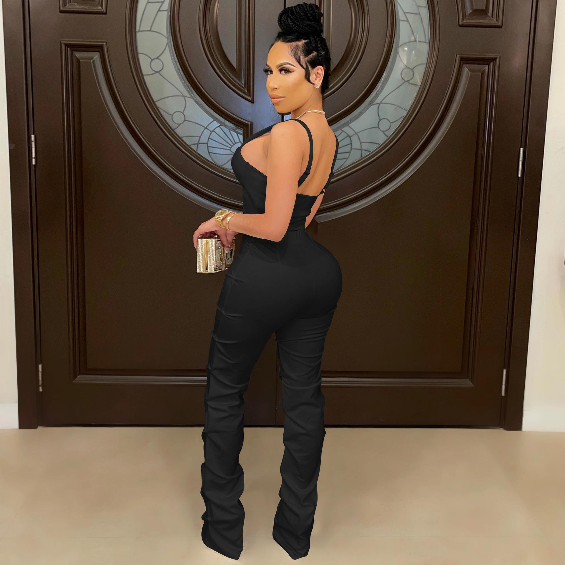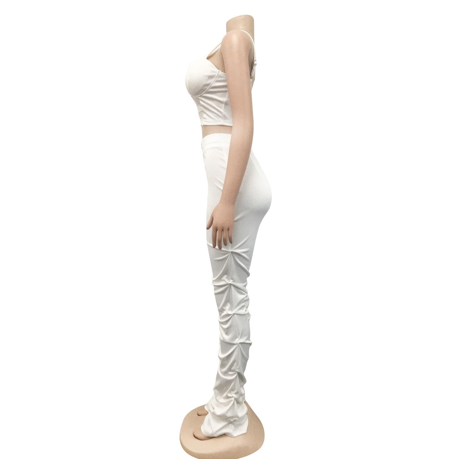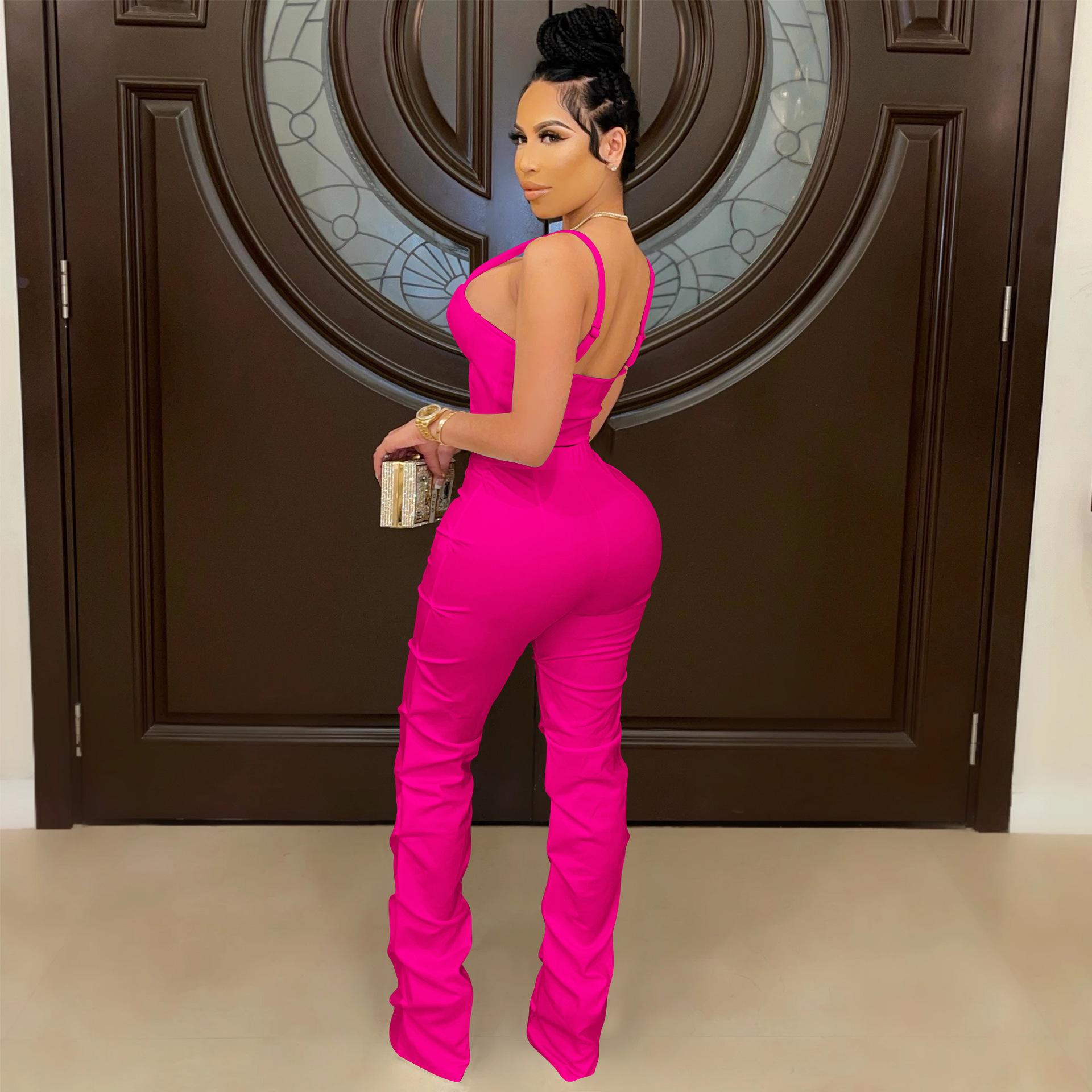 X5215 AliExpress Amazon Ebay Color Sólido Sexy para Mujer Sling Envoltura Pecho Cremallera Chaleco Pantalones Conjunto de Dos Piezas