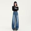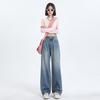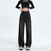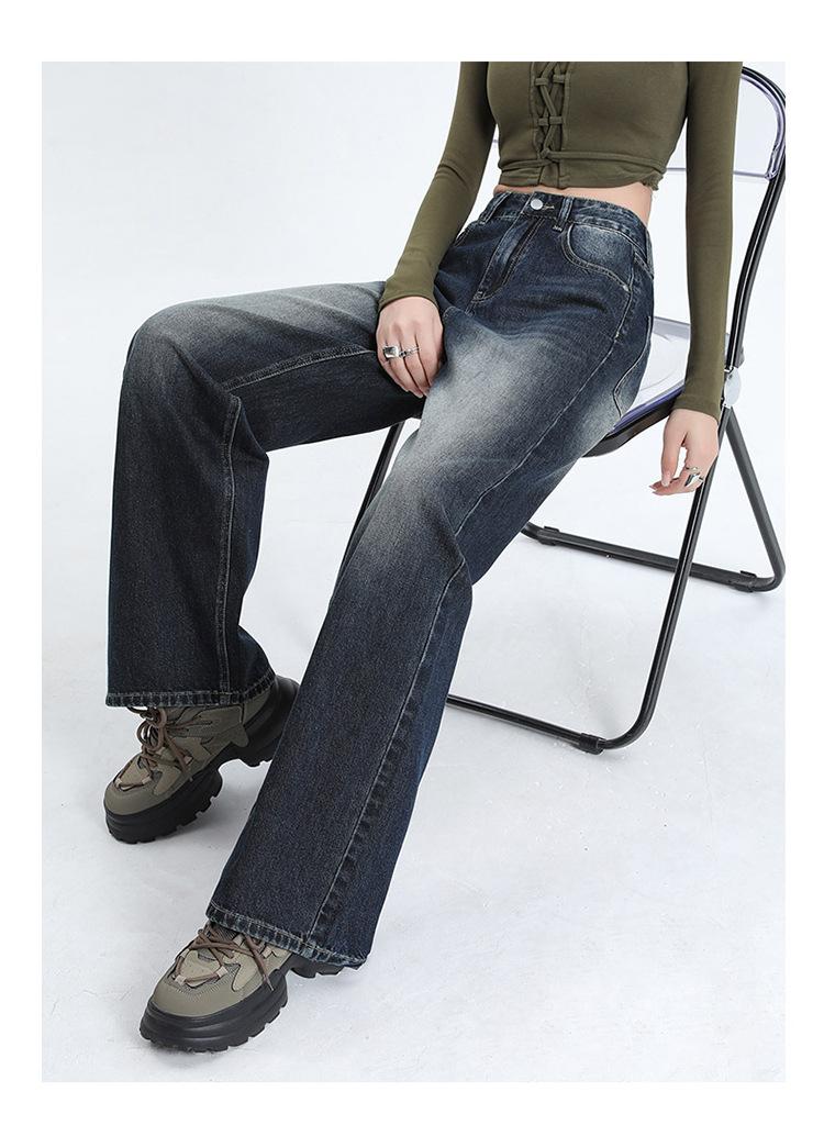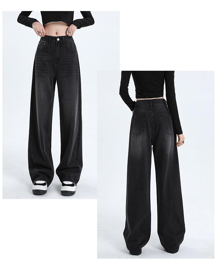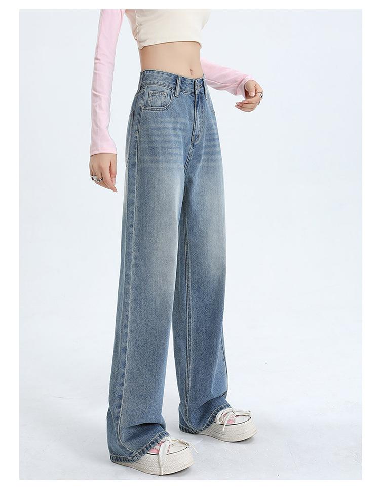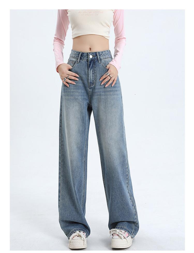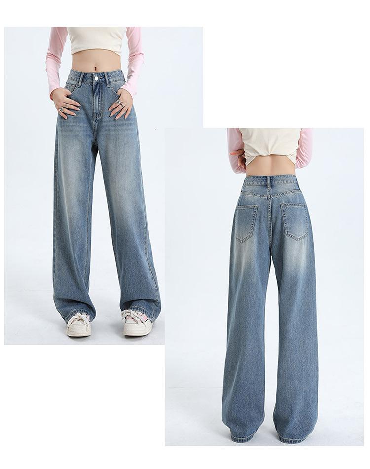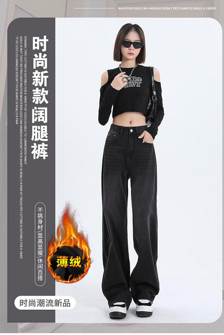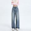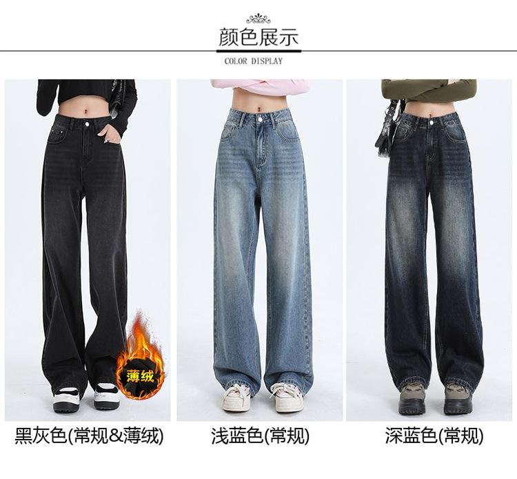 Pantalones vaqueros clásicos retro de pierna ancha estilo Hong Kong para mujer, de terciopelo fino, de cintura alta, holgados y rectos con diseño adelgazante.