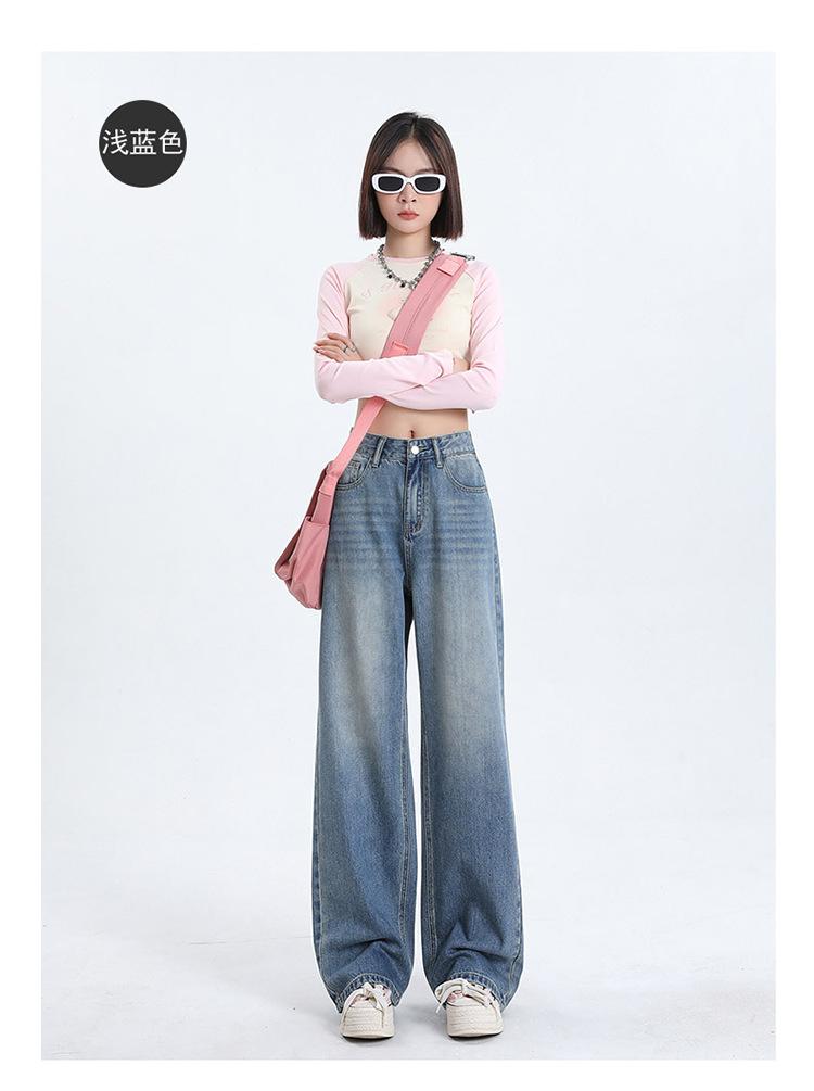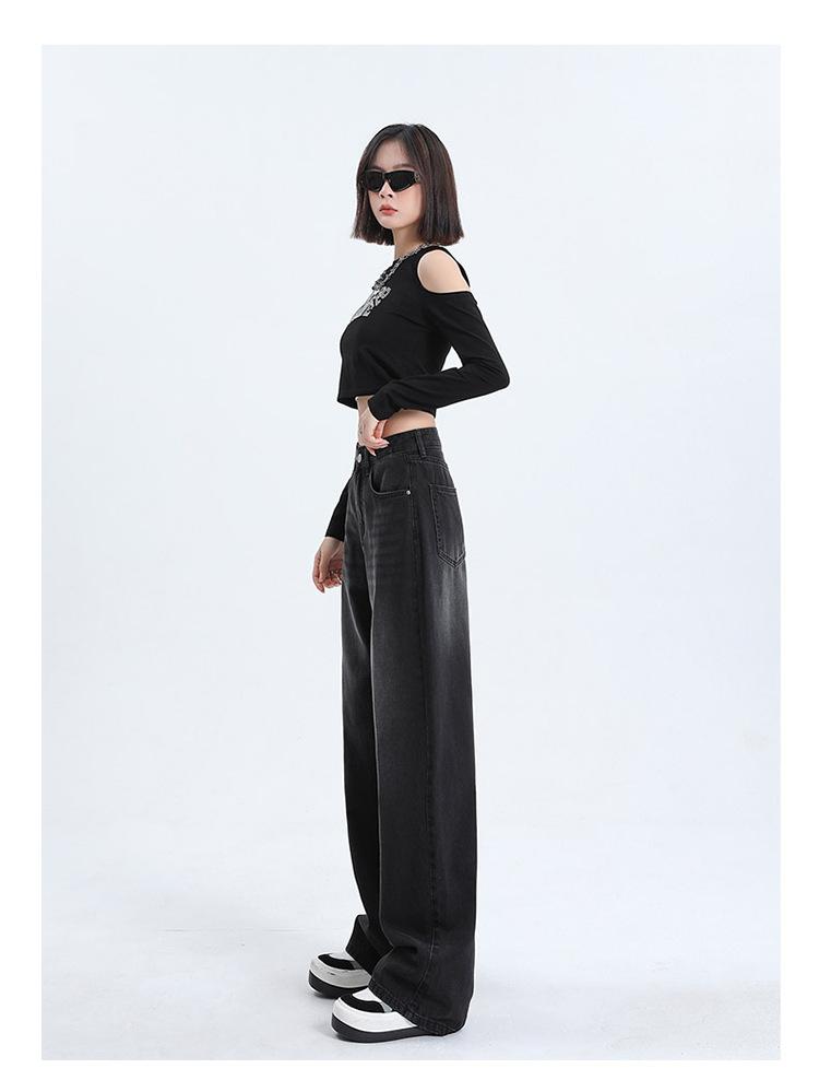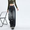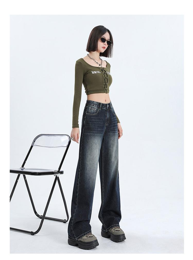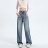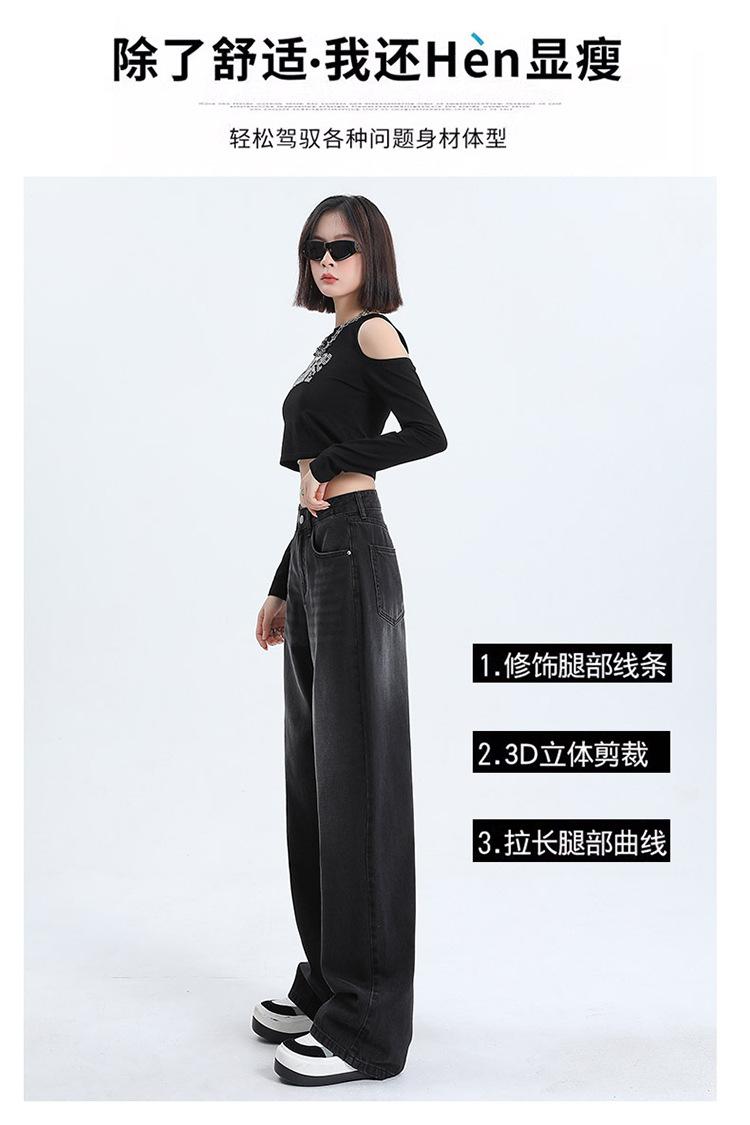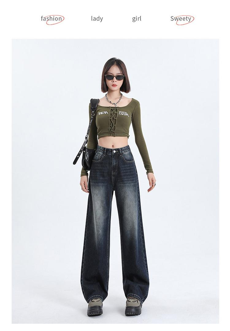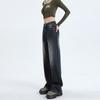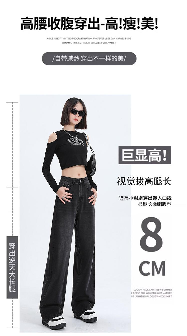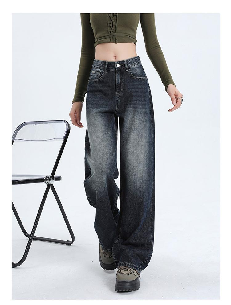 Pantalones vaqueros clásicos retro de pierna ancha estilo Hong Kong para mujer, de terciopelo fino, de cintura alta, holgados y rectos con diseño adelgazante.