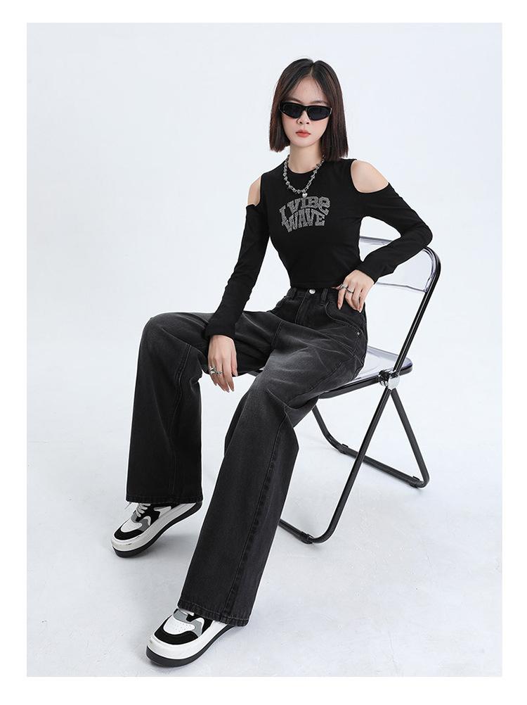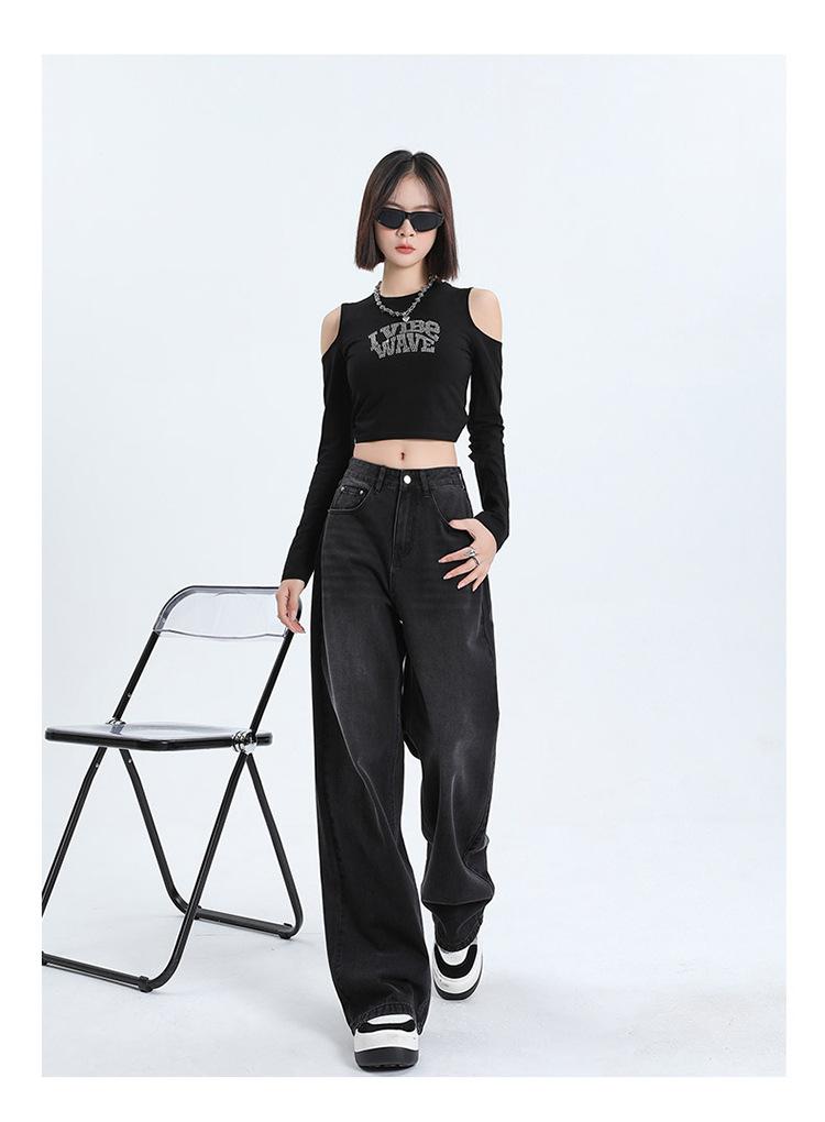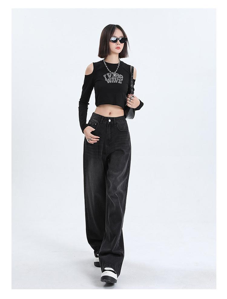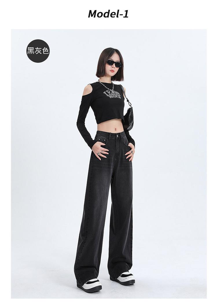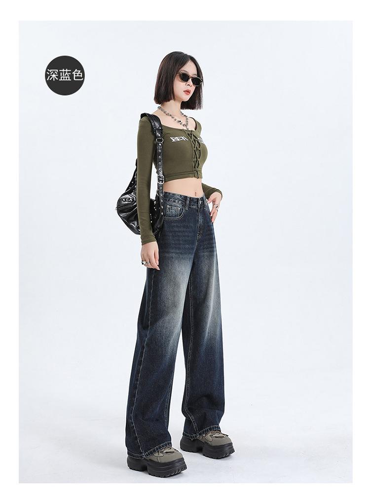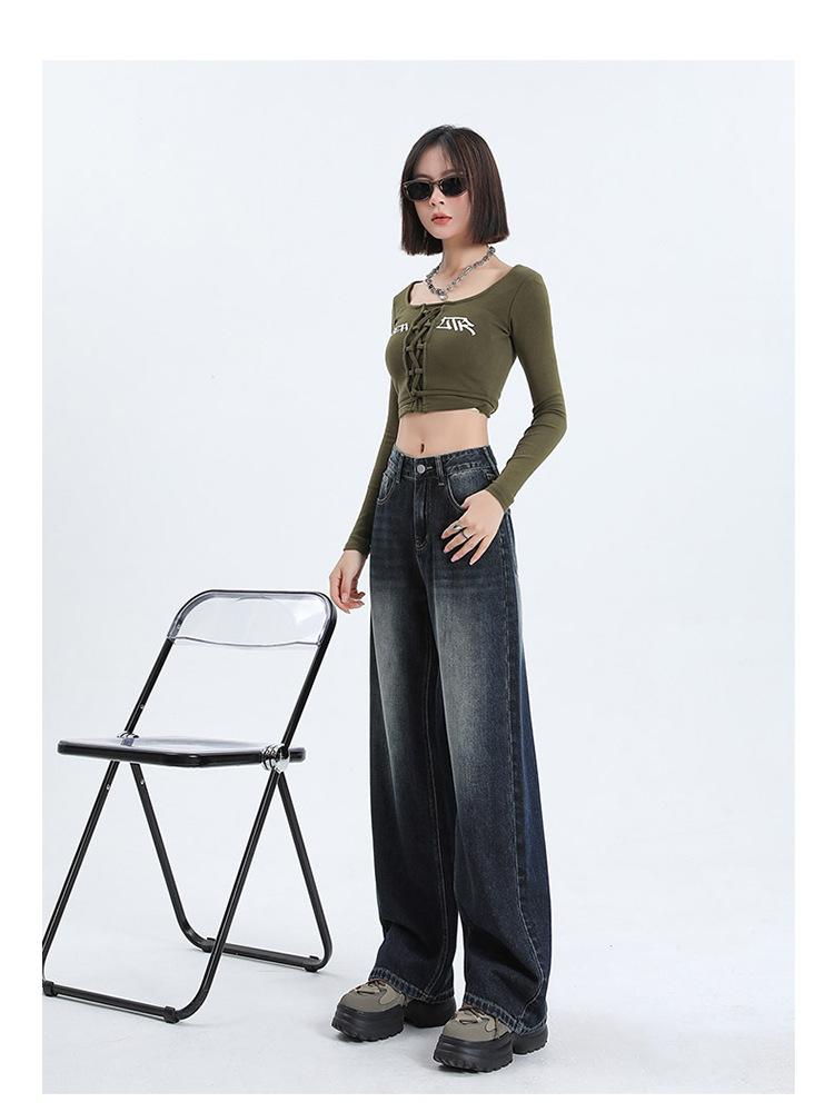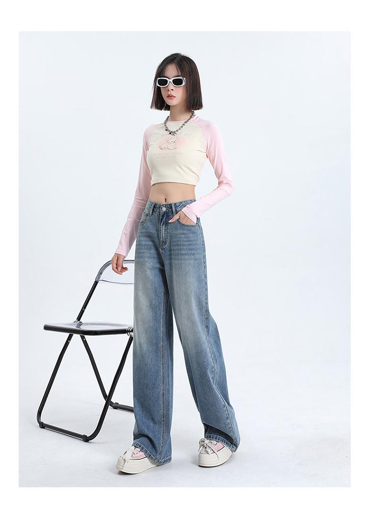 Pantalones vaqueros clásicos retro de pierna ancha estilo Hong Kong para mujer, de terciopelo fino, de cintura alta, holgados y rectos con diseño adelgazante.
