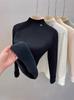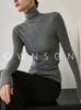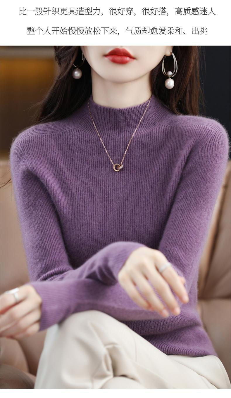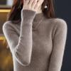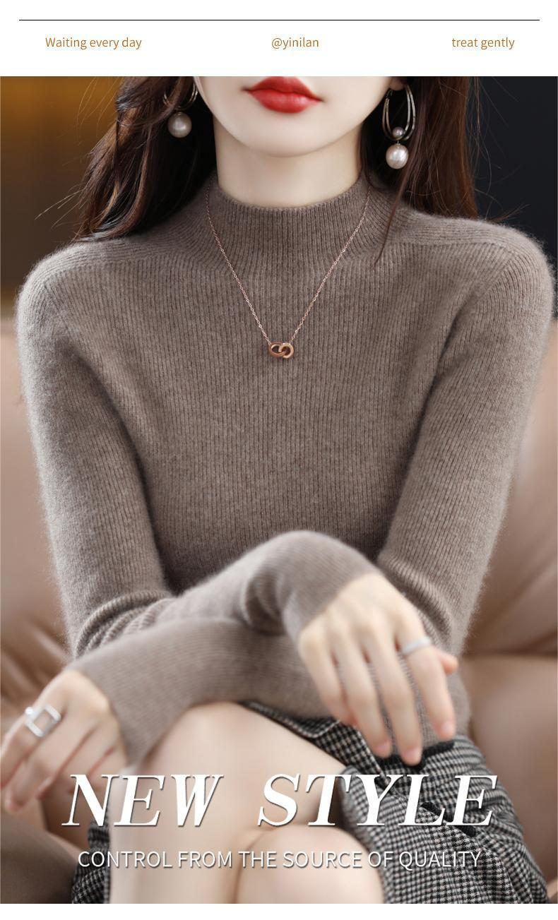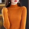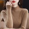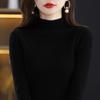 Suéter de capa base de cuello medio alto casual y elegante para mujer, adecuado para otoño e invierno, tejido de punto jersey 100% lana pura