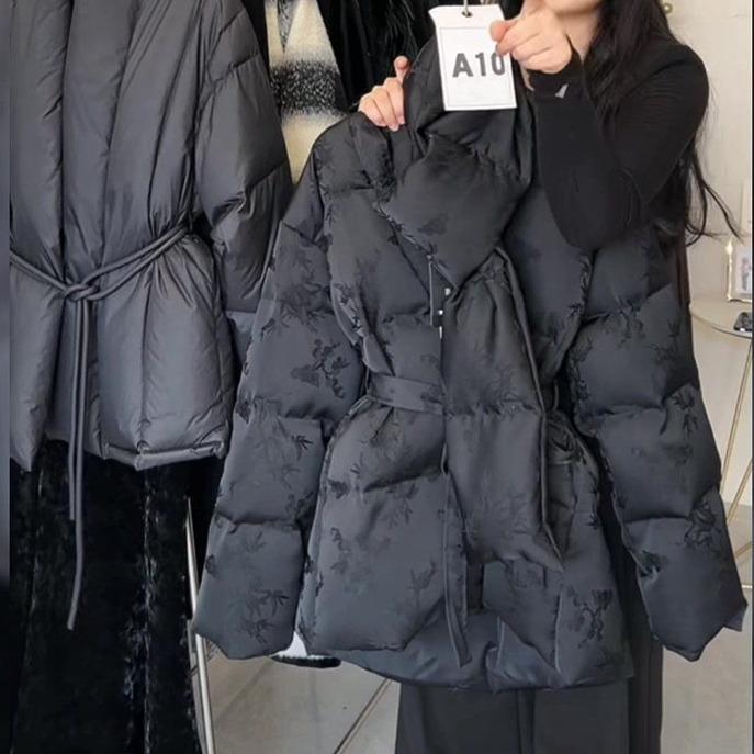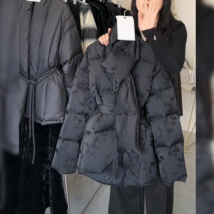 Nueva chaqueta acolchada de algodón negra de estilo chino de este año, popular, de alta gama, de lujo, estilo hermana real, elegante, ajustada a la cintura, chaqueta acolchada de algodón gruesa de invierno