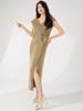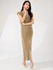 Falda Miyake Vestido de Mujer Verano Falda Larga Falda de Cadera de Alto Nivel Adelgazante de Cintura Elegante Vestido Metálico con Abertura