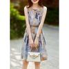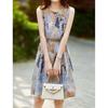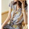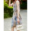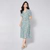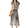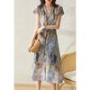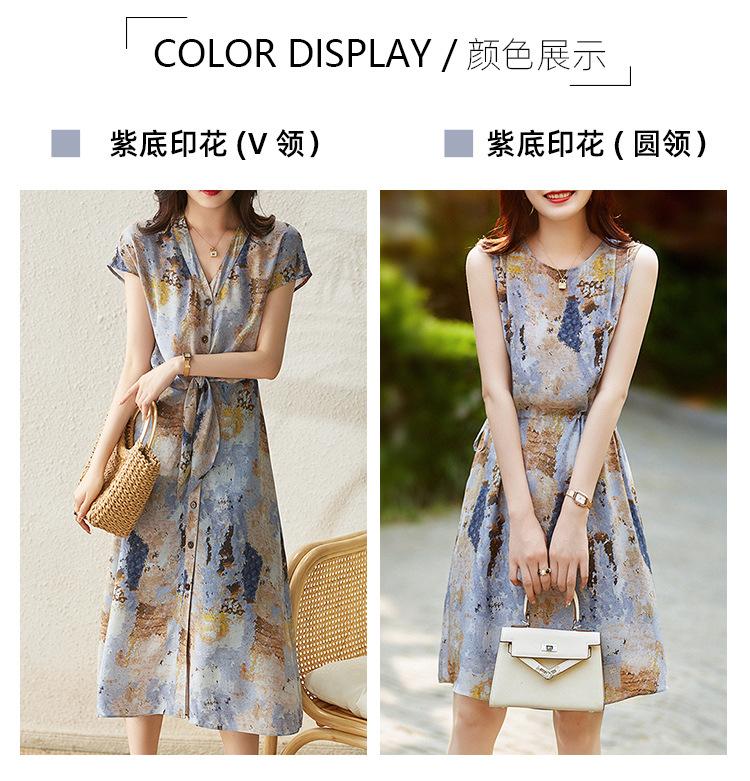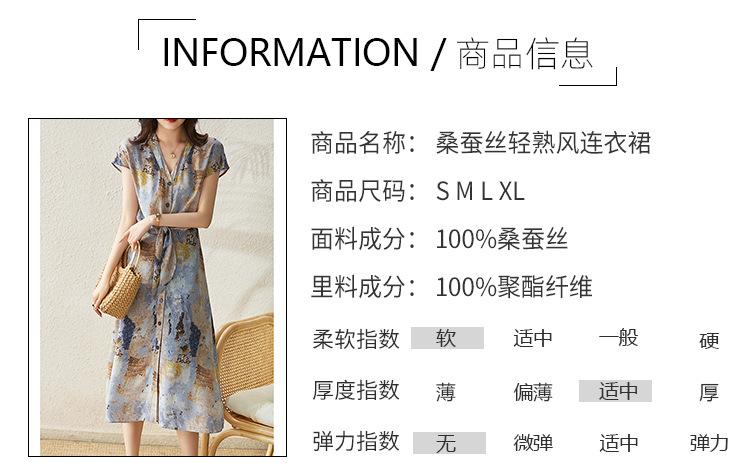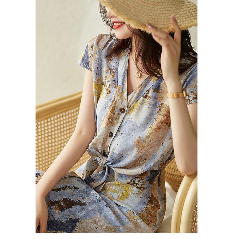 Falda de Seda Verano 2025 Nueva Mujer Cuello en V Seda de Morera Manga Corta Largo Medio Vestido Floral Elegante