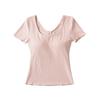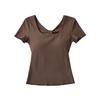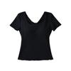 Camiseta de manga corta con lazo, espalda descubierta y sexy para chica, top ajustado de verano con cuello en U y almohadilla para el pecho para mujer