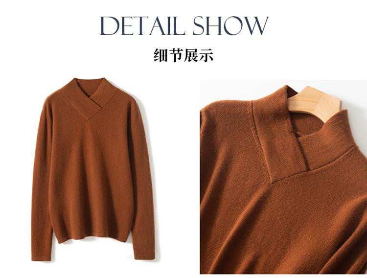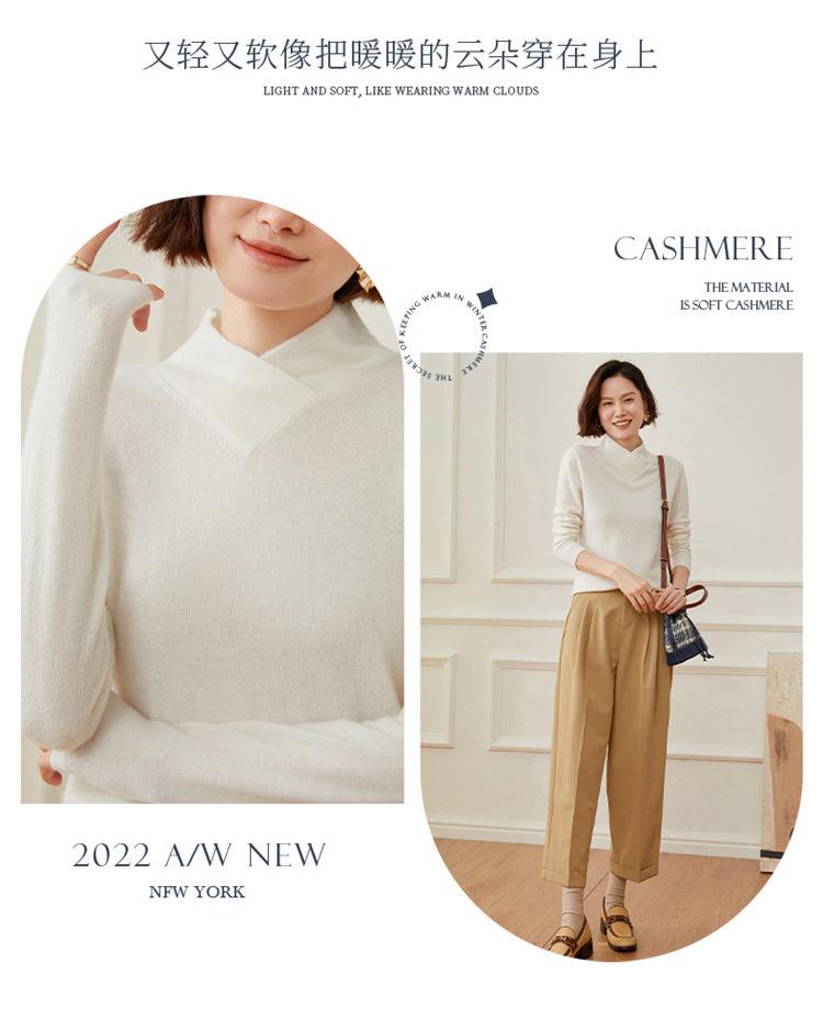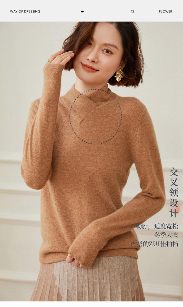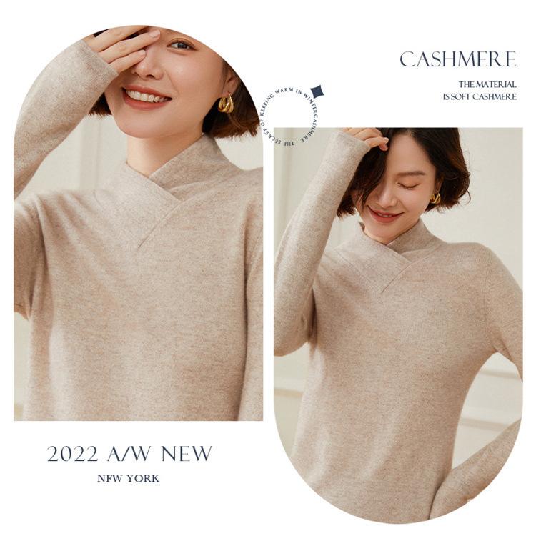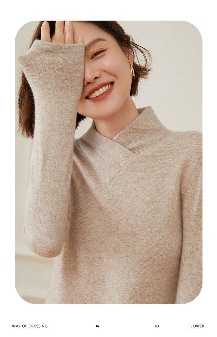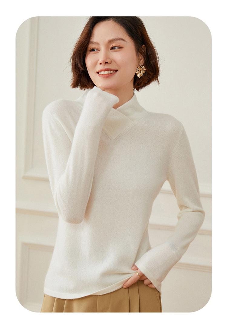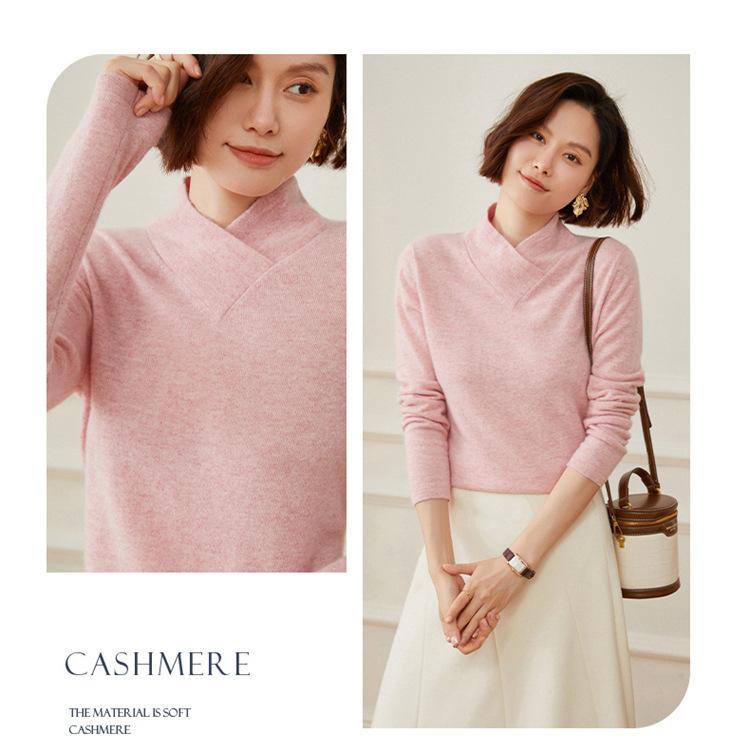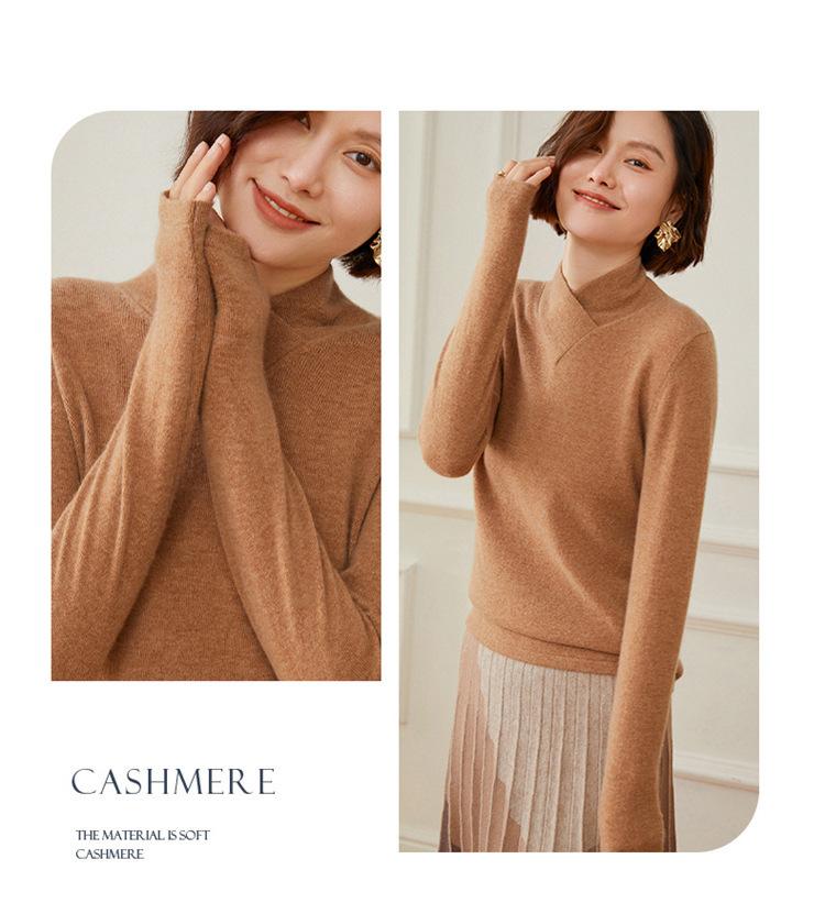 Nuevo suéter cruzado de otoño con cuello medio alto, sencillo de color sólido, tipo jersey, corte ajustado, suéter de cachemira para mujer