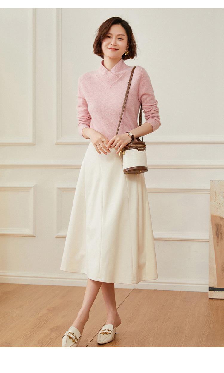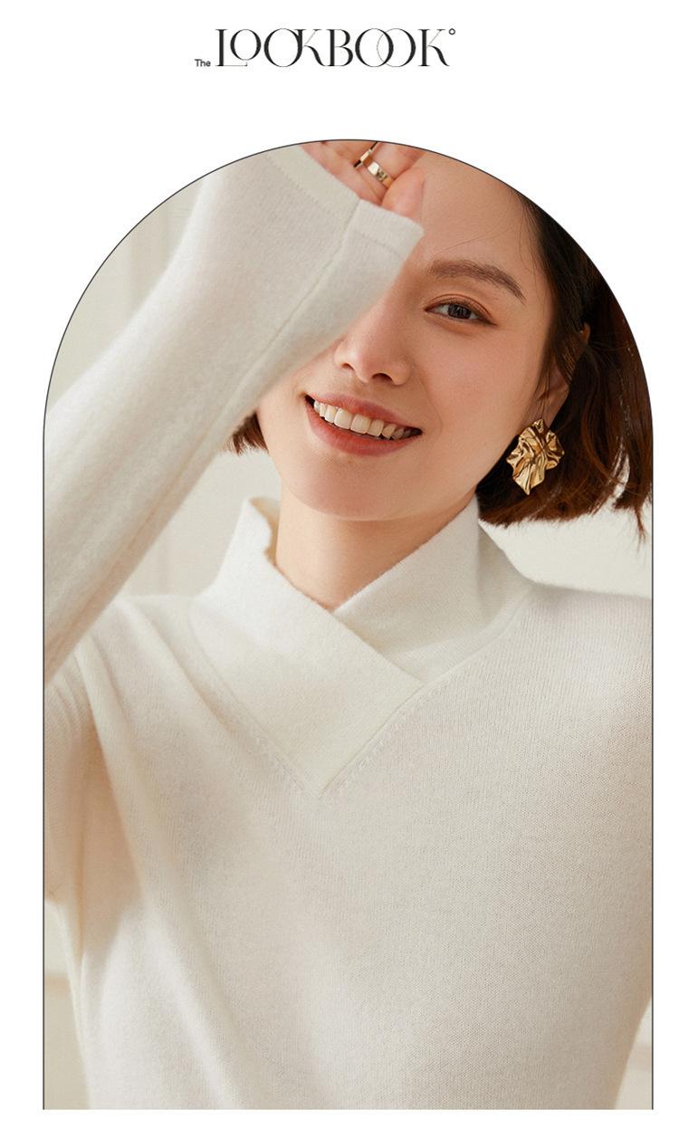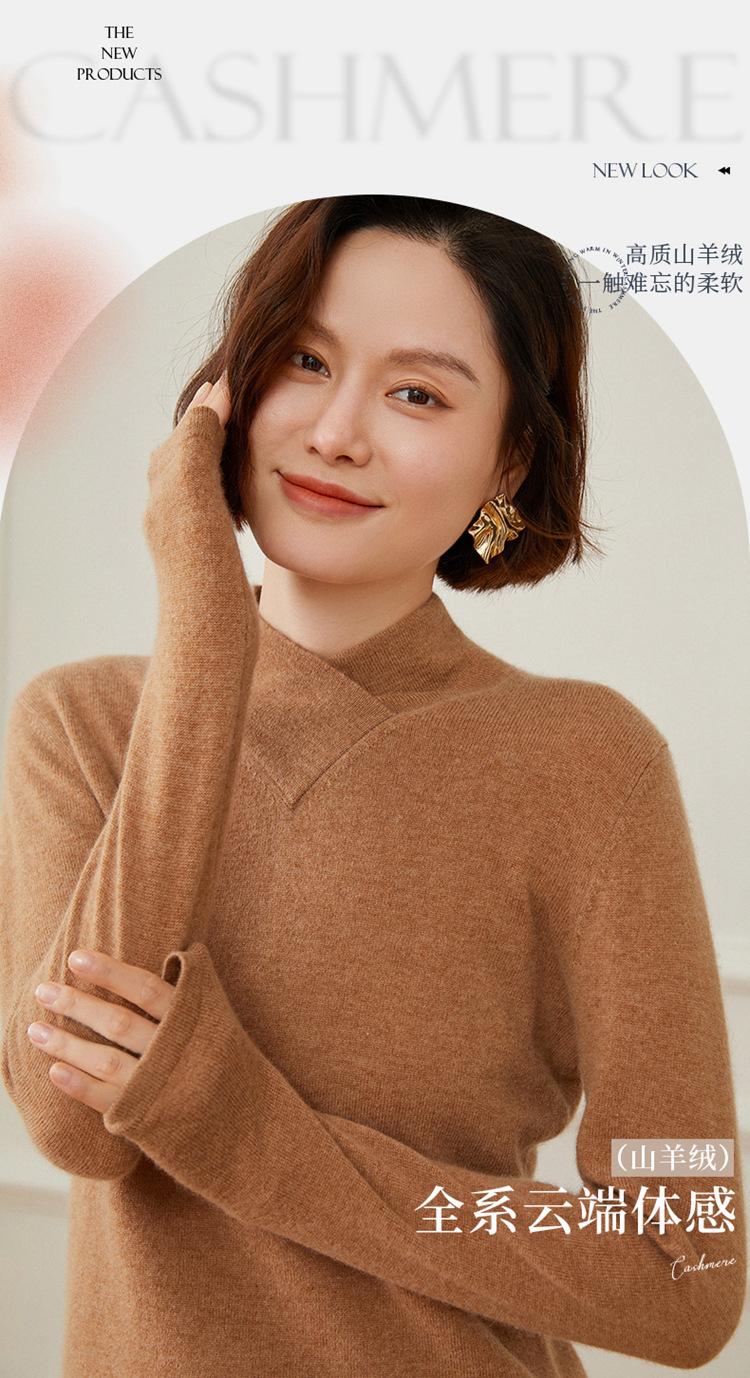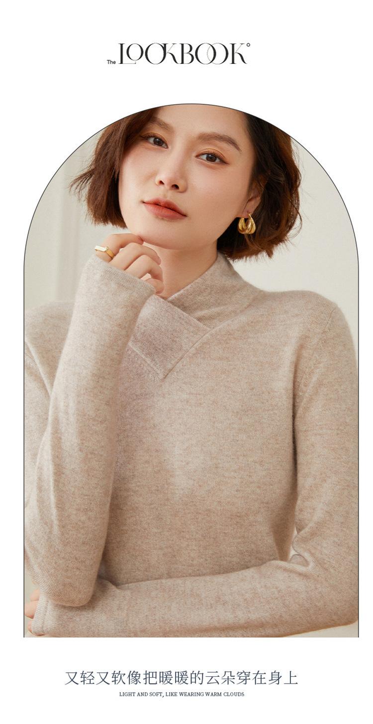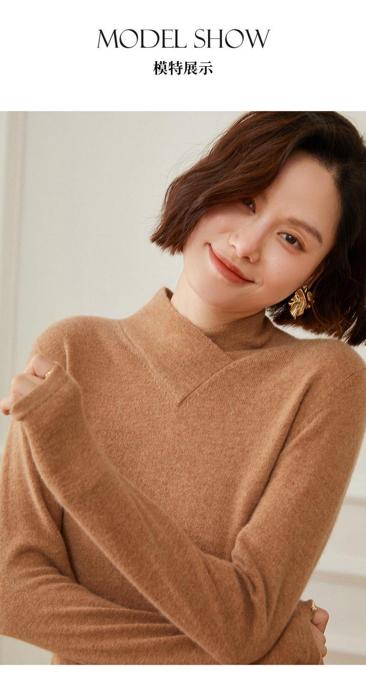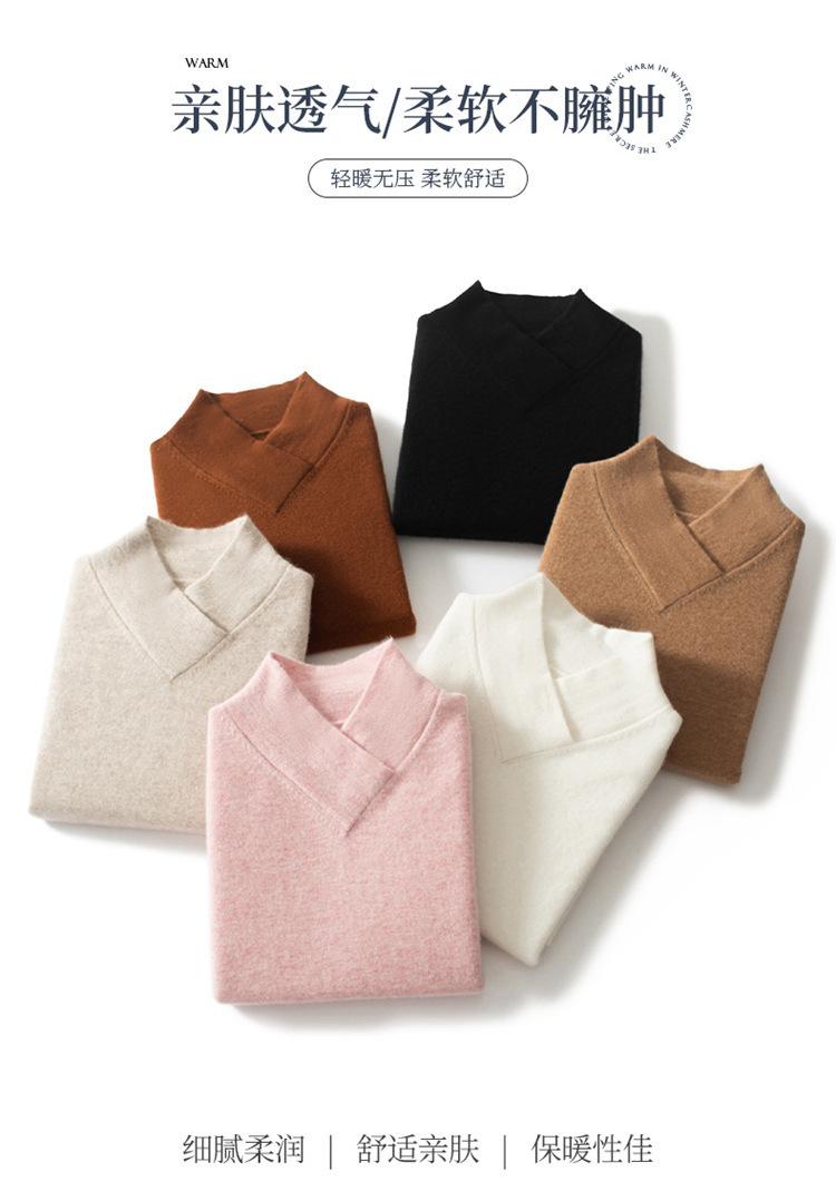 Nuevo suéter cruzado de otoño con cuello medio alto, sencillo de color sólido, tipo jersey, corte ajustado, suéter de cachemira para mujer