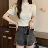 Cuello Medio Alto Otoño Nuevo Estilo Simple Color Puro Suéter Tejido Ajustado Cachemira Tejido para Mujer