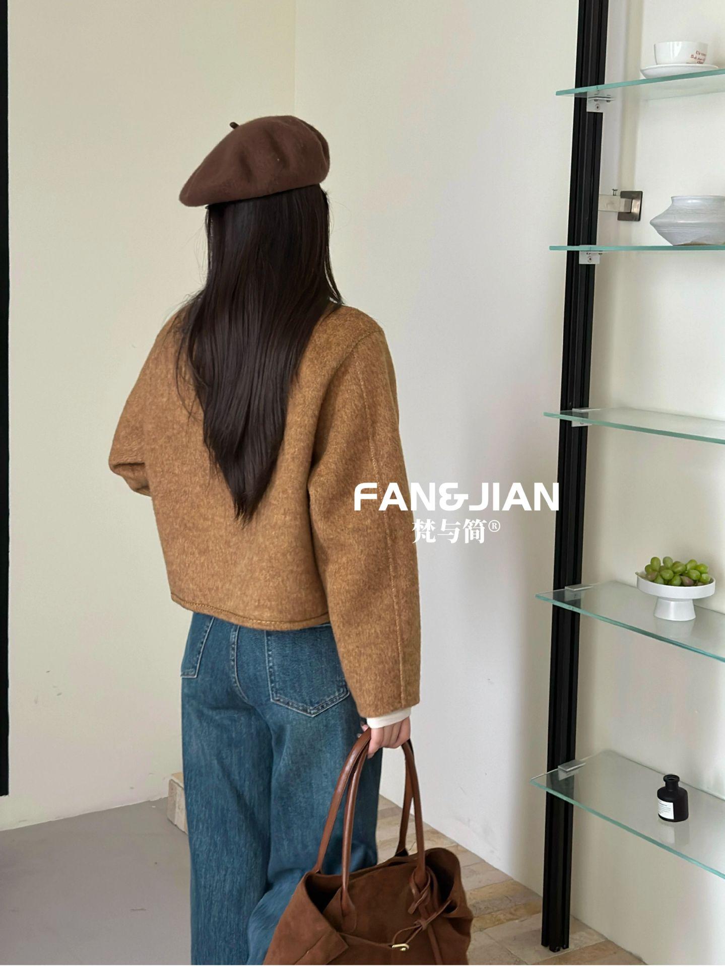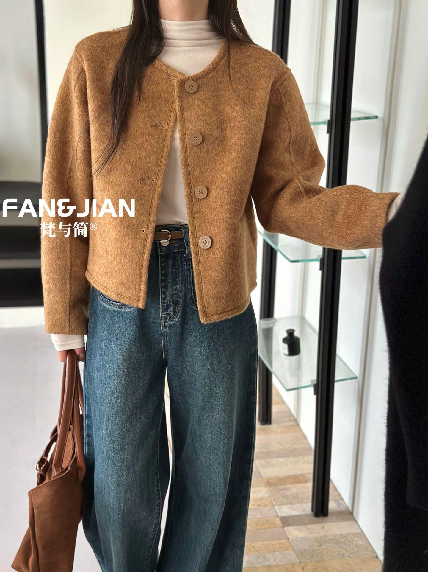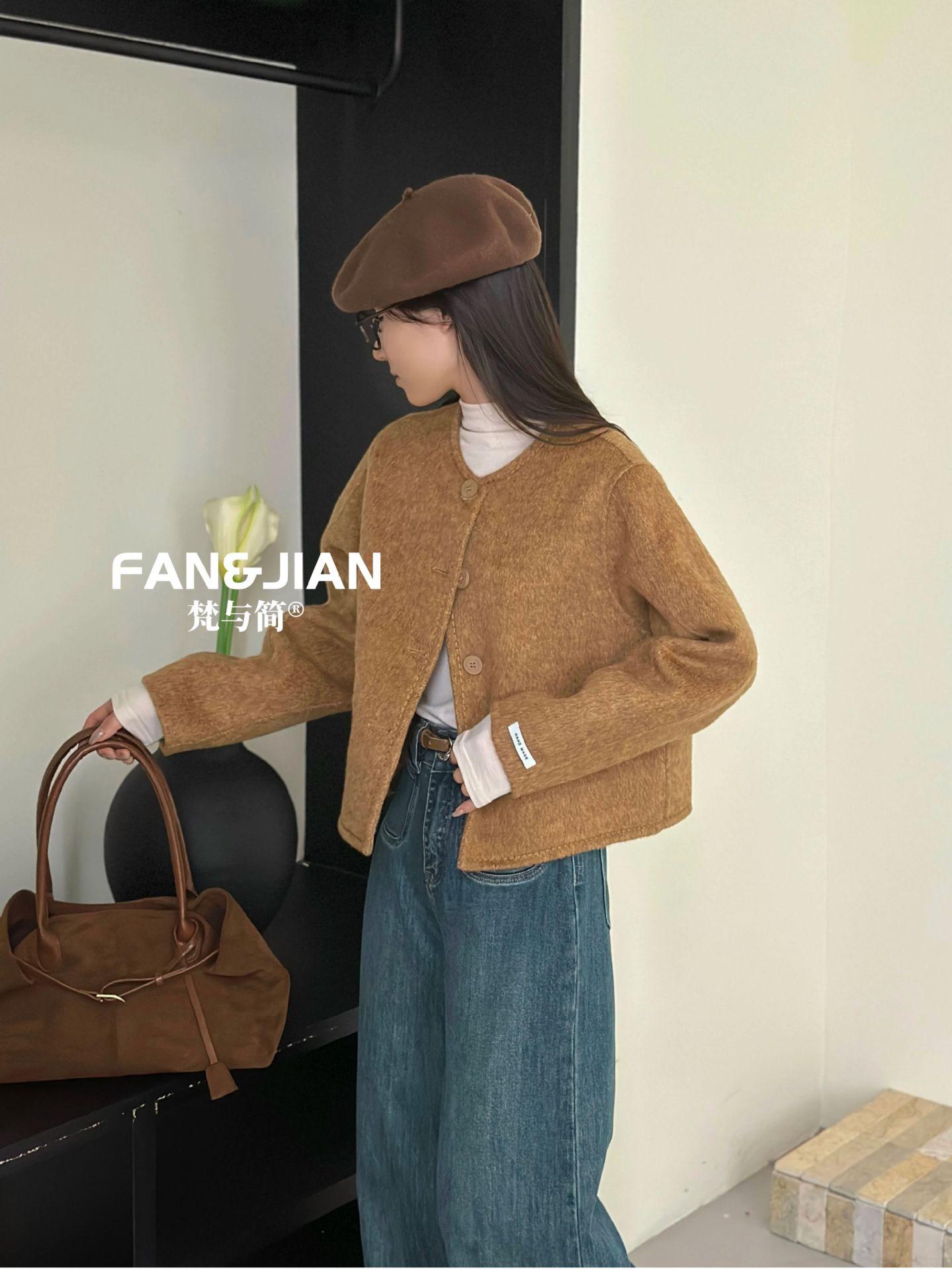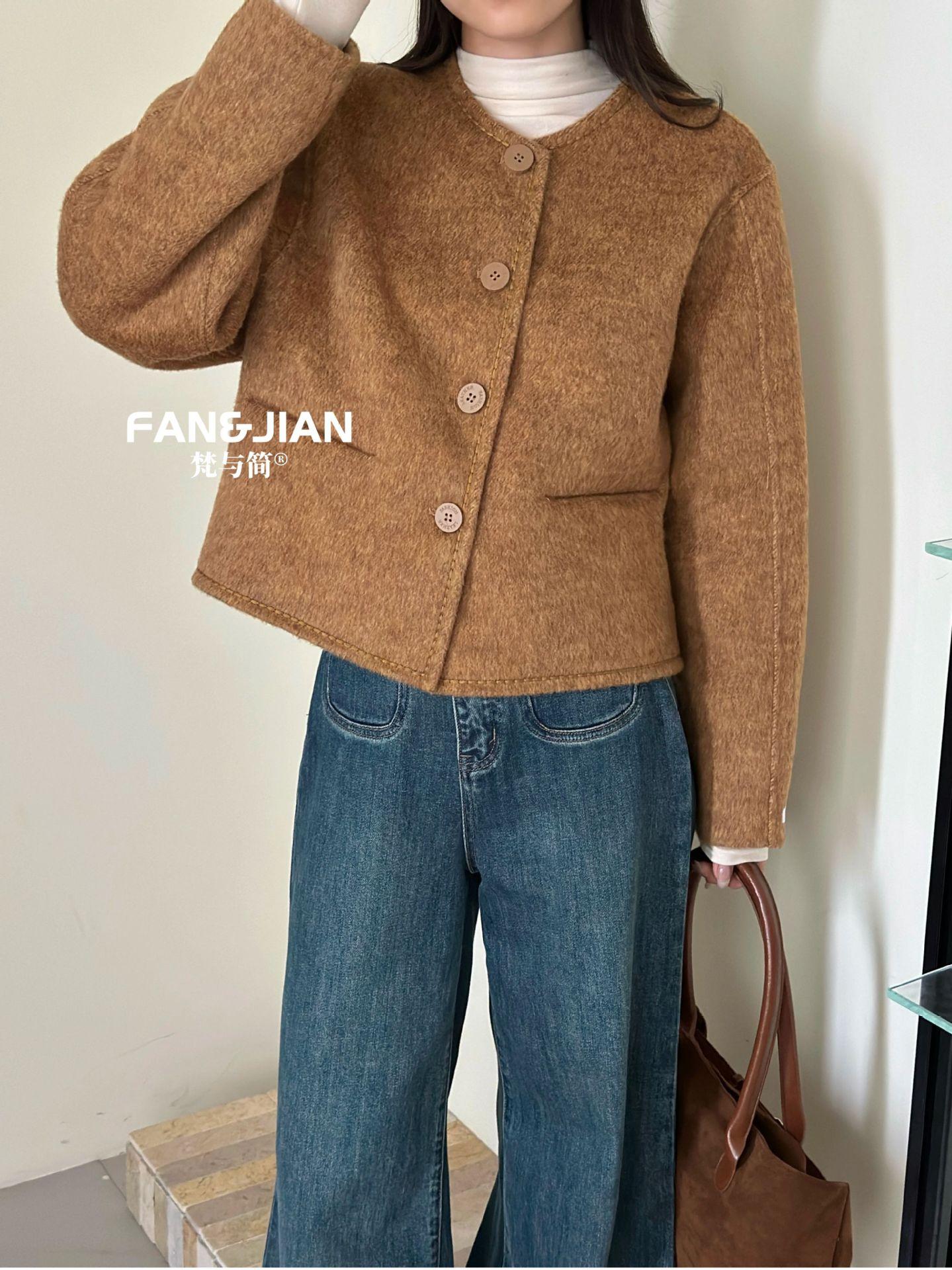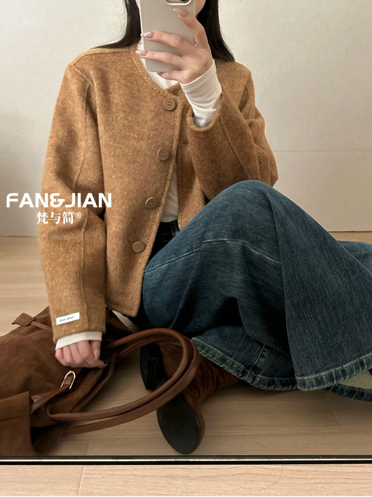 Abrigo de lana de doble cara estilo Chanel vintage Dopamine, corto, elegante y a la moda, pequeño y combinable para mujer.