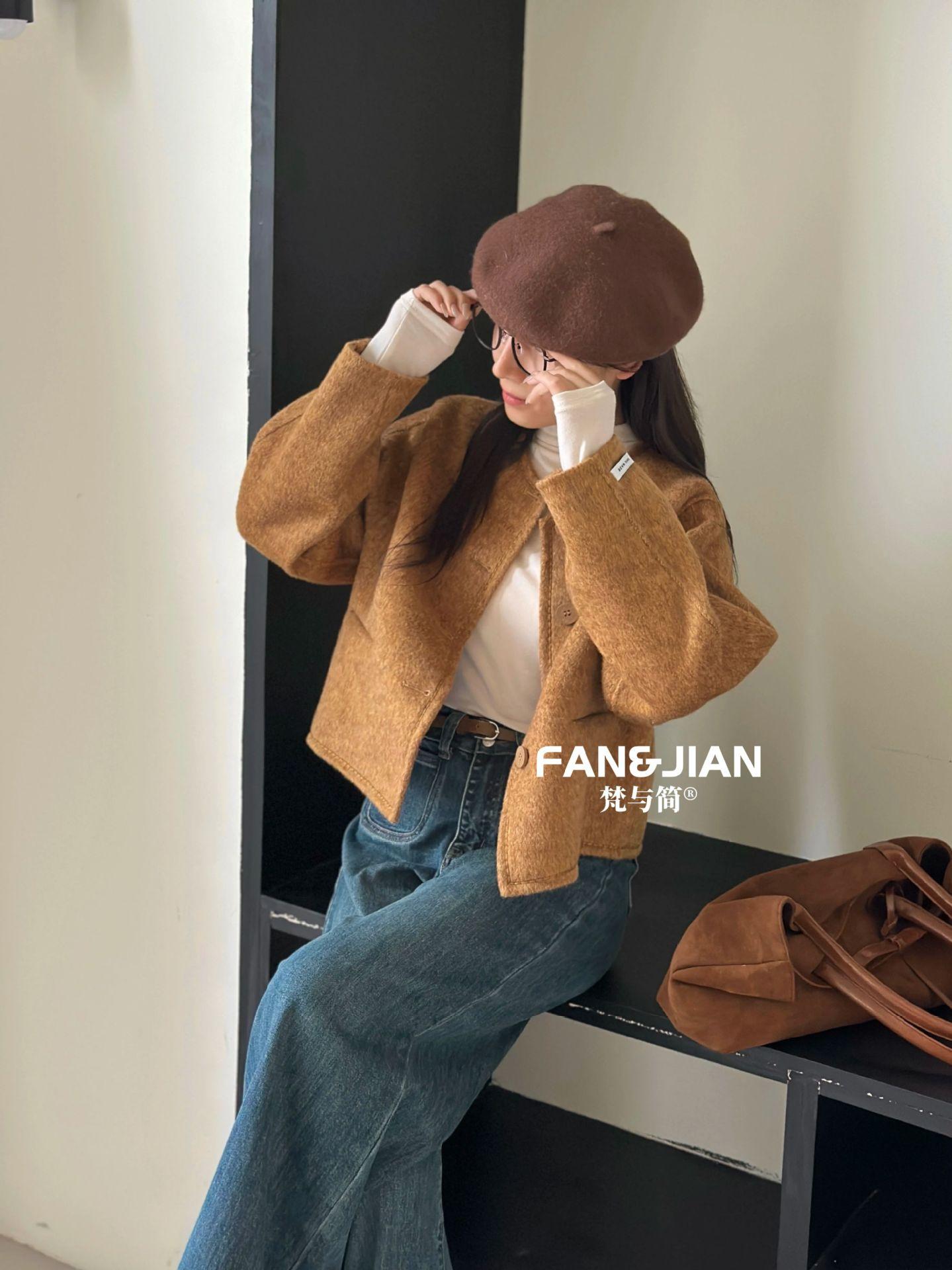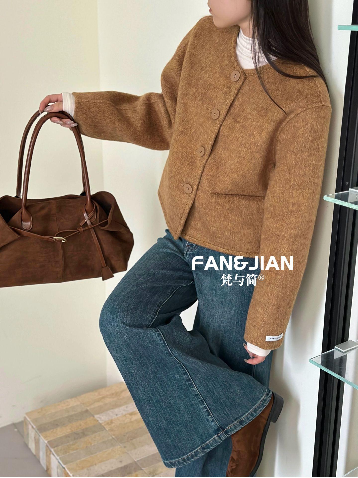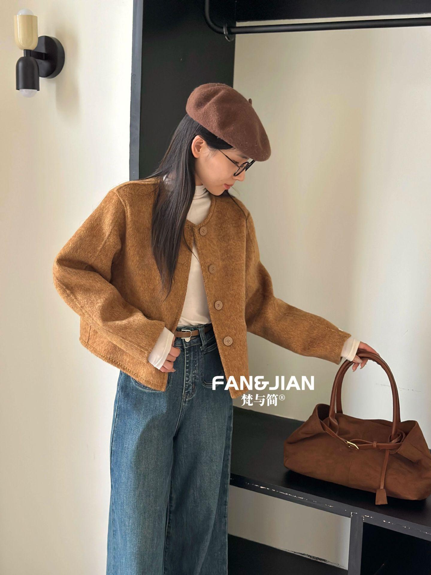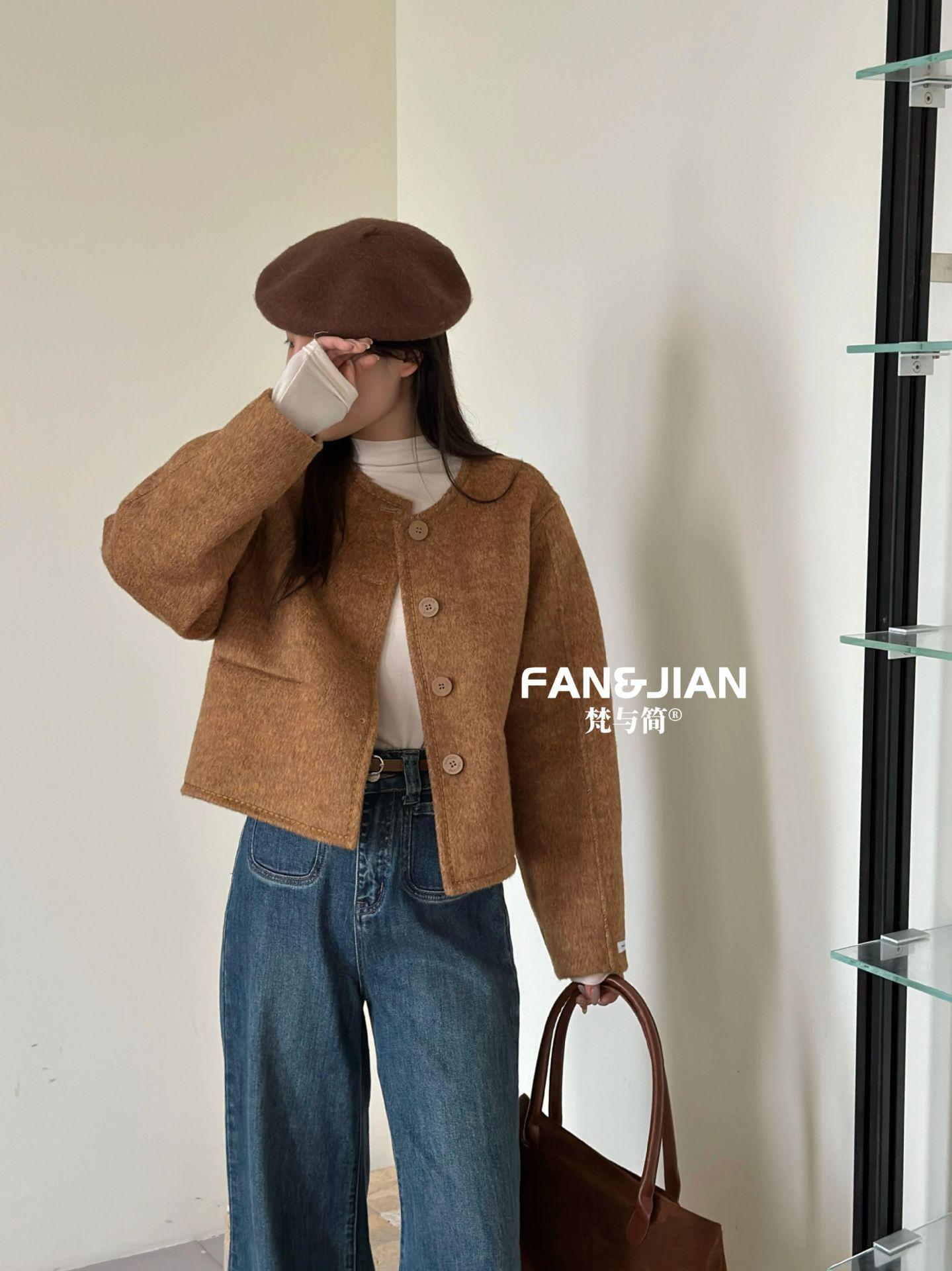 Abrigo de lana de doble cara estilo Chanel vintage Dopamine, corto, elegante y a la moda, pequeño y combinable para mujer.