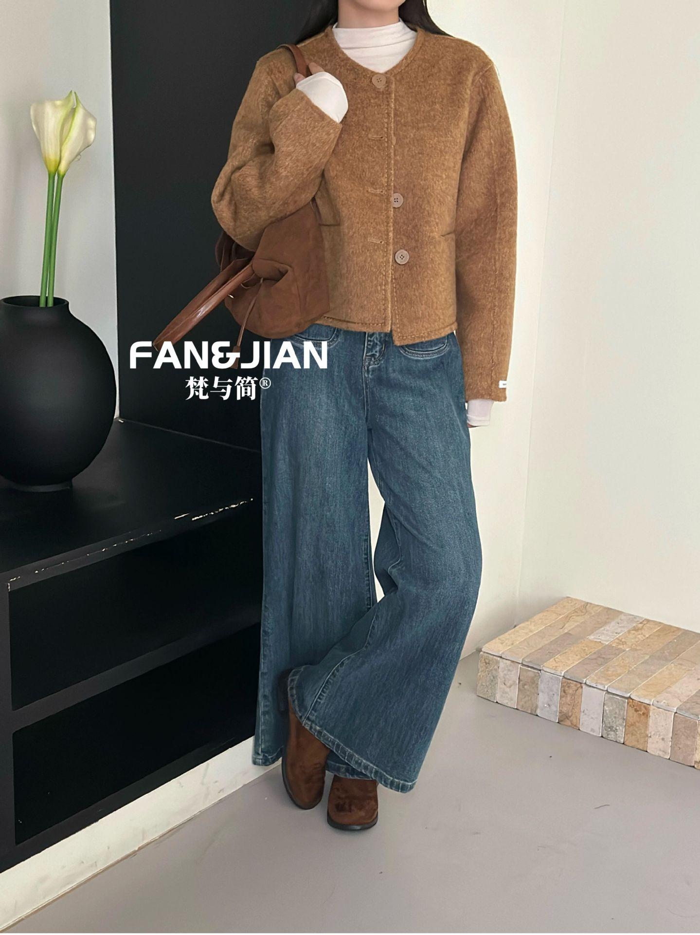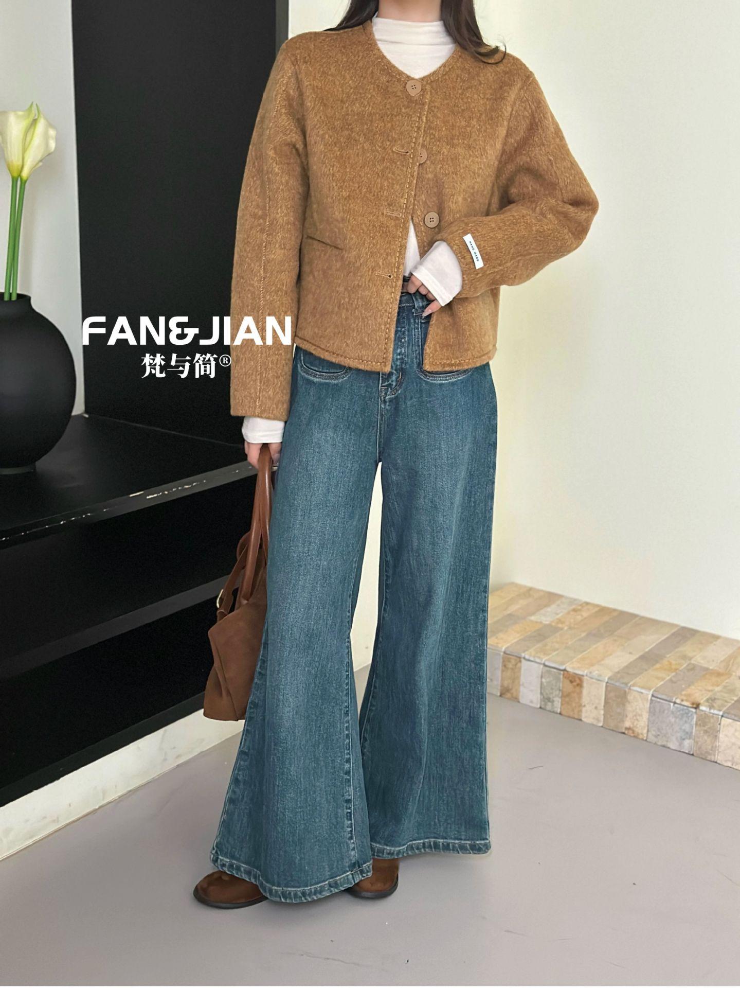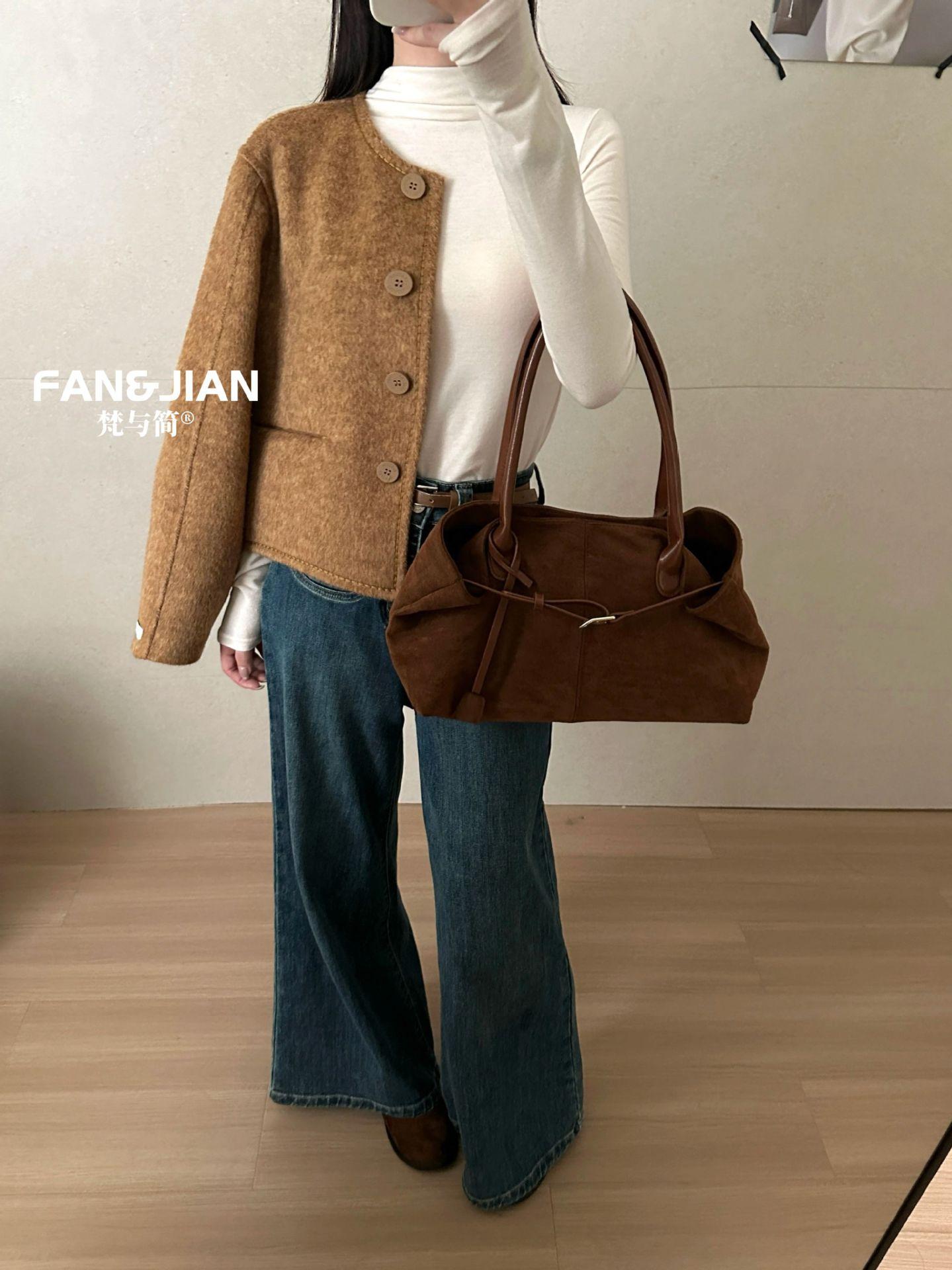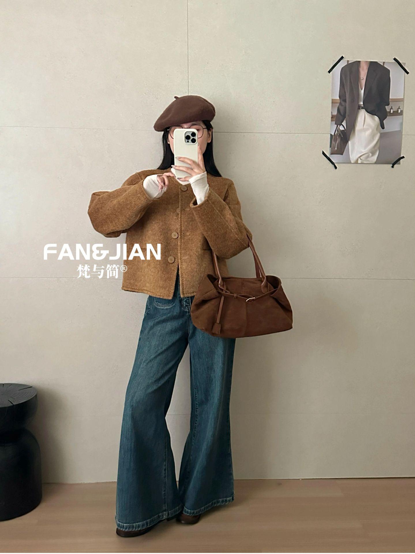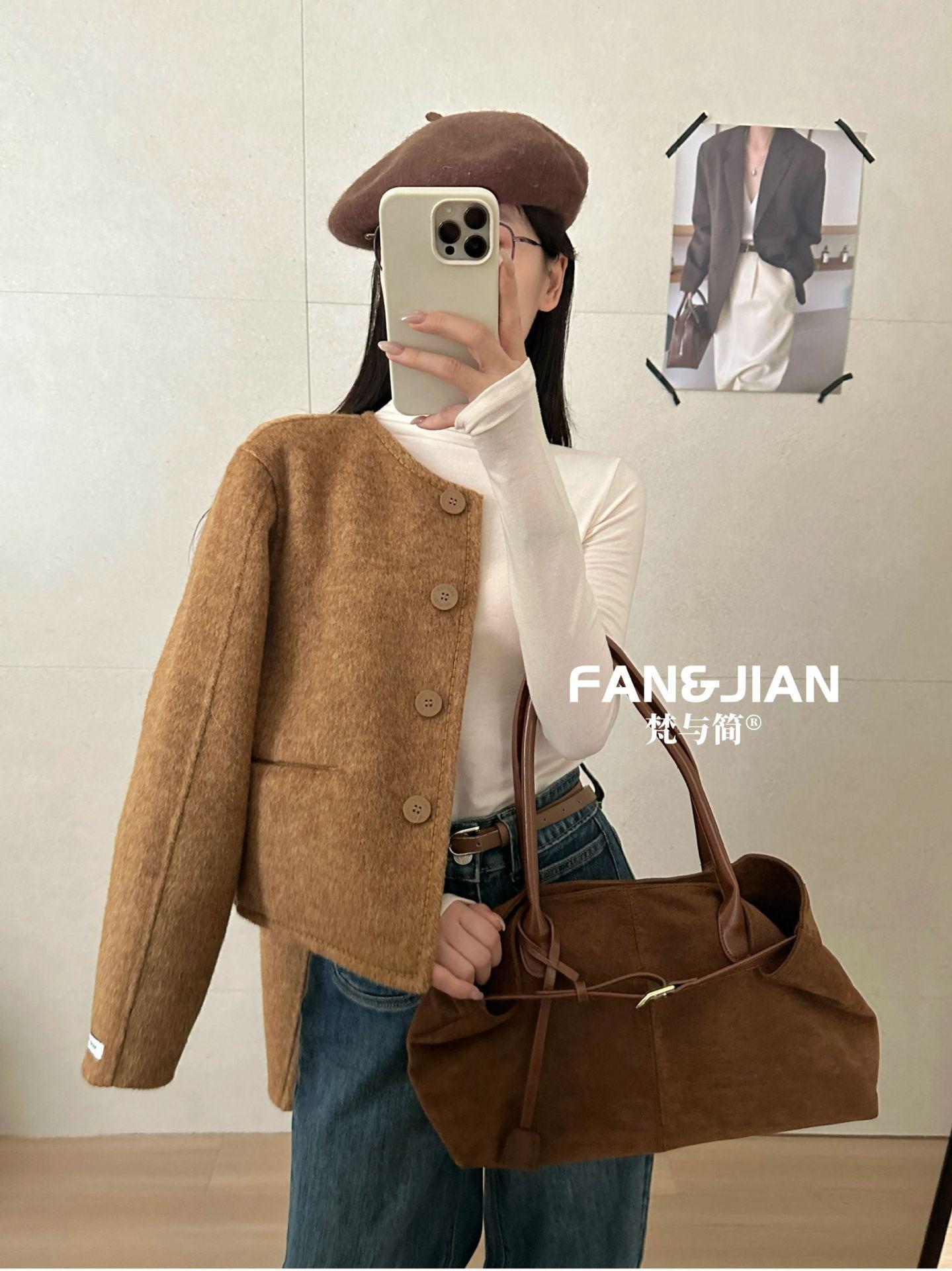 Abrigo de lana de doble cara estilo Chanel vintage Dopamine, corto, elegante y a la moda, pequeño y combinable para mujer.