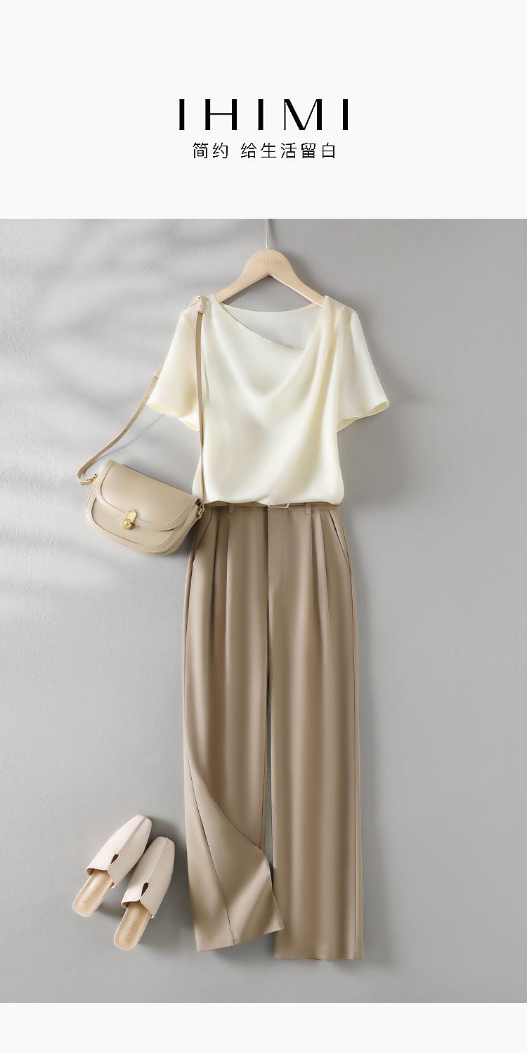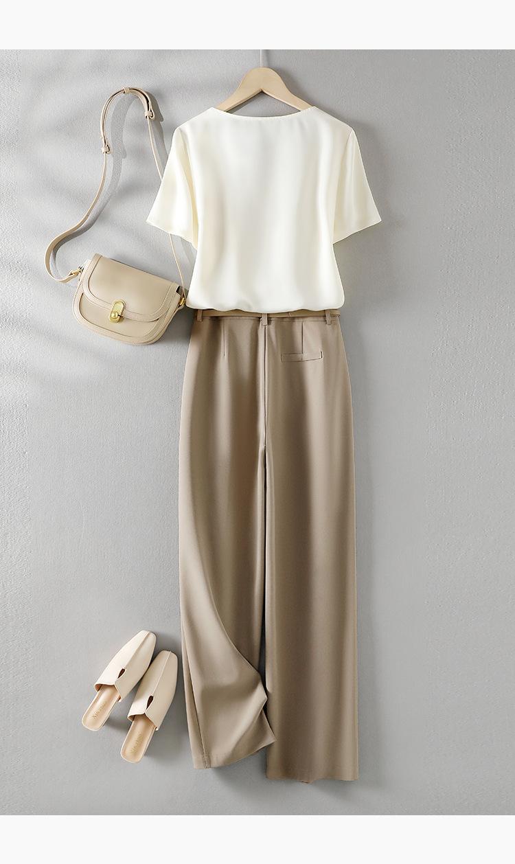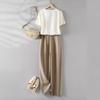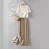 Conjunto de dos piezas de camisa y pantalón recto con cuello halter para mujer, novedad de verano 2024