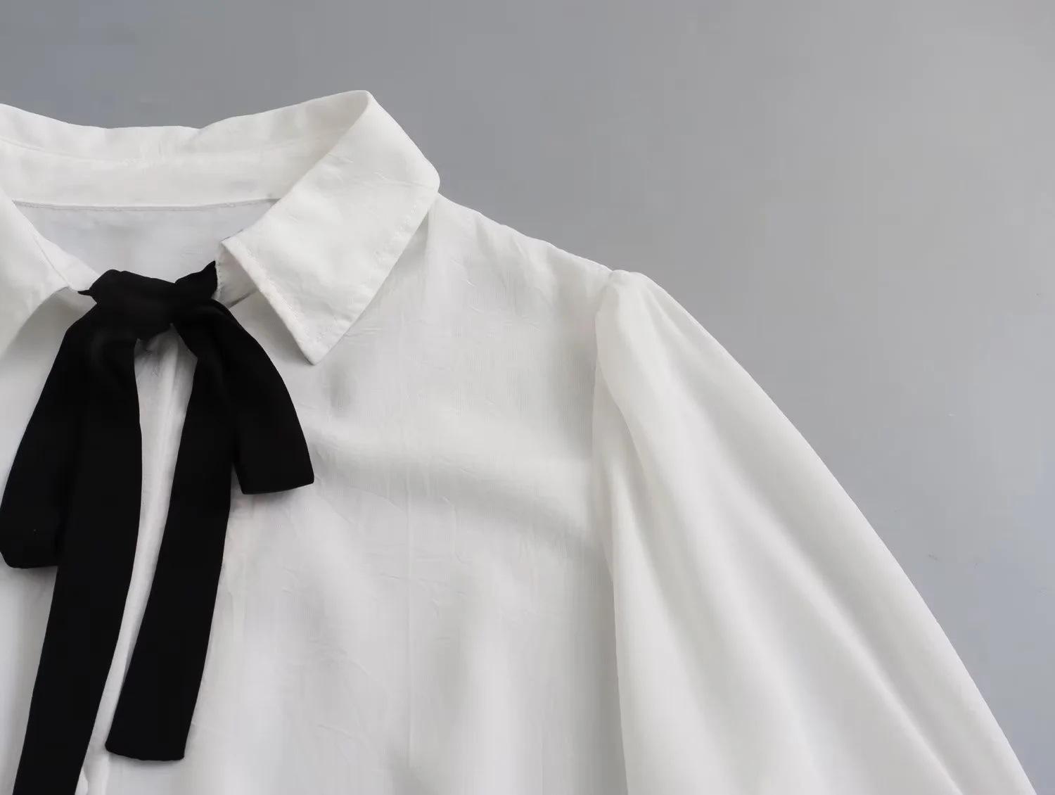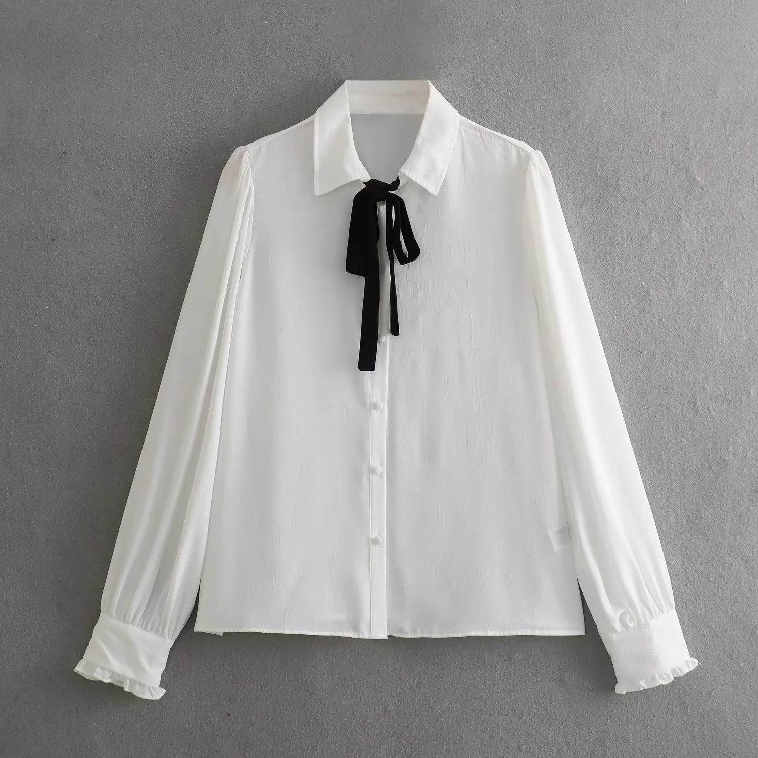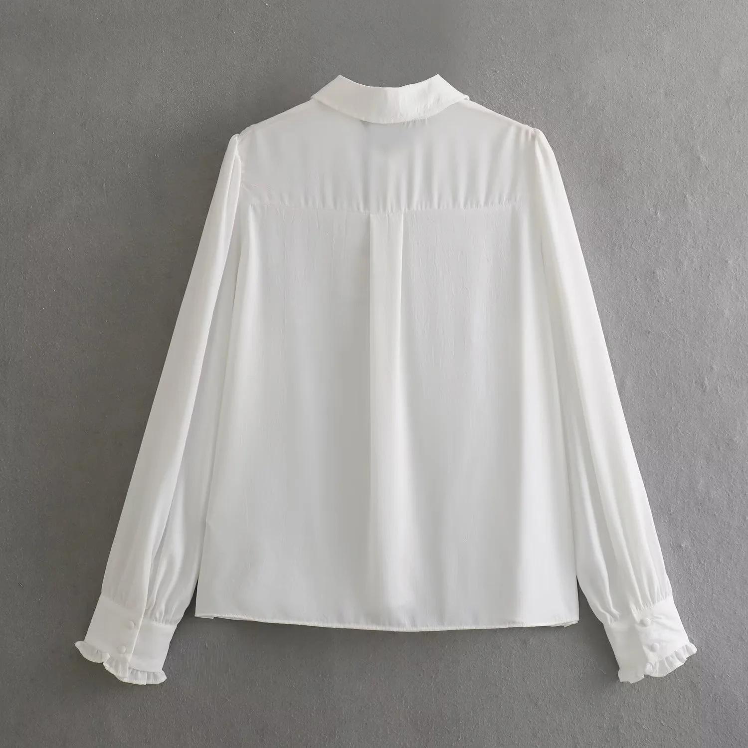 Camisa de manga larga corta informal versátil con costuras personalizadas y lazo con cordones para mujer europea y americana de otoño