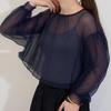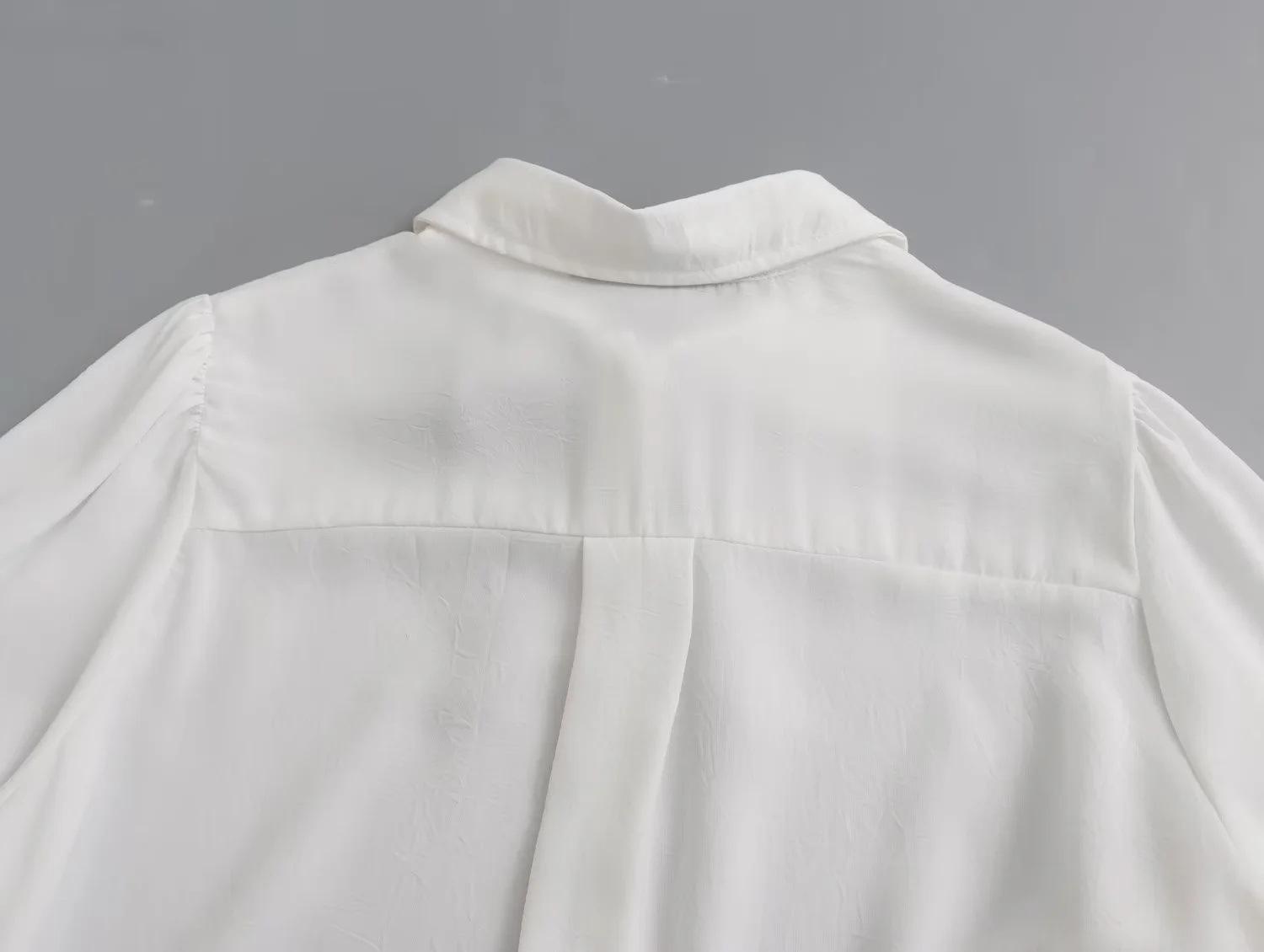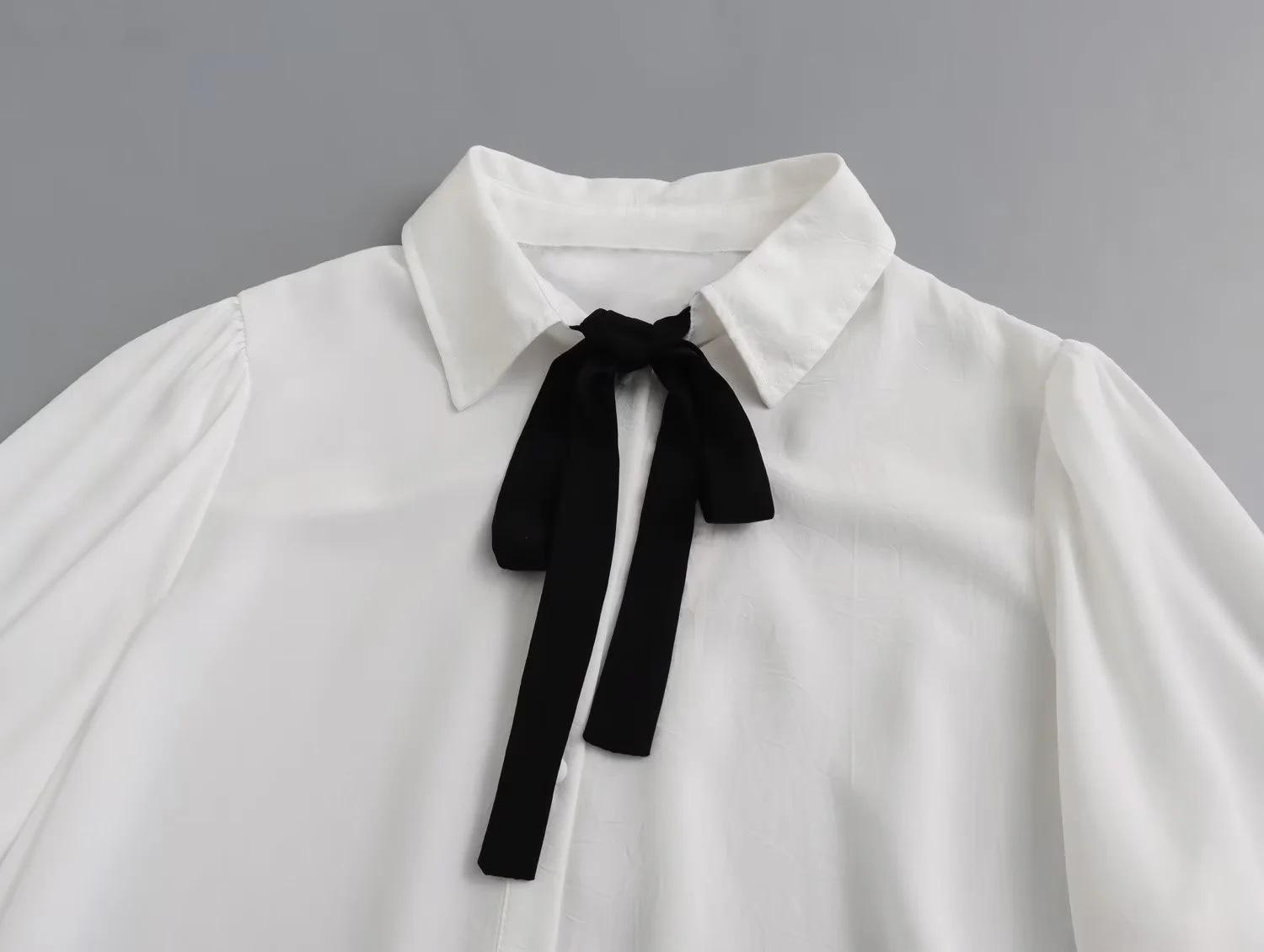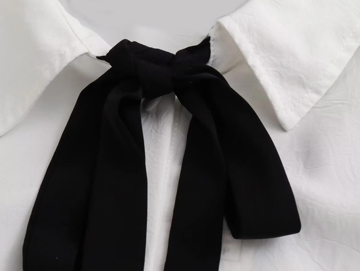 Camisa de manga larga corta informal versátil con costuras personalizadas y lazo con cordones para mujer europea y americana de otoño