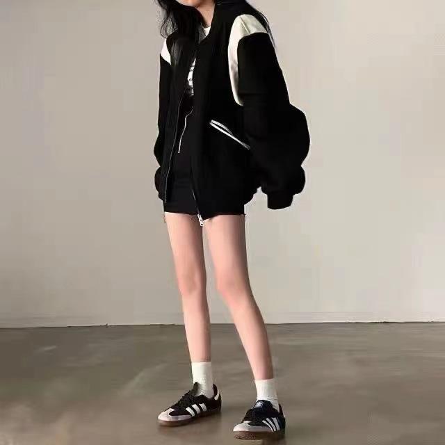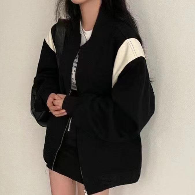 Terciopelo + Abrigo Delgado Suelto Color Contrastante Estudiante 2025 Nuevo Estilo Coreano Calle Americana Cárdigan Uniforme de Béisbol para Mujer