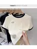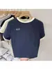 Camiseta de manga corta con hombros descubiertos y diseño de nicho para mujer, estilo occidental, de verano 2024, ajustada y reductora de edad.