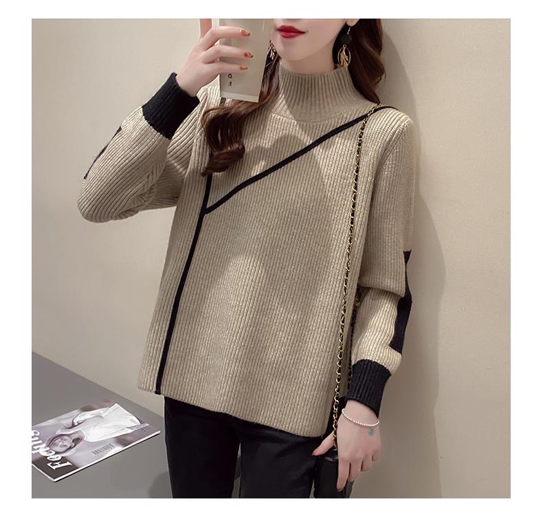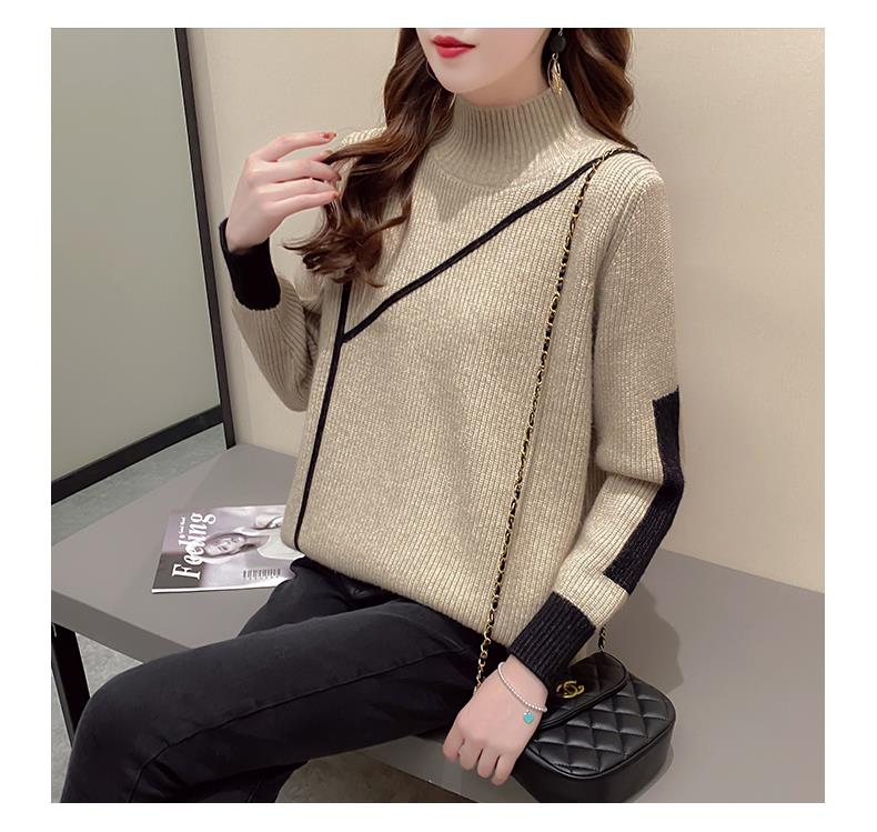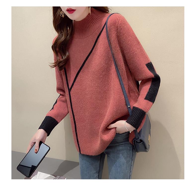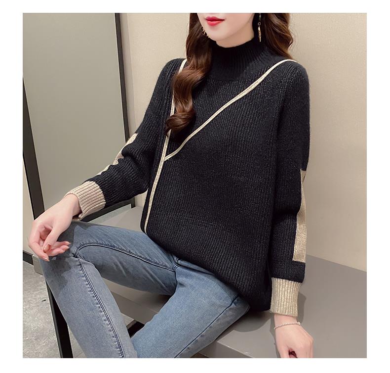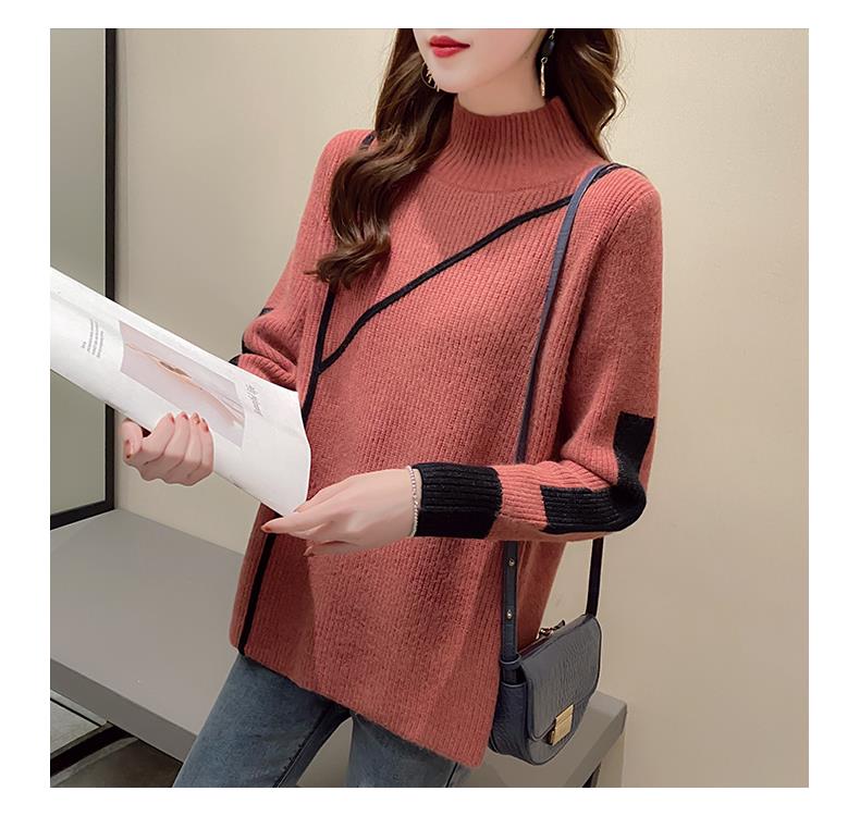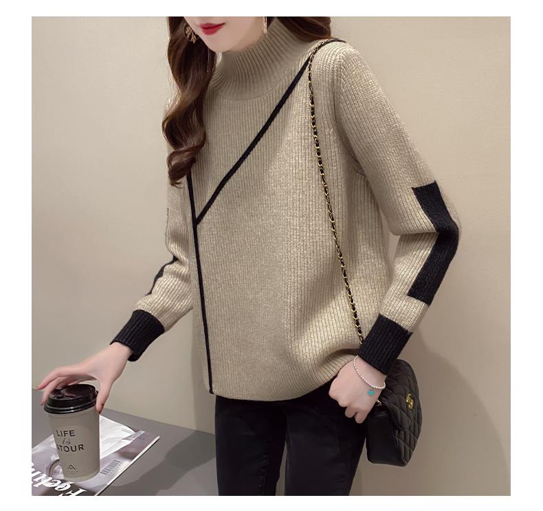 Suéter de cuello alto medio grueso con forro polar para mujer, ropa exterior de otoño e invierno, nuevo suéter holgado con base interior, suéter de moda para mujer